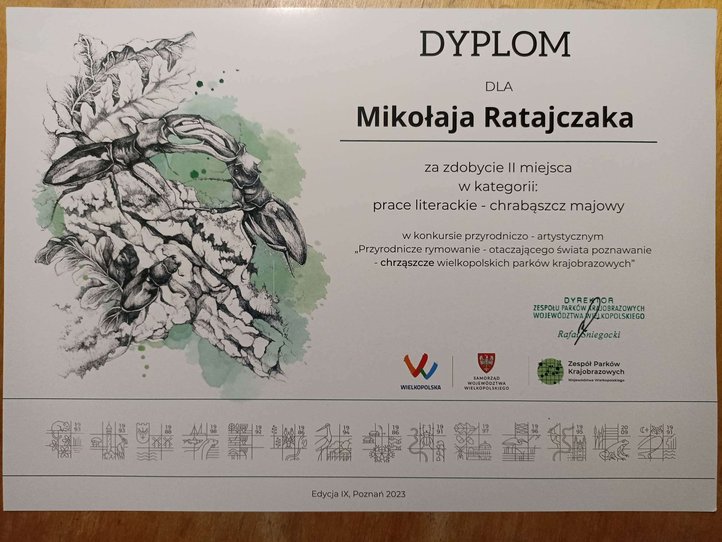 W dniu 8 grudnia w Urzędzie Marszałkowskim w Poznaniu odbyło się uroczyste zakończenie IX edycji wojewódzkiego konkursu przyrodniczo – artystycznego pn. „Przyrodnicze rymowanie – otaczającego świata poznawanie – chrząszcze wielkopolskich parków krajobrazowych”!