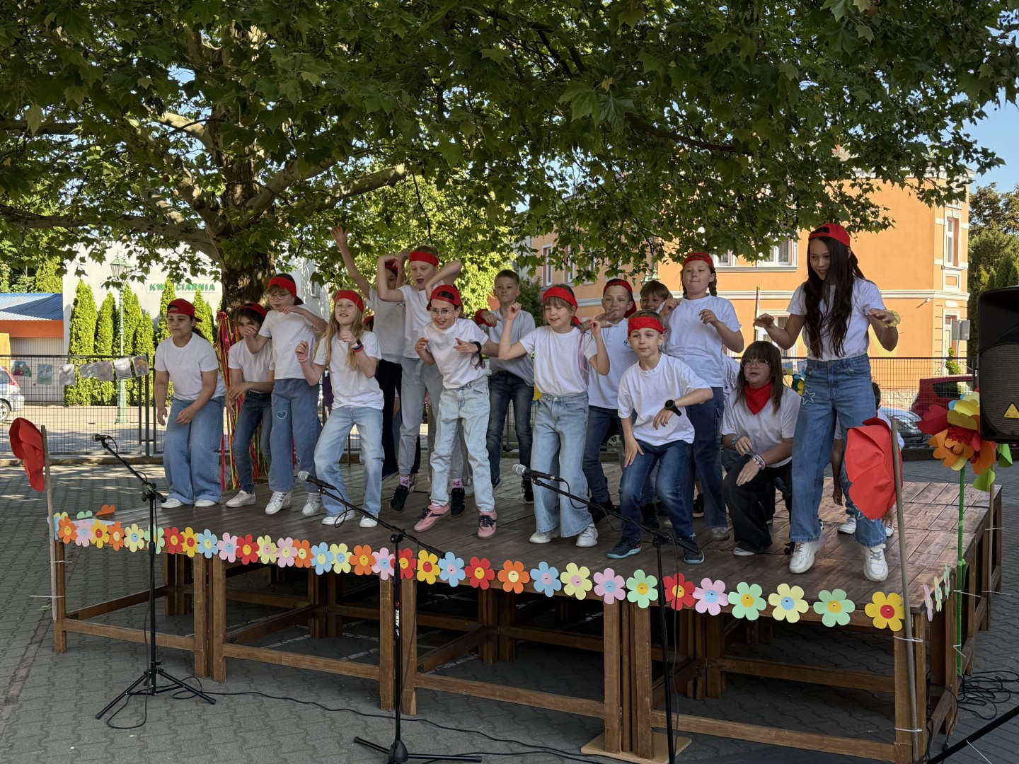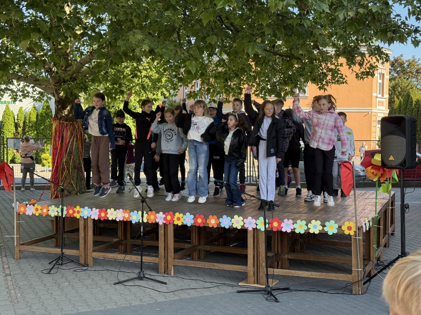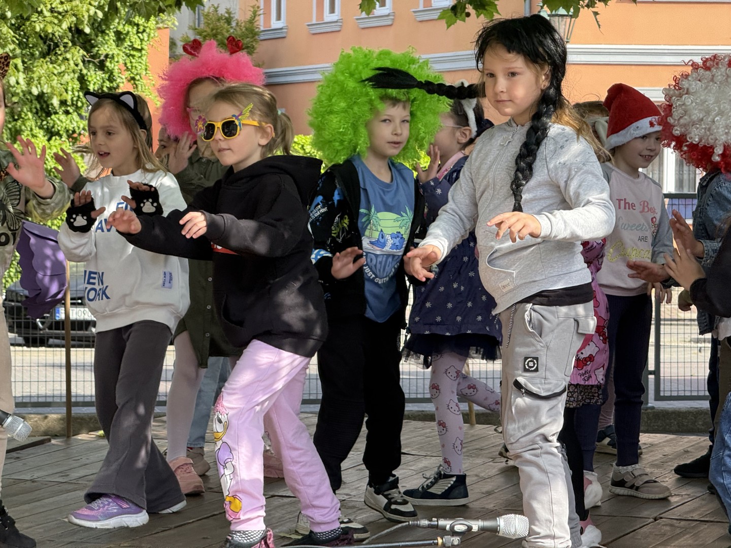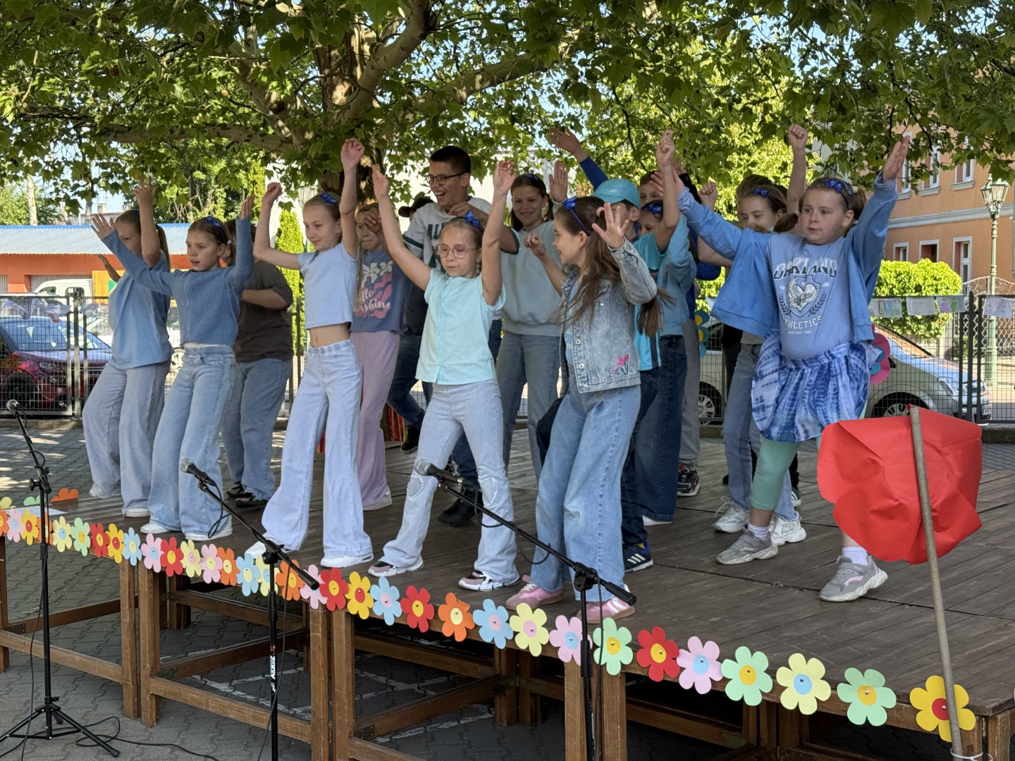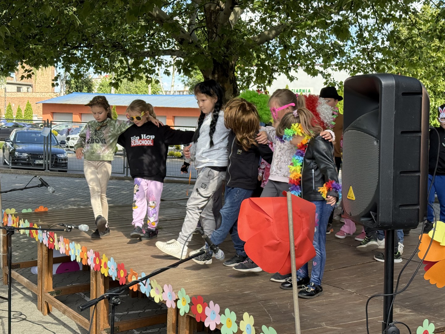W piątek, 23.05.2025r. na podwórzu szkolnym przy Farnej pod pięknym, rozłożystym platanem stanęła scena, która stała się areną popisów wokalnych i tanecznych wszystkich klas 0-3. Zdjęcia i nagrane filmiki będą materiałem wyjściowym do stworzenia impresji filmowej – teledysku, który wkrótce sprezentujemy Rodzicom naszych Dzieci na stronie szkoły i profilu fb z okazji DNIA MAMY. Oprócz prezentacji scenicznych tego dnia Dzieci miały okazję uczestniczyć w Grze Miejskiej pod hasłem „ Opalenica w słoiku”. Zabawa polegała na znajdowaniu rozmieszczonych w ważnych miejscach naszego miasta słoików z zadaniami. Instrukcje były przeróżne i ściśle związane z odwiedzanymi miejscami. W Ratuszu np. uczniowie musieli załatwić sprawę w biurze podawczym, na Dworcu Kolejowym porozumieć się z Panią w kasie w kwestii pociągu do Warszawy. Okazało się, że policzenie okien w kościele św. Józefa było nie lada wyzwaniem, a niektórzy młodzi mieszkańcy naszego miasta pierwszy raz przechodzili przez kładkę przerzuconą przez Mogilnicę w okolicach Kolorowego Zamku. Śmiechu, zabawy, zaskoczeń było całe mnóstwo. Po powrocie do szkoły wszyscy raczyli się watą cukrową. Dziękujemy wszystkim, dzięki którym ten dzień był tak wyjątkowy.