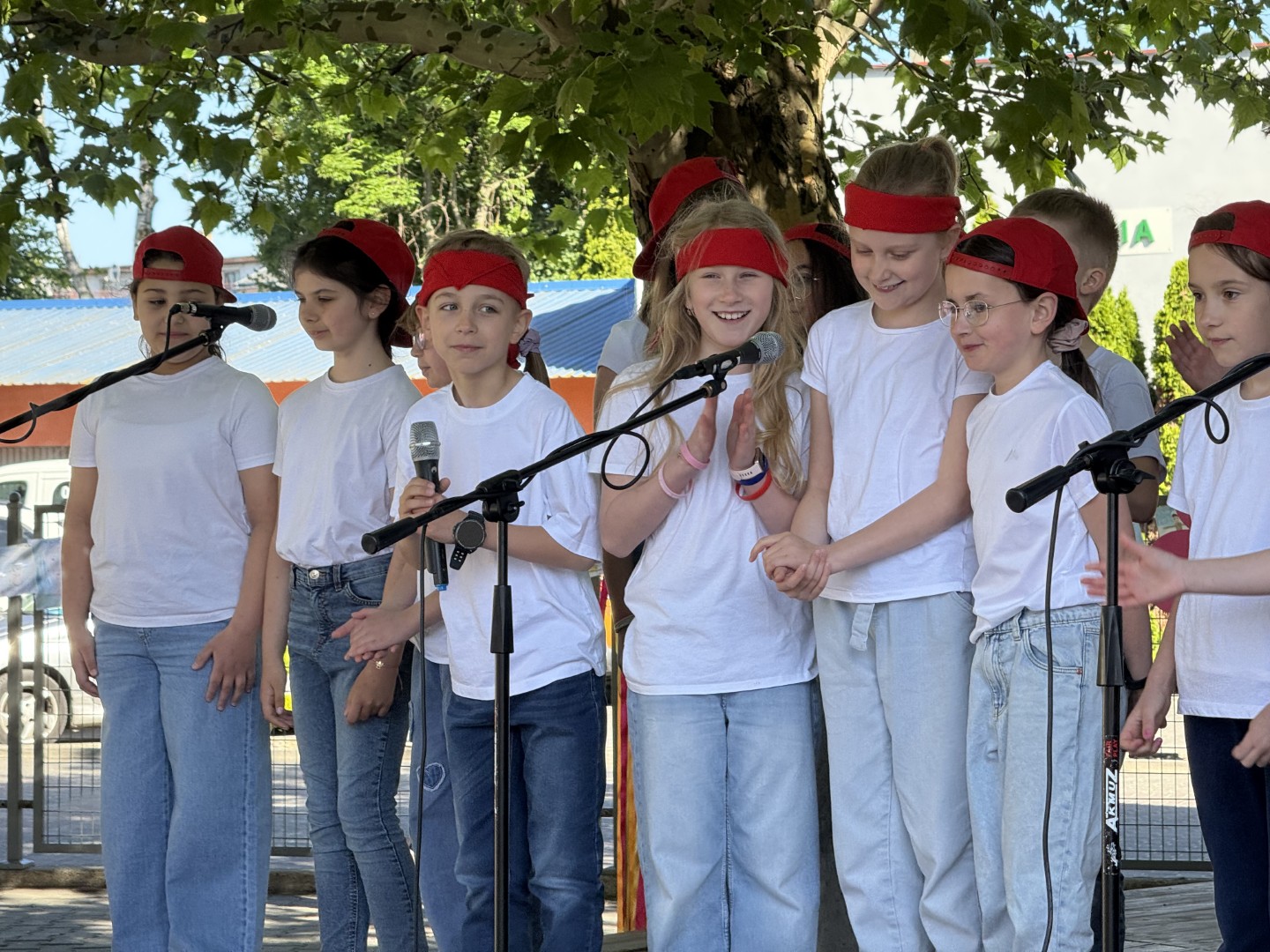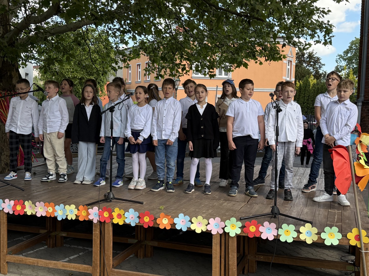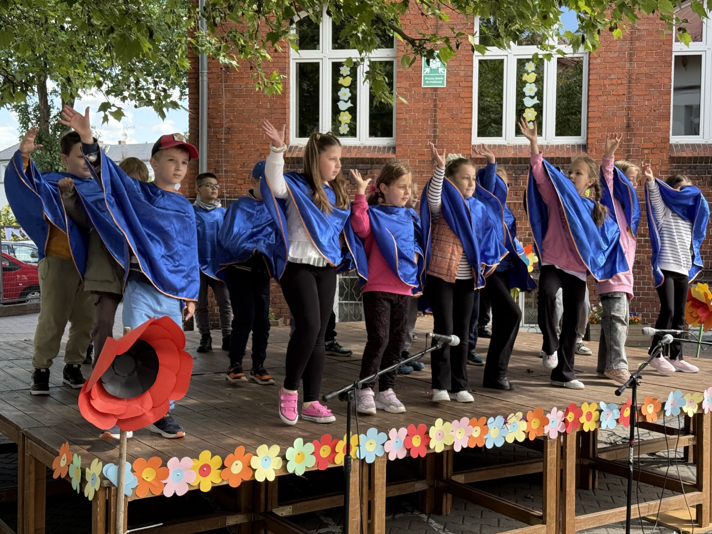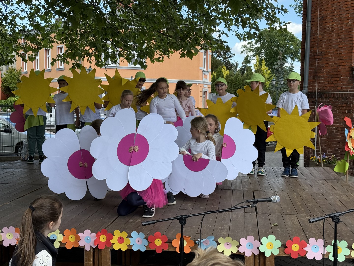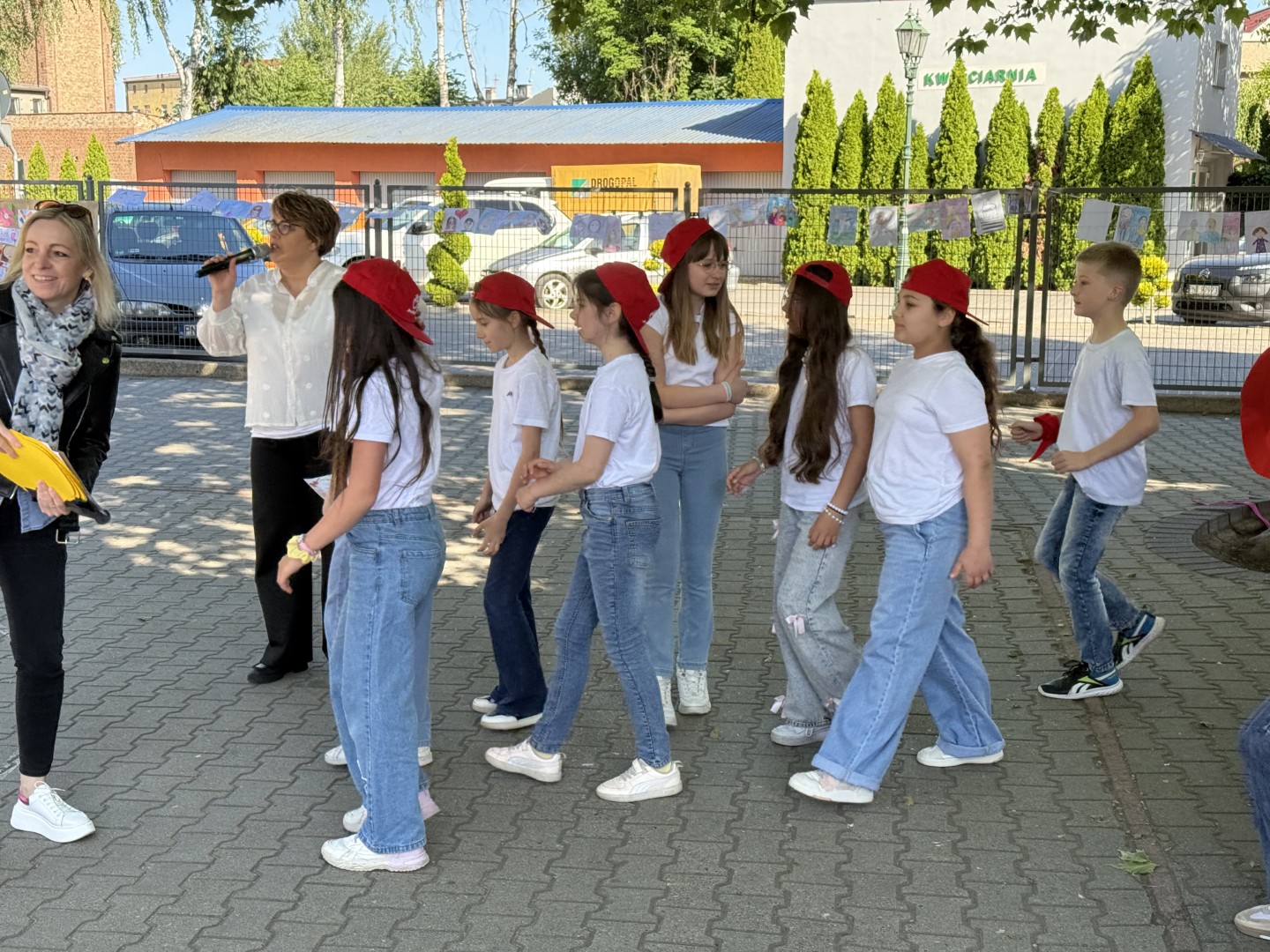 W piątek, 23.05.2025r. na podwórzu szkolnym przy Farnej pod pięknym, rozłożystym platanem stanęła scena, która stała się areną popisów wokalnych i tanecznych wszystkich klas 0-3. Zdjęcia i nagrane filmiki będą materiałem wyjściowym do stworzenia impresji filmowej – teledysku, który wkrótce sprezentujemy Rodzicom naszych Dzieci na stronie szkoły i profilu fb z okazji DNIA MAMY. Oprócz prezentacji scenicznych tego dnia Dzieci miały okazję uczestniczyć w Grze Miejskiej pod hasłem „ Opalenica w słoiku”. Zabawa polegała na znajdowaniu rozmieszczonych w ważnych miejscach naszego miasta słoików z zadaniami. Instrukcje były przeróżne i ściśle związane z odwiedzanymi miejscami. W Ratuszu np. uczniowie musieli załatwić sprawę w biurze podawczym, na Dworcu Kolejowym porozumieć się z Panią w kasie w kwestii pociągu do Warszawy. Okazało się, że policzenie okien w kościele św. Józefa było nie lada wyzwaniem, a niektórzy młodzi mieszkańcy naszego miasta pierwszy raz przechodzili przez kładkę przerzuconą przez Mogilnicę w okolicach Kolorowego Zamku. Śmiechu, zabawy, zaskoczeń było całe mnóstwo. Po powrocie do szkoły wszyscy raczyli się watą cukrową. Dziękujemy wszystkim, dzięki którym ten dzień był tak wyjątkowy.