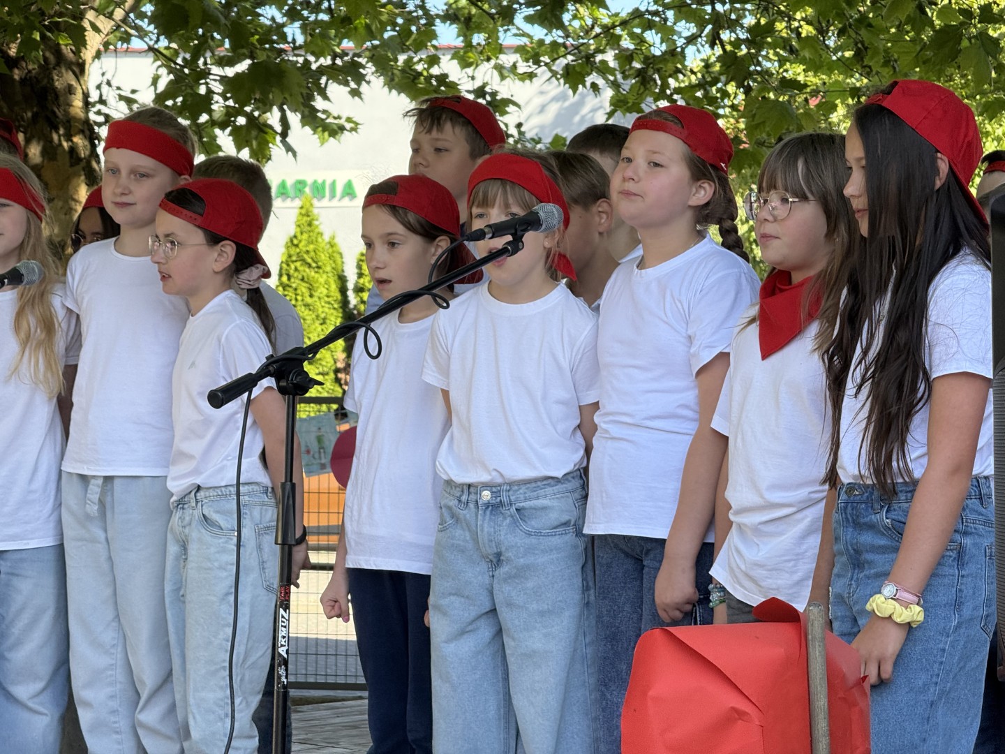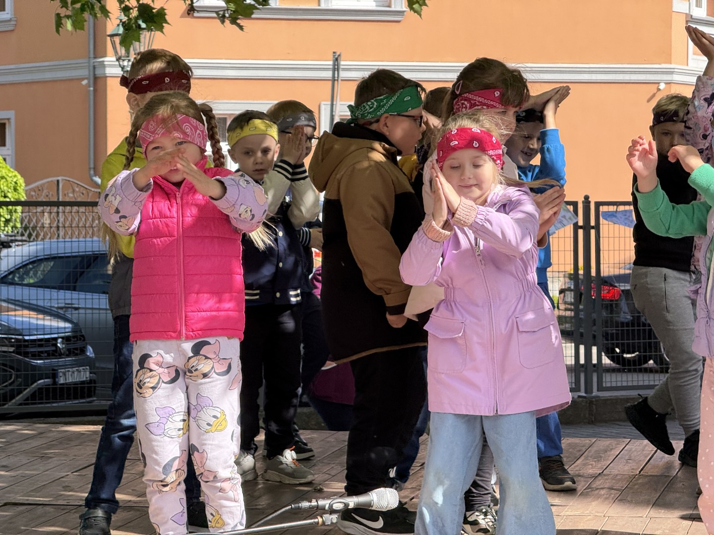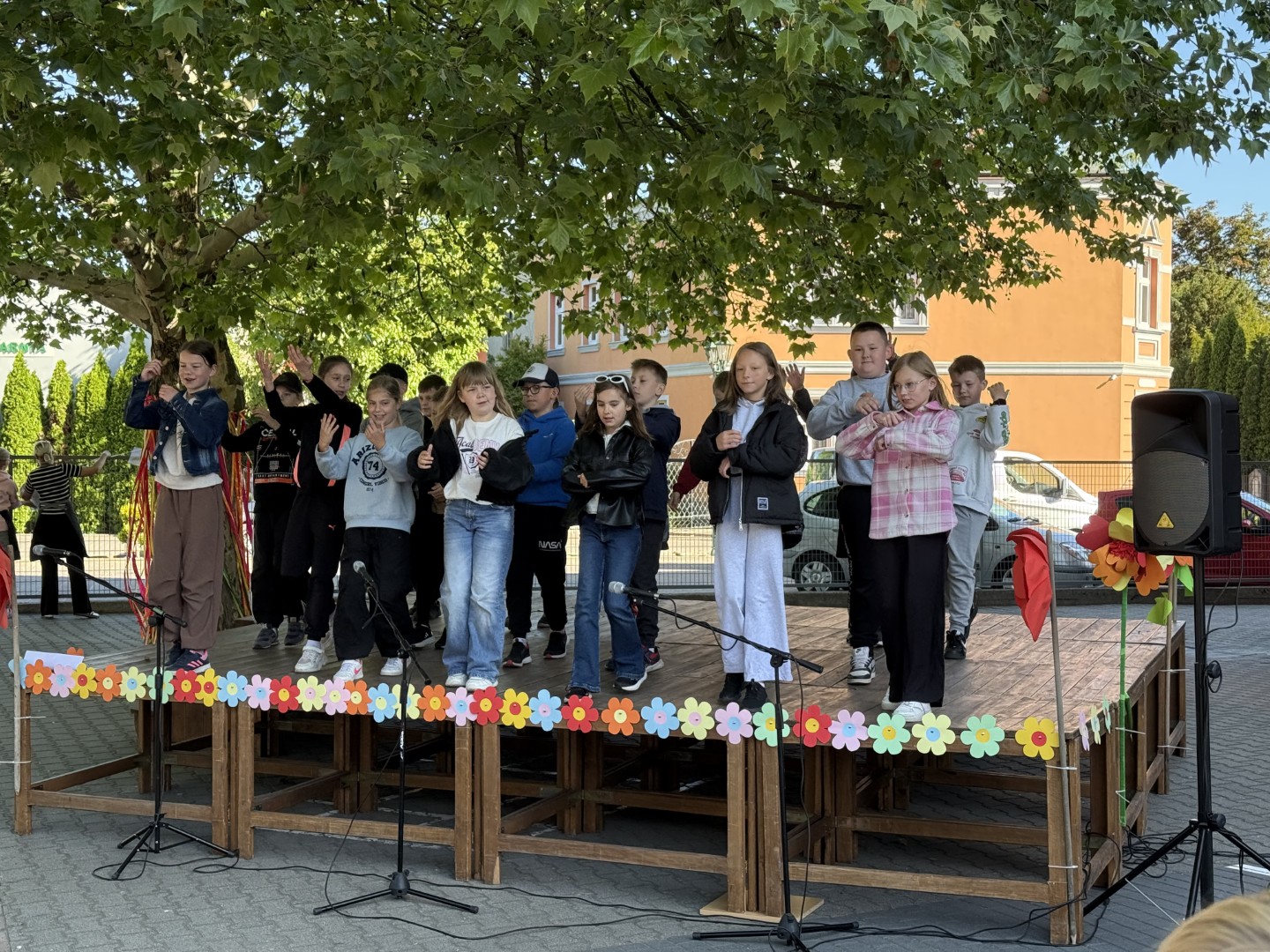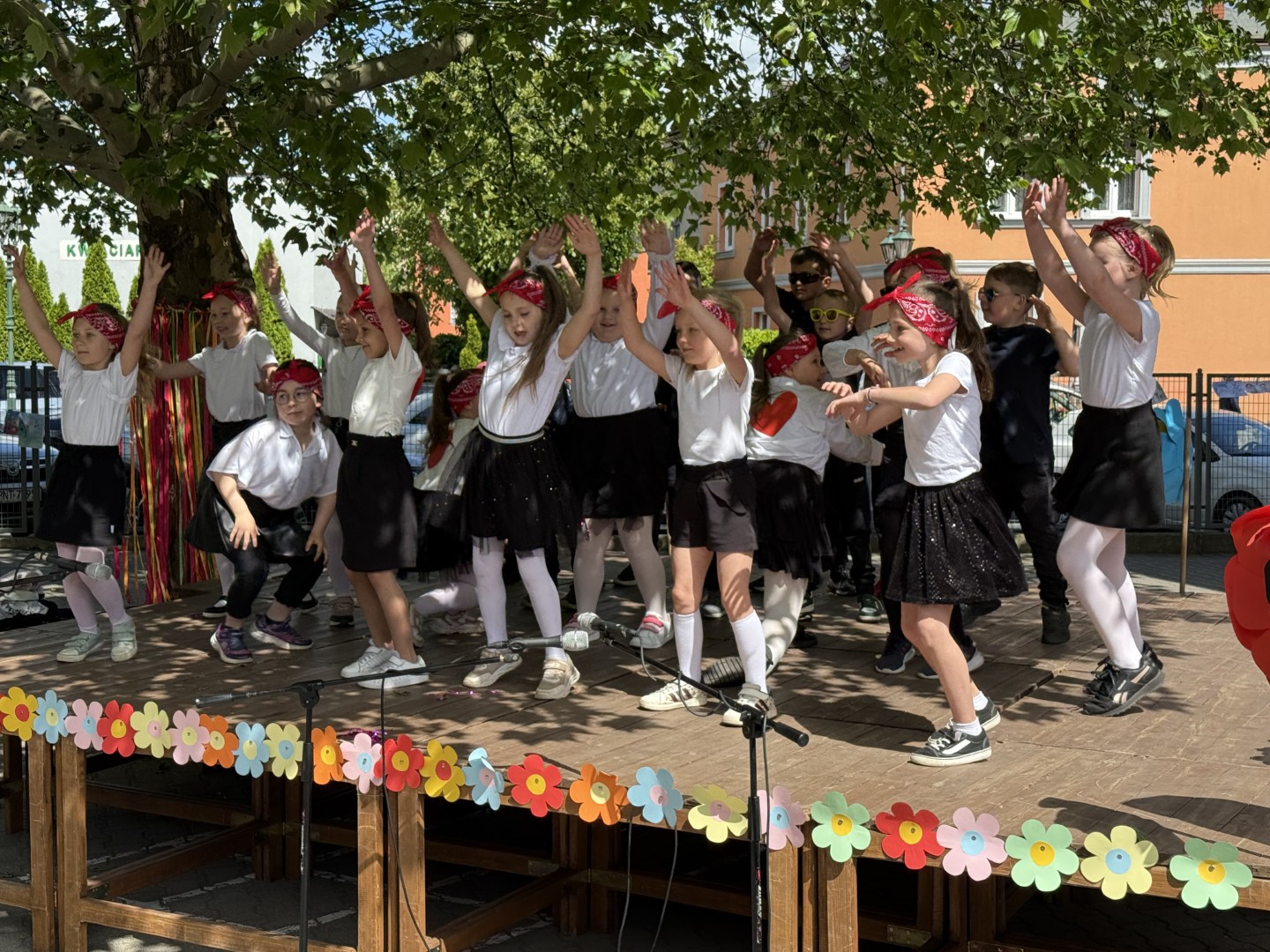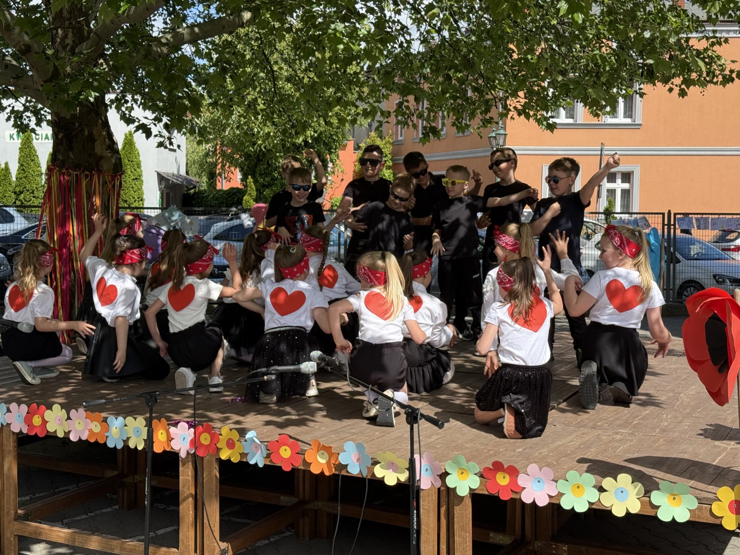 W piątek, 23.05.2025r. na podwórzu szkolnym przy Farnej pod pięknym, rozłożystym platanem stanęła scena, która stała się areną popisów wokalnych i tanecznych wszystkich klas 0-3. Zdjęcia i nagrane filmiki będą materiałem wyjściowym do stworzenia impresji filmowej – teledysku, który wkrótce sprezentujemy Rodzicom naszych Dzieci na stronie szkoły i profilu fb z okazji DNIA MAMY. Oprócz prezentacji scenicznych tego dnia Dzieci miały okazję uczestniczyć w Grze Miejskiej pod hasłem „ Opalenica w słoiku”. Zabawa polegała na znajdowaniu rozmieszczonych w ważnych miejscach naszego miasta słoików z zadaniami. Instrukcje były przeróżne i ściśle związane z odwiedzanymi miejscami. W Ratuszu np. uczniowie musieli załatwić sprawę w biurze podawczym, na Dworcu Kolejowym porozumieć się z Panią w kasie w kwestii pociągu do Warszawy. Okazało się, że policzenie okien w kościele św. Józefa było nie lada wyzwaniem, a niektórzy młodzi mieszkańcy naszego miasta pierwszy raz przechodzili przez kładkę przerzuconą przez Mogilnicę w okolicach Kolorowego Zamku. Śmiechu, zabawy, zaskoczeń było całe mnóstwo. Po powrocie do szkoły wszyscy raczyli się watą cukrową. Dziękujemy wszystkim, dzięki którym ten dzień był tak wyjątkowy.