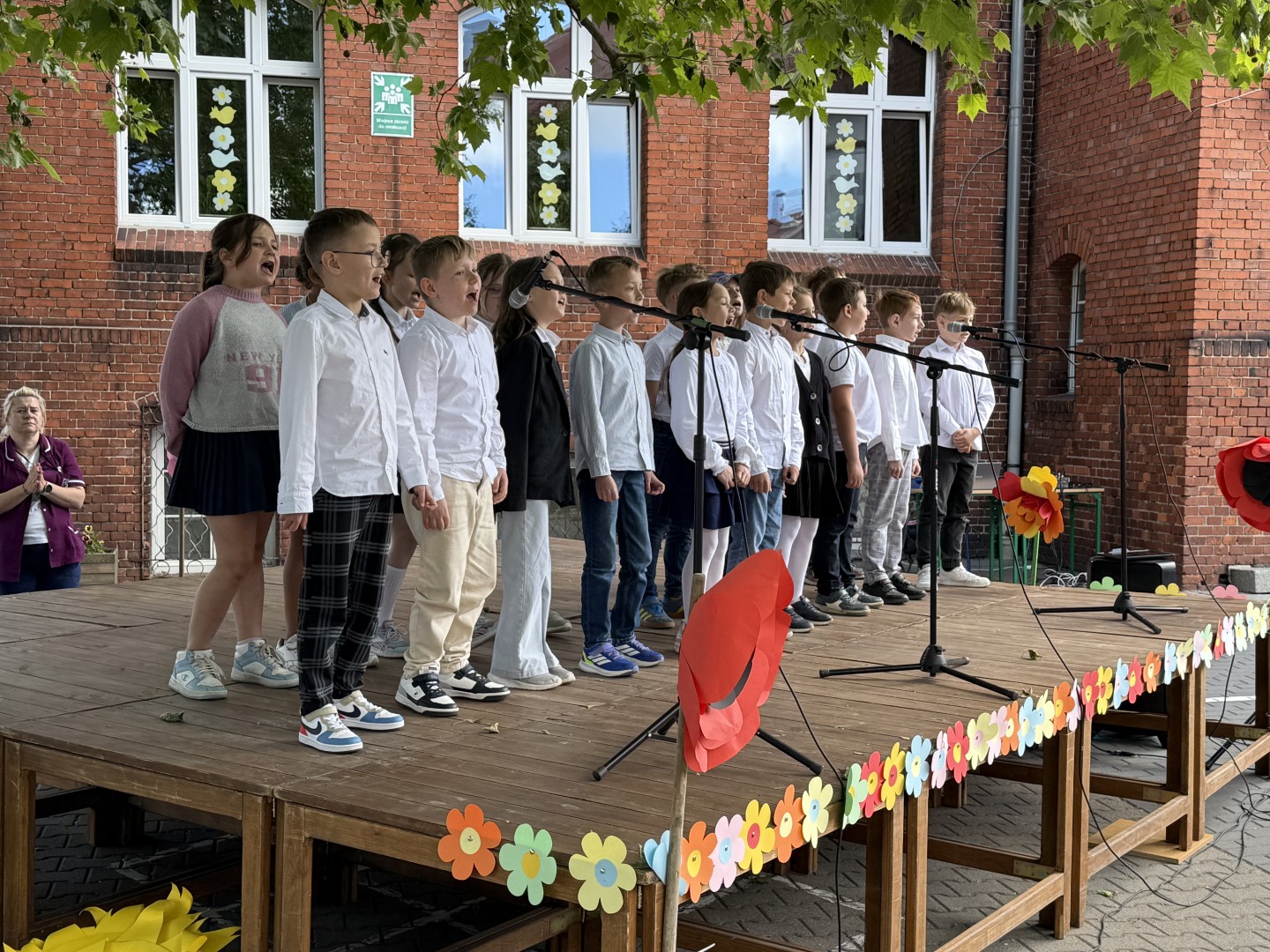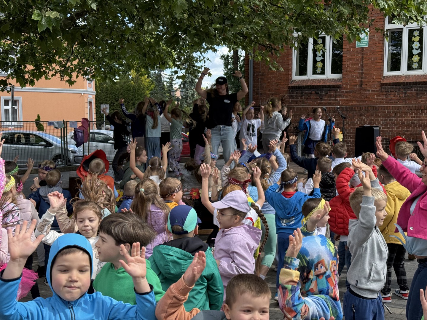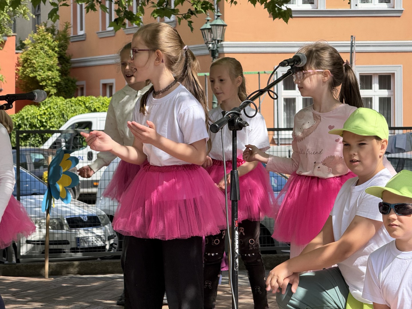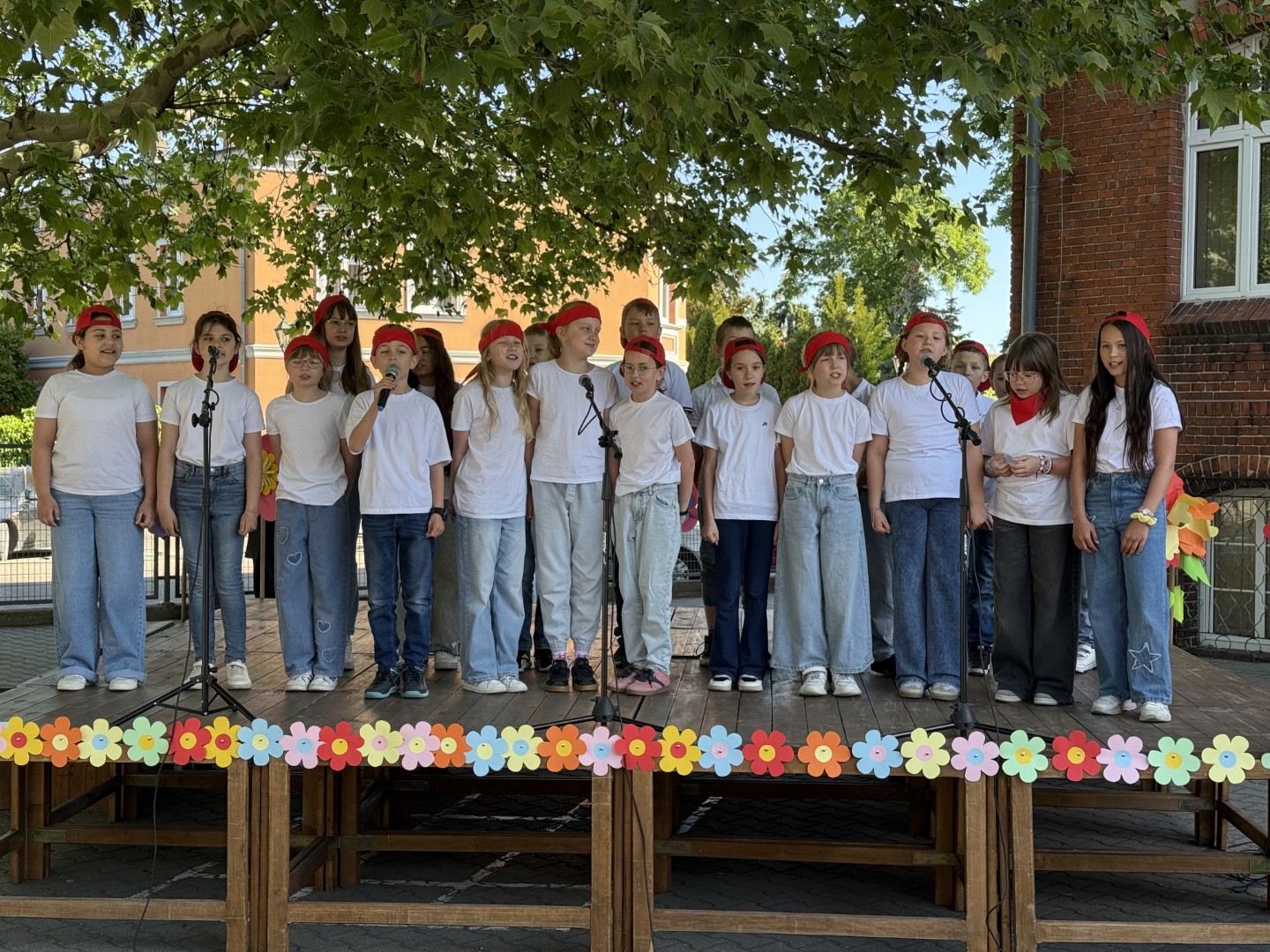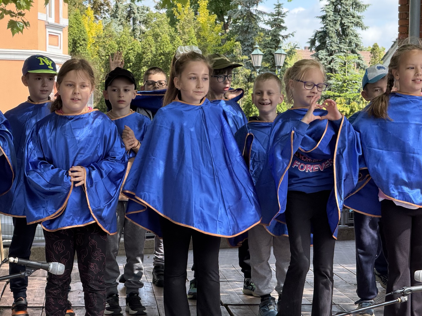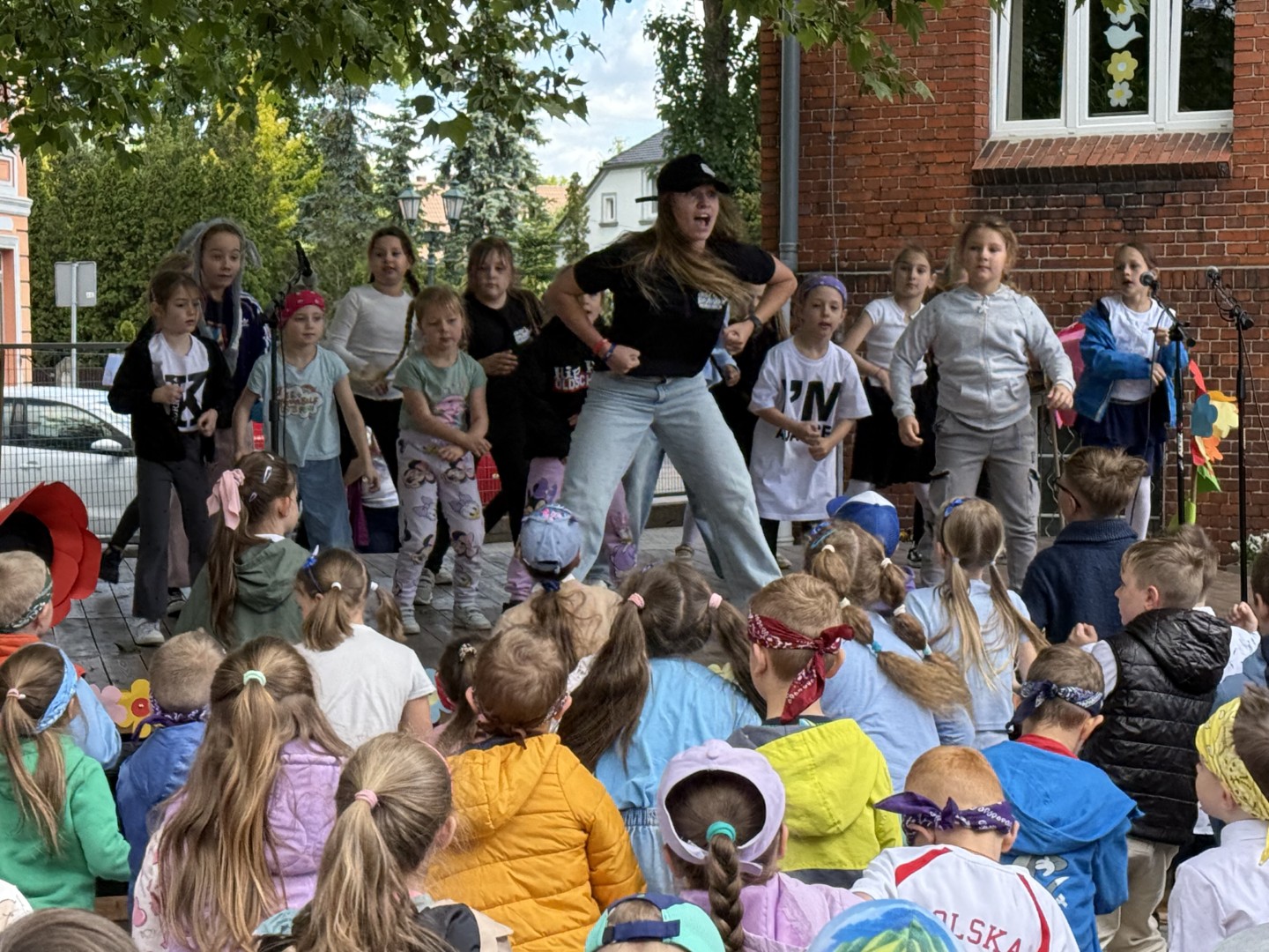 W piątek, 23.05.2025r. na podwórzu szkolnym przy Farnej pod pięknym, rozłożystym platanem stanęła scena, która stała się areną popisów wokalnych i tanecznych wszystkich klas 0-3. Zdjęcia i nagrane filmiki będą materiałem wyjściowym do stworzenia impresji filmowej – teledysku, który wkrótce sprezentujemy Rodzicom naszych Dzieci na stronie szkoły i profilu fb z okazji DNIA MAMY. Oprócz prezentacji scenicznych tego dnia Dzieci miały okazję uczestniczyć w Grze Miejskiej pod hasłem „ Opalenica w słoiku”. Zabawa polegała na znajdowaniu rozmieszczonych w ważnych miejscach naszego miasta słoików z zadaniami. Instrukcje były przeróżne i ściśle związane z odwiedzanymi miejscami. W Ratuszu np. uczniowie musieli załatwić sprawę w biurze podawczym, na Dworcu Kolejowym porozumieć się z Panią w kasie w kwestii pociągu do Warszawy. Okazało się, że policzenie okien w kościele św. Józefa było nie lada wyzwaniem, a niektórzy młodzi mieszkańcy naszego miasta pierwszy raz przechodzili przez kładkę przerzuconą przez Mogilnicę w okolicach Kolorowego Zamku. Śmiechu, zabawy, zaskoczeń było całe mnóstwo. Po powrocie do szkoły wszyscy raczyli się watą cukrową. Dziękujemy wszystkim, dzięki którym ten dzień był tak wyjątkowy.