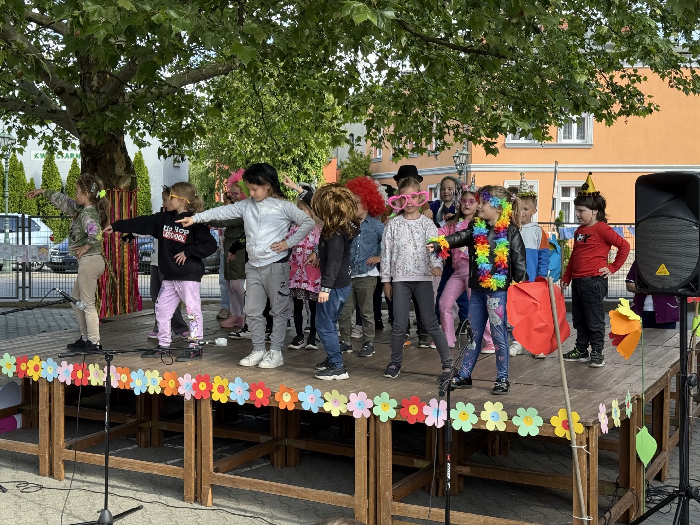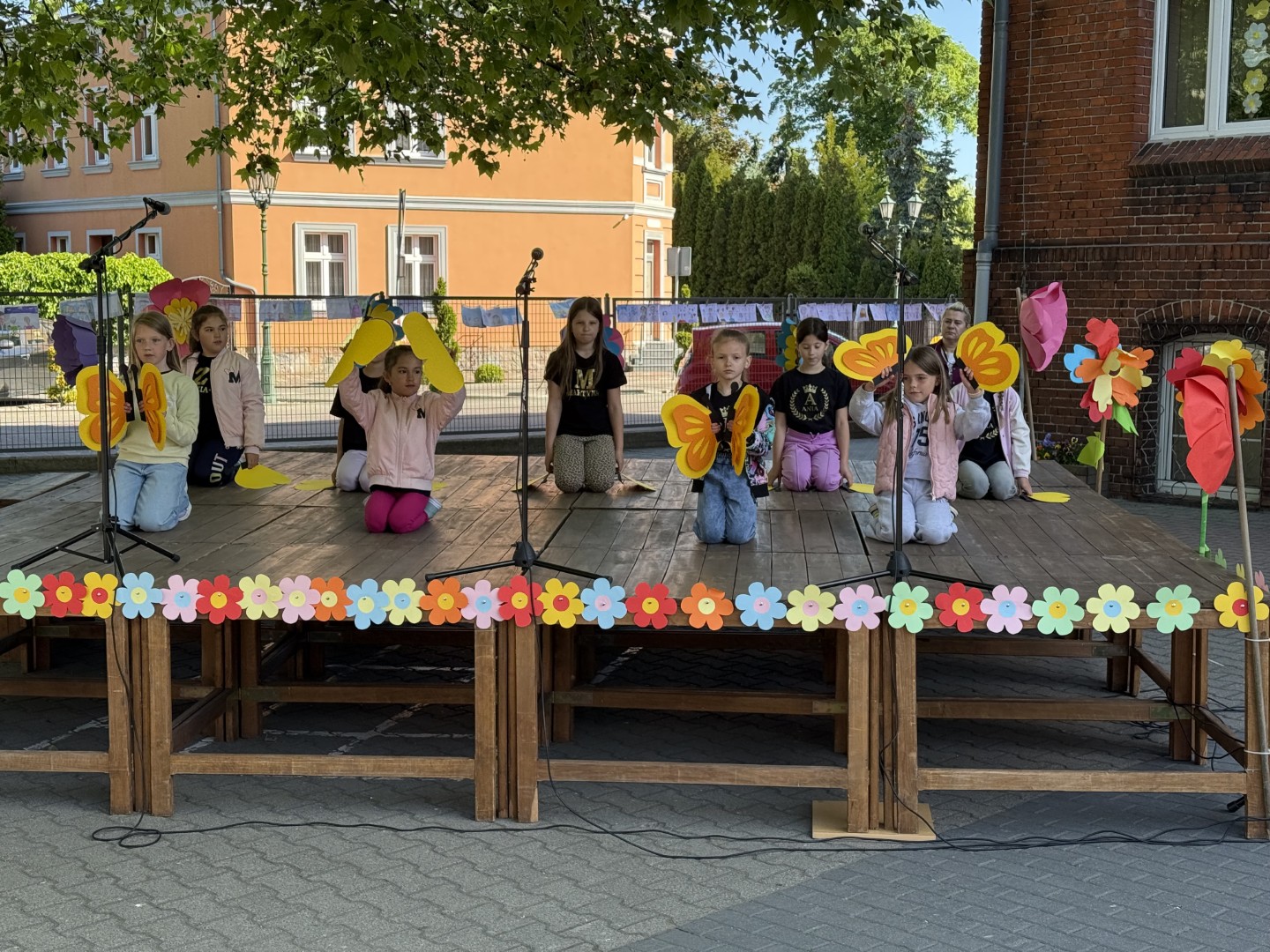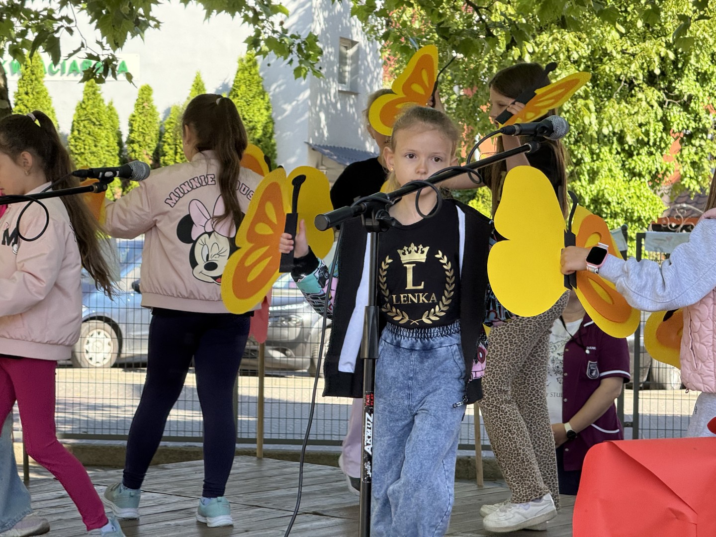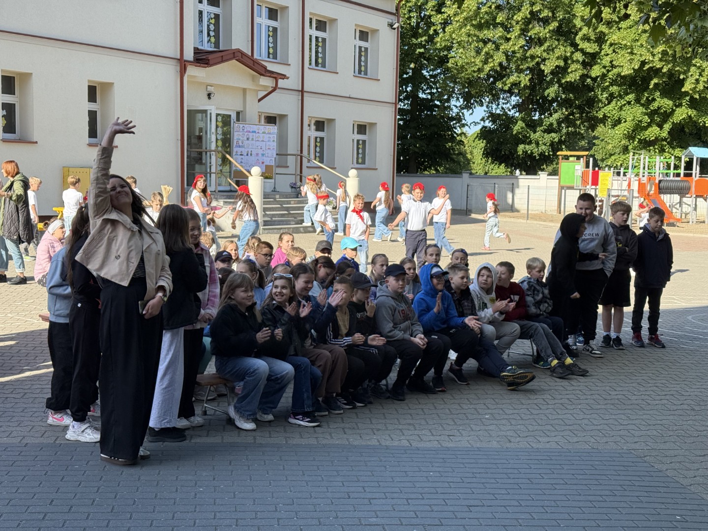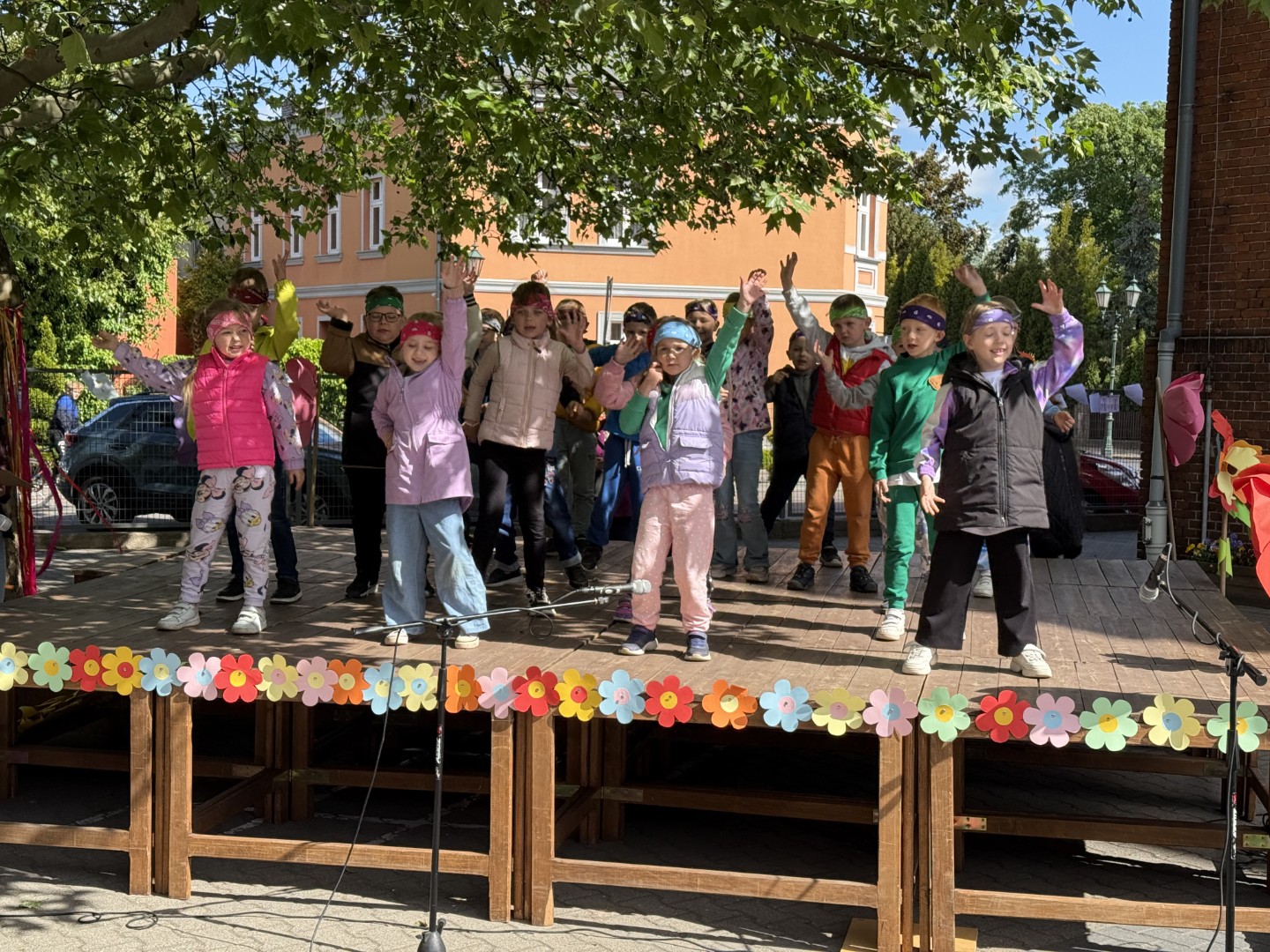 W piątek, 23.05.2025r. na podwórzu szkolnym przy Farnej pod pięknym, rozłożystym platanem stanęła scena, która stała się areną popisów wokalnych i tanecznych wszystkich klas 0-3. Zdjęcia i nagrane filmiki będą materiałem wyjściowym do stworzenia impresji filmowej – teledysku, który wkrótce sprezentujemy Rodzicom naszych Dzieci na stronie szkoły i profilu fb z okazji DNIA MAMY. Oprócz prezentacji scenicznych tego dnia Dzieci miały okazję uczestniczyć w Grze Miejskiej pod hasłem „ Opalenica w słoiku”. Zabawa polegała na znajdowaniu rozmieszczonych w ważnych miejscach naszego miasta słoików z zadaniami. Instrukcje były przeróżne i ściśle związane z odwiedzanymi miejscami. W Ratuszu np. uczniowie musieli załatwić sprawę w biurze podawczym, na Dworcu Kolejowym porozumieć się z Panią w kasie w kwestii pociągu do Warszawy. Okazało się, że policzenie okien w kościele św. Józefa było nie lada wyzwaniem, a niektórzy młodzi mieszkańcy naszego miasta pierwszy raz przechodzili przez kładkę przerzuconą przez Mogilnicę w okolicach Kolorowego Zamku. Śmiechu, zabawy, zaskoczeń było całe mnóstwo. Po powrocie do szkoły wszyscy raczyli się watą cukrową. Dziękujemy wszystkim, dzięki którym ten dzień był tak wyjątkowy.