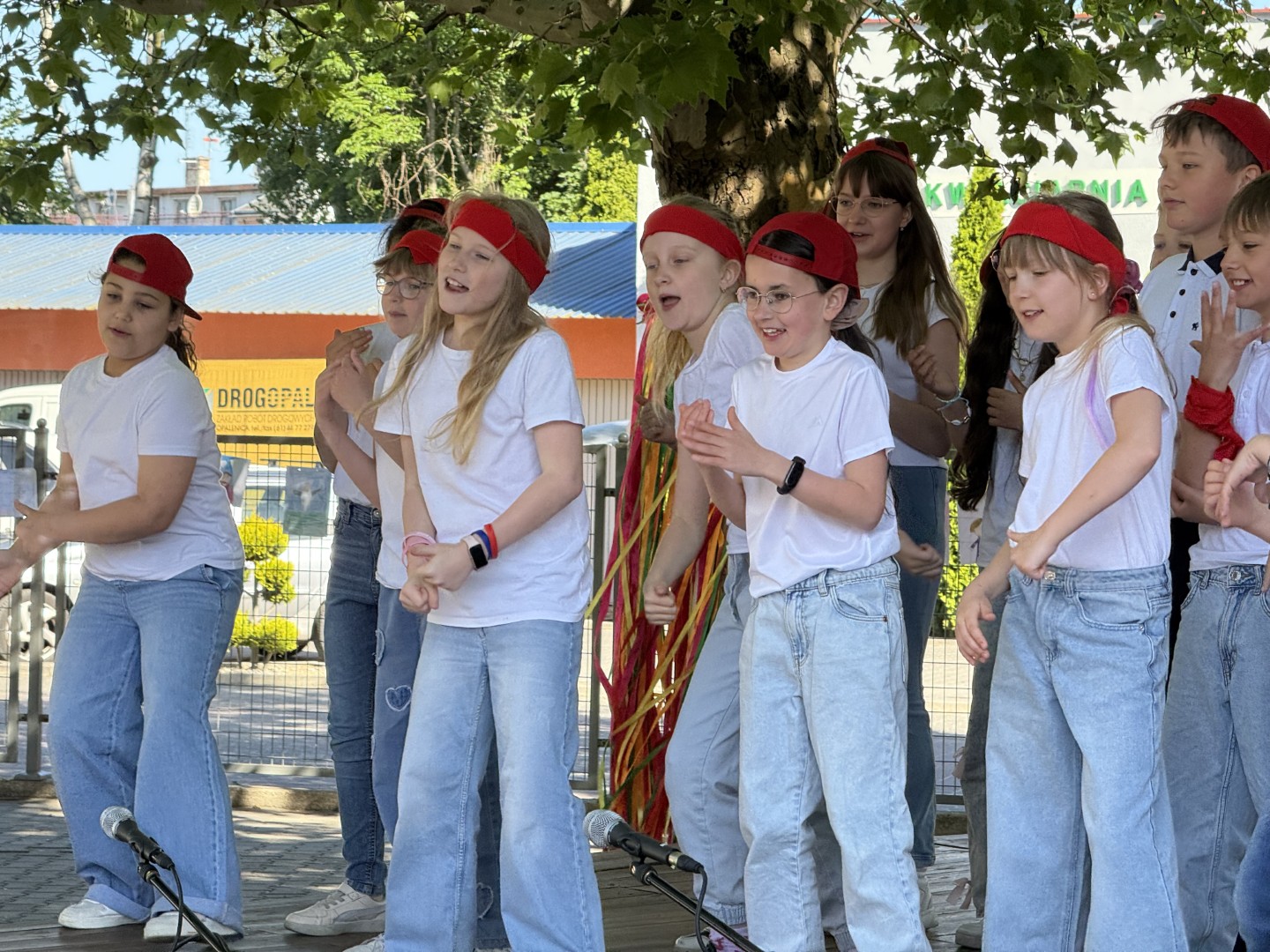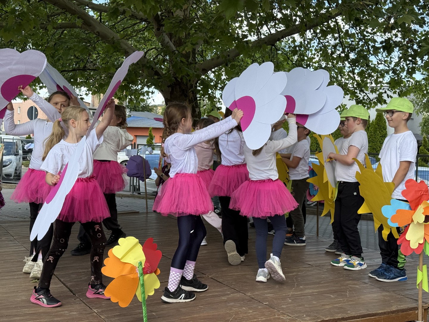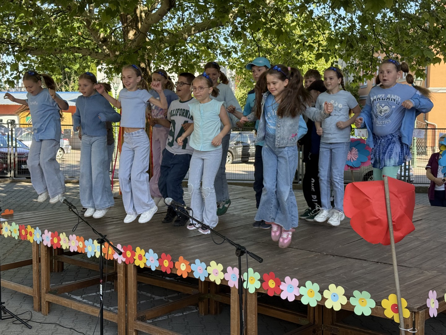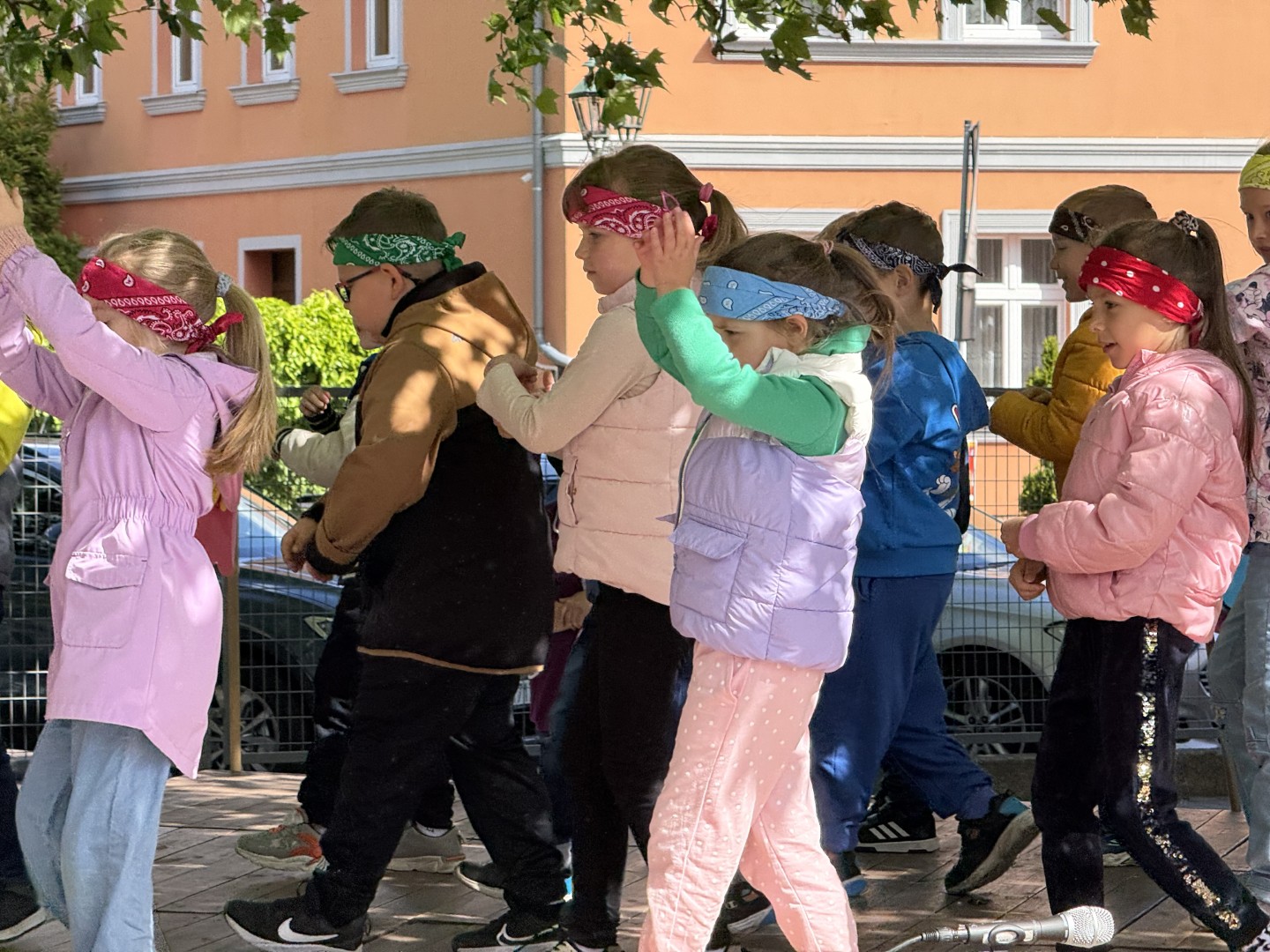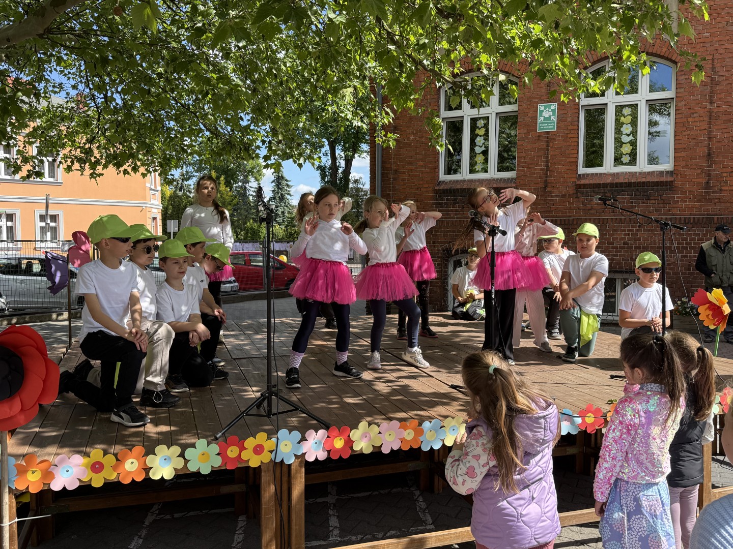 W piątek, 23.05.2025r. na podwórzu szkolnym przy Farnej pod pięknym, rozłożystym platanem stanęła scena, która stała się areną popisów wokalnych i tanecznych wszystkich klas 0-3. Zdjęcia i nagrane filmiki będą materiałem wyjściowym do stworzenia impresji filmowej – teledysku, który wkrótce sprezentujemy Rodzicom naszych Dzieci na stronie szkoły i profilu fb z okazji DNIA MAMY. Oprócz prezentacji scenicznych tego dnia Dzieci miały okazję uczestniczyć w Grze Miejskiej pod hasłem „ Opalenica w słoiku”. Zabawa polegała na znajdowaniu rozmieszczonych w ważnych miejscach naszego miasta słoików z zadaniami. Instrukcje były przeróżne i ściśle związane z odwiedzanymi miejscami. W Ratuszu np. uczniowie musieli załatwić sprawę w biurze podawczym, na Dworcu Kolejowym porozumieć się z Panią w kasie w kwestii pociągu do Warszawy. Okazało się, że policzenie okien w kościele św. Józefa było nie lada wyzwaniem, a niektórzy młodzi mieszkańcy naszego miasta pierwszy raz przechodzili przez kładkę przerzuconą przez Mogilnicę w okolicach Kolorowego Zamku. Śmiechu, zabawy, zaskoczeń było całe mnóstwo. Po powrocie do szkoły wszyscy raczyli się watą cukrową. Dziękujemy wszystkim, dzięki którym ten dzień był tak wyjątkowy.
