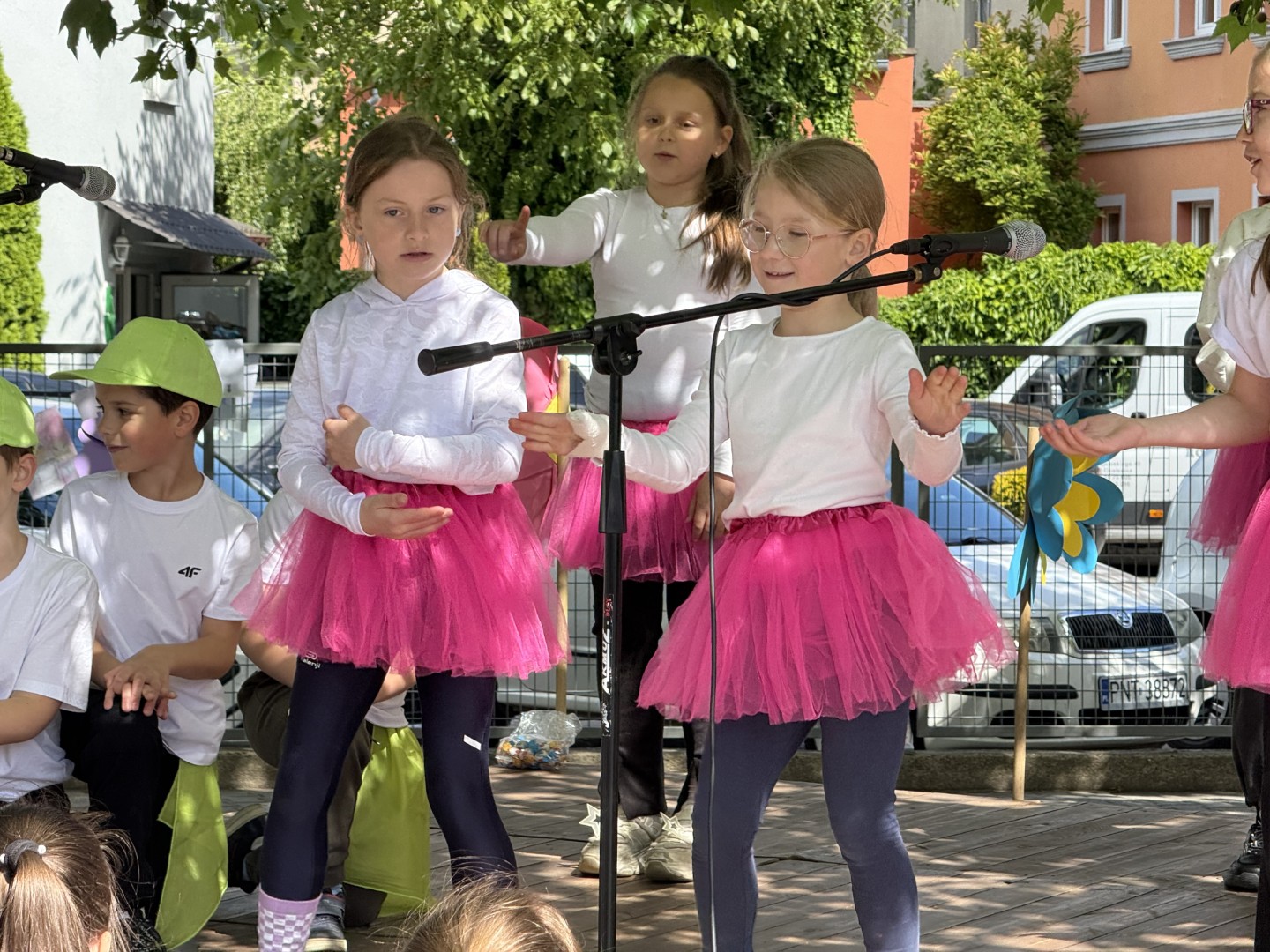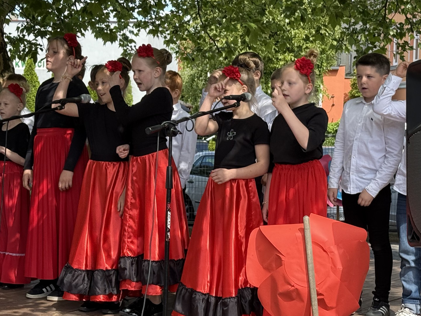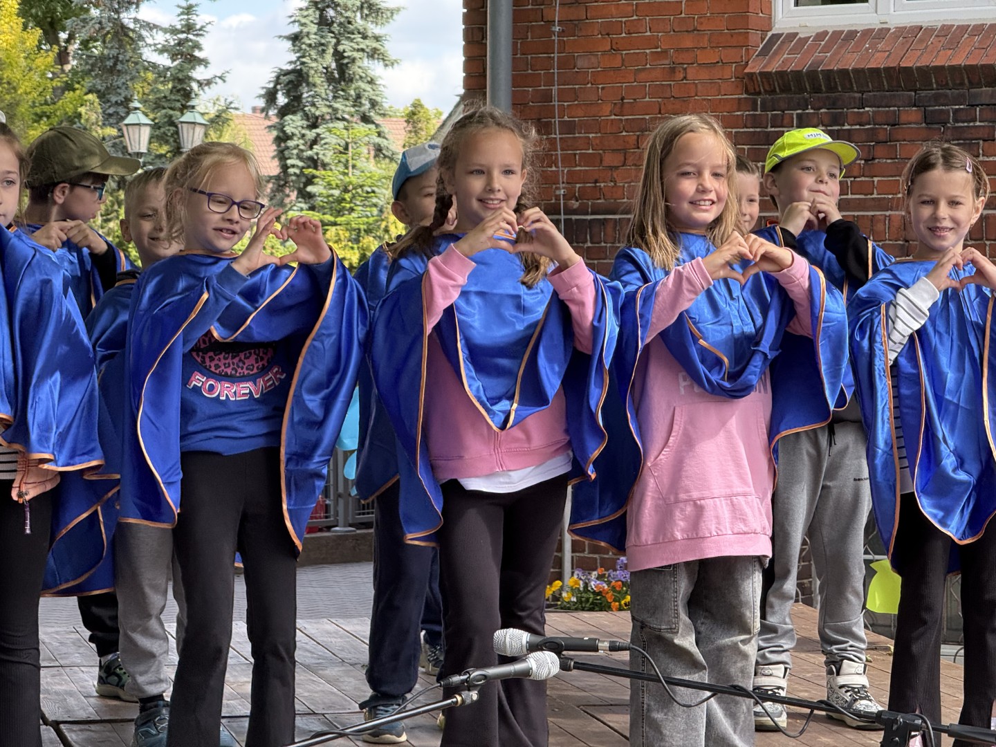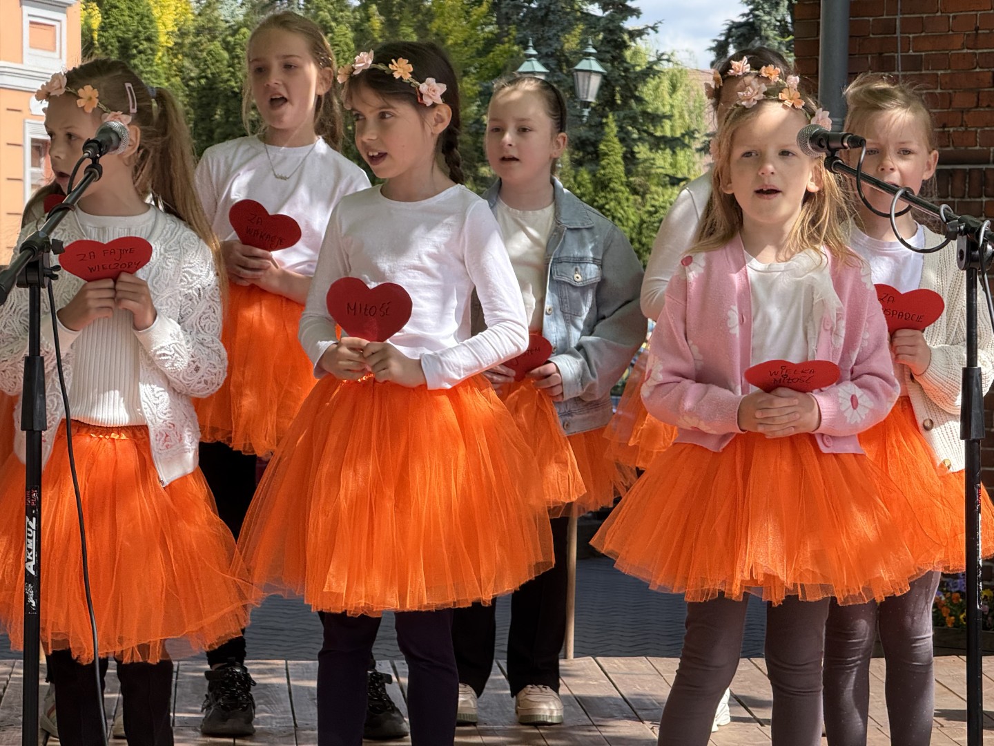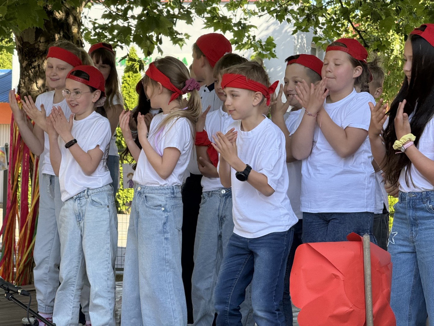 W piątek, 23.05.2025r. na podwórzu szkolnym przy Farnej pod pięknym, rozłożystym platanem stanęła scena, która stała się areną popisów wokalnych i tanecznych wszystkich klas 0-3. Zdjęcia i nagrane filmiki będą materiałem wyjściowym do stworzenia impresji filmowej – teledysku, który wkrótce sprezentujemy Rodzicom naszych Dzieci na stronie szkoły i profilu fb z okazji DNIA MAMY. Oprócz prezentacji scenicznych tego dnia Dzieci miały okazję uczestniczyć w Grze Miejskiej pod hasłem „ Opalenica w słoiku”. Zabawa polegała na znajdowaniu rozmieszczonych w ważnych miejscach naszego miasta słoików z zadaniami. Instrukcje były przeróżne i ściśle związane z odwiedzanymi miejscami. W Ratuszu np. uczniowie musieli załatwić sprawę w biurze podawczym, na Dworcu Kolejowym porozumieć się z Panią w kasie w kwestii pociągu do Warszawy. Okazało się, że policzenie okien w kościele św. Józefa było nie lada wyzwaniem, a niektórzy młodzi mieszkańcy naszego miasta pierwszy raz przechodzili przez kładkę przerzuconą przez Mogilnicę w okolicach Kolorowego Zamku. Śmiechu, zabawy, zaskoczeń było całe mnóstwo. Po powrocie do szkoły wszyscy raczyli się watą cukrową. Dziękujemy wszystkim, dzięki którym ten dzień był tak wyjątkowy.