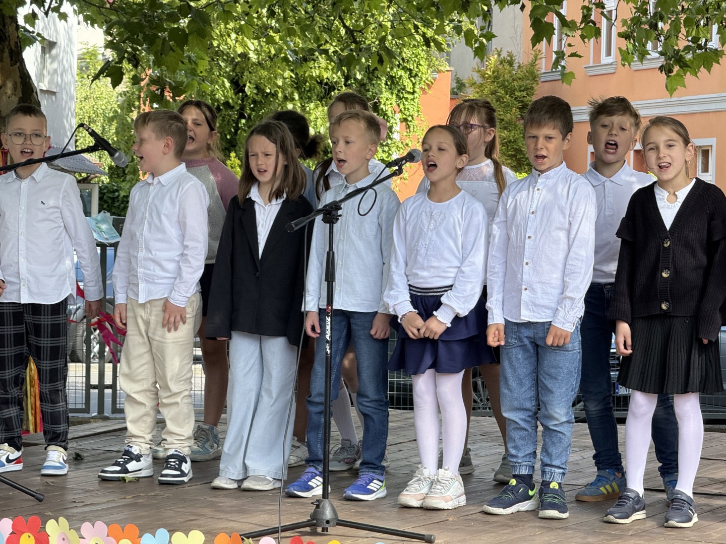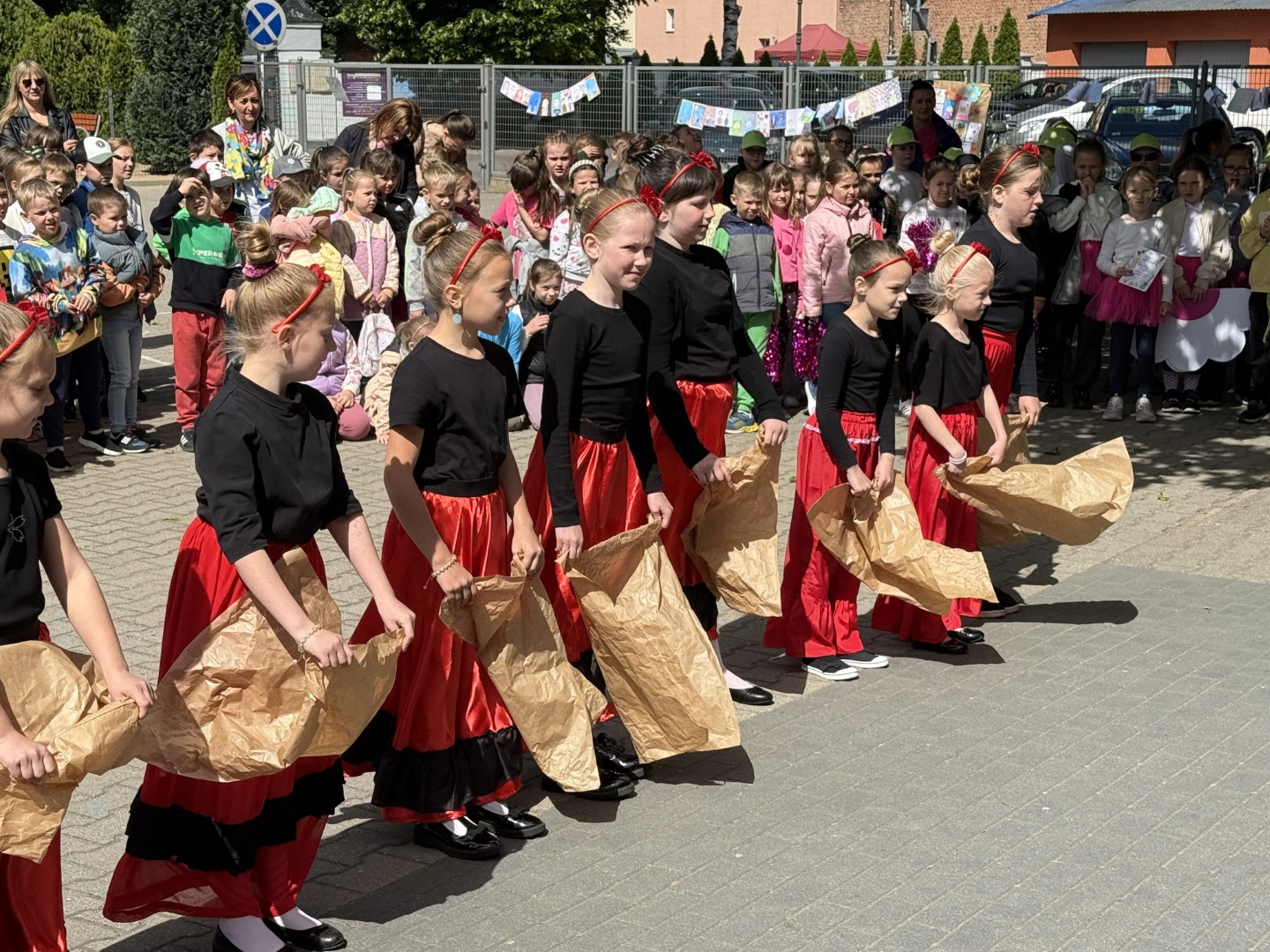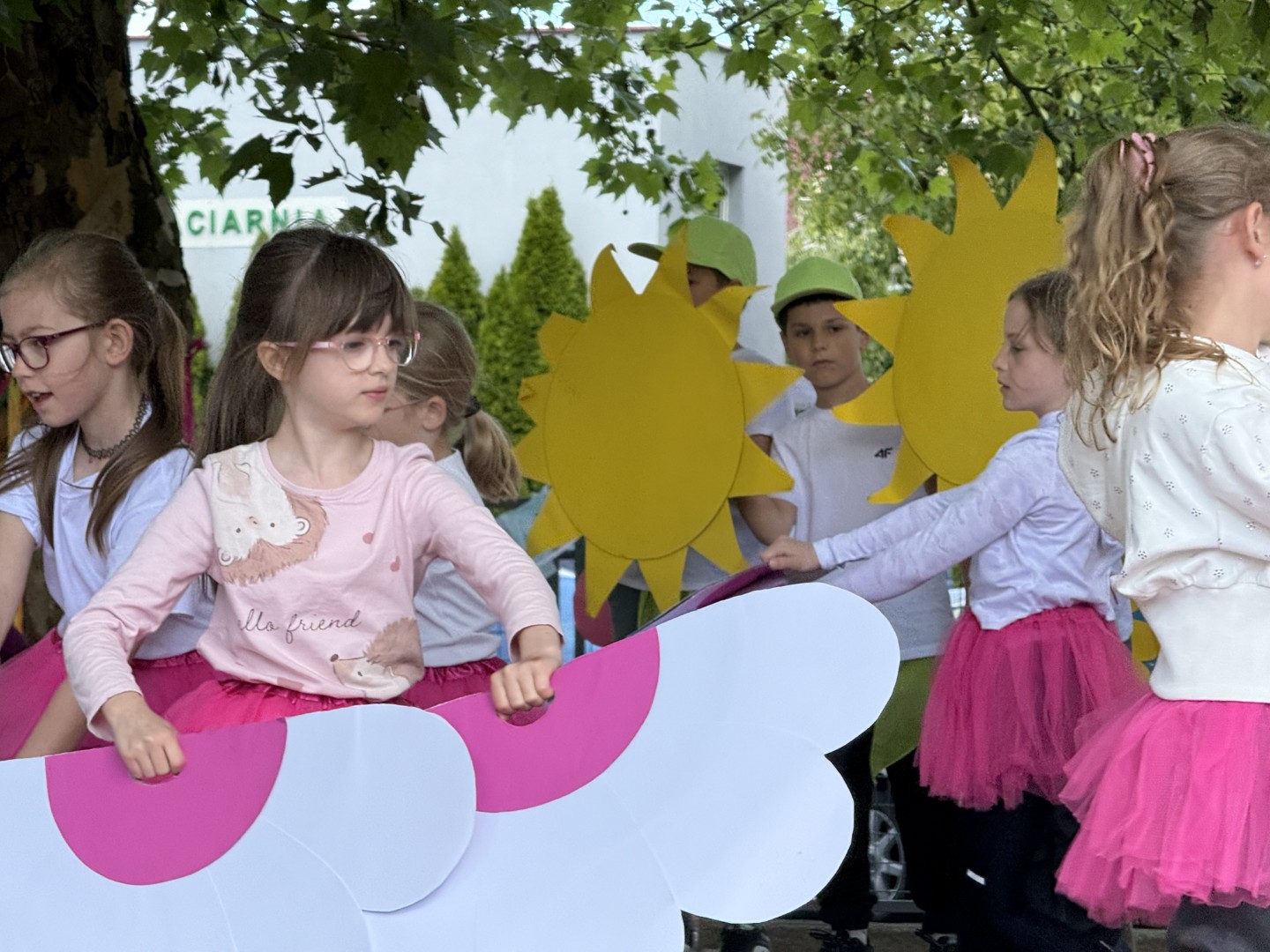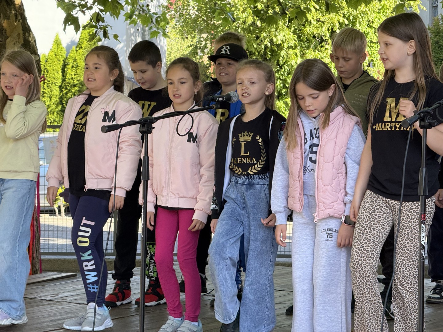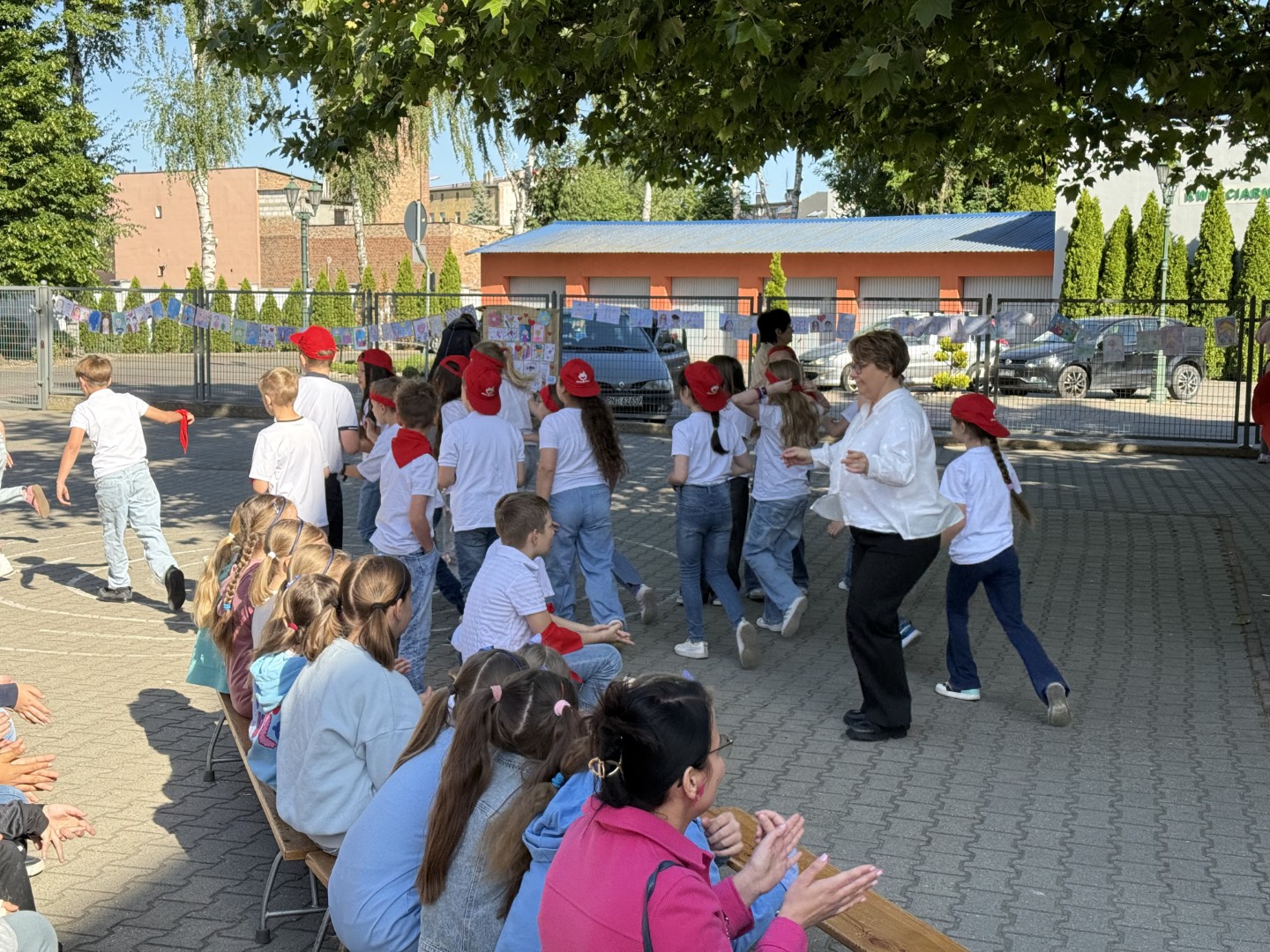W piątek, 23.05.2025r. na podwórzu szkolnym przy Farnej pod pięknym, rozłożystym platanem stanęła scena, która stała się areną popisów wokalnych i tanecznych wszystkich klas 0-3. Zdjęcia i nagrane filmiki będą materiałem wyjściowym do stworzenia impresji filmowej – teledysku, który wkrótce sprezentujemy Rodzicom naszych Dzieci na stronie szkoły i profilu fb z okazji DNIA MAMY. Oprócz prezentacji scenicznych tego dnia Dzieci miały okazję uczestniczyć w Grze Miejskiej pod hasłem „ Opalenica w słoiku”. Zabawa polegała na znajdowaniu rozmieszczonych w ważnych miejscach naszego miasta słoików z zadaniami. Instrukcje były przeróżne i ściśle związane z odwiedzanymi miejscami. W Ratuszu np. uczniowie musieli załatwić sprawę w biurze podawczym, na Dworcu Kolejowym porozumieć się z Panią w kasie w kwestii pociągu do Warszawy. Okazało się, że policzenie okien w kościele św. Józefa było nie lada wyzwaniem, a niektórzy młodzi mieszkańcy naszego miasta pierwszy raz przechodzili przez kładkę przerzuconą przez Mogilnicę w okolicach Kolorowego Zamku. Śmiechu, zabawy, zaskoczeń było całe mnóstwo. Po powrocie do szkoły wszyscy raczyli się watą cukrową. Dziękujemy wszystkim, dzięki którym ten dzień był tak wyjątkowy.