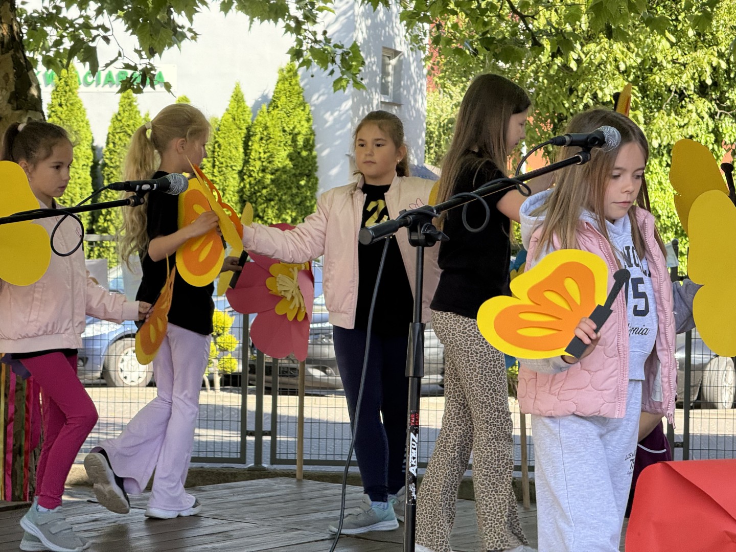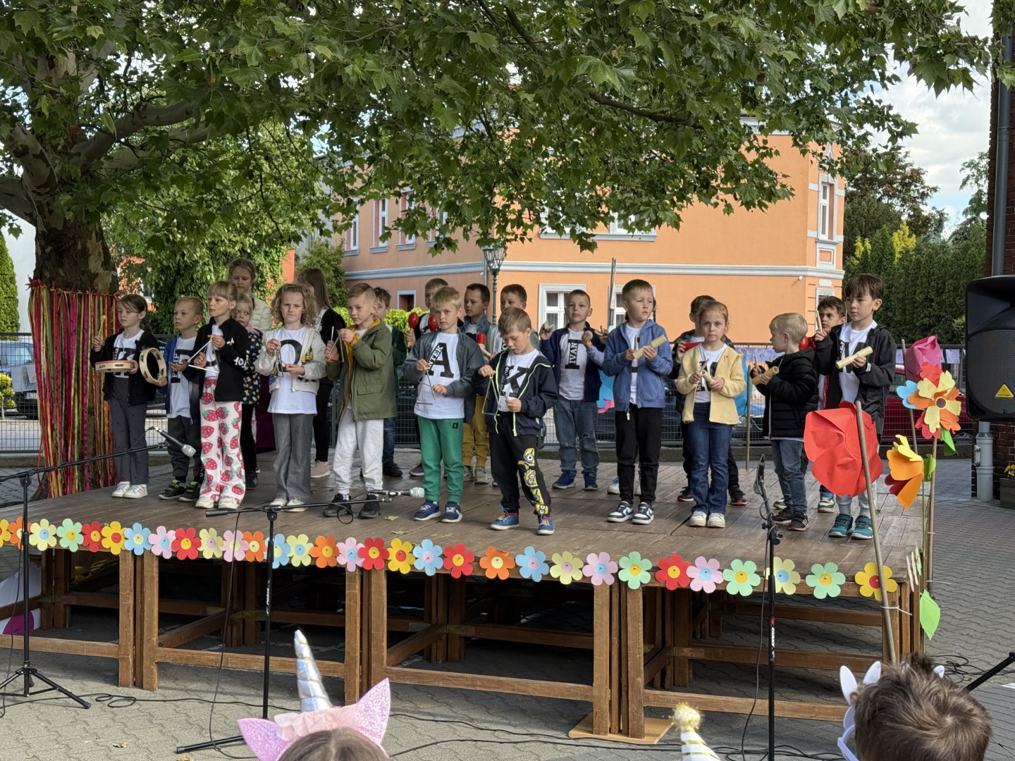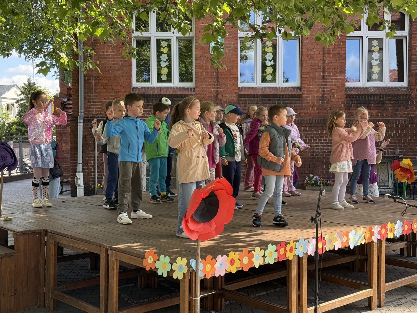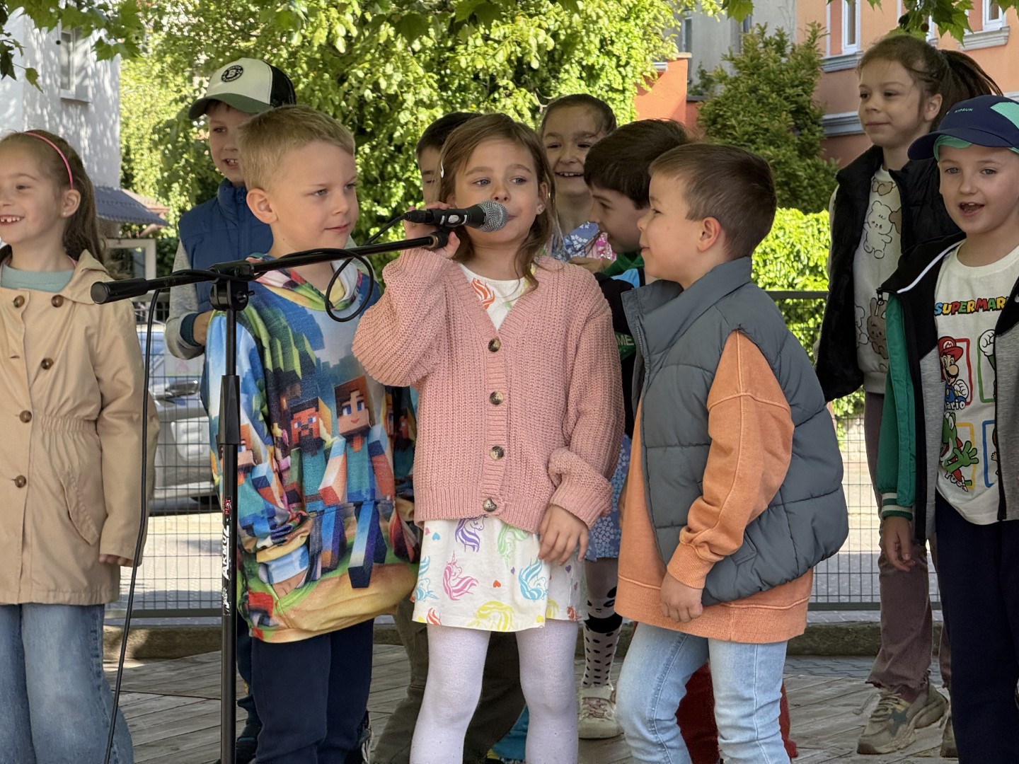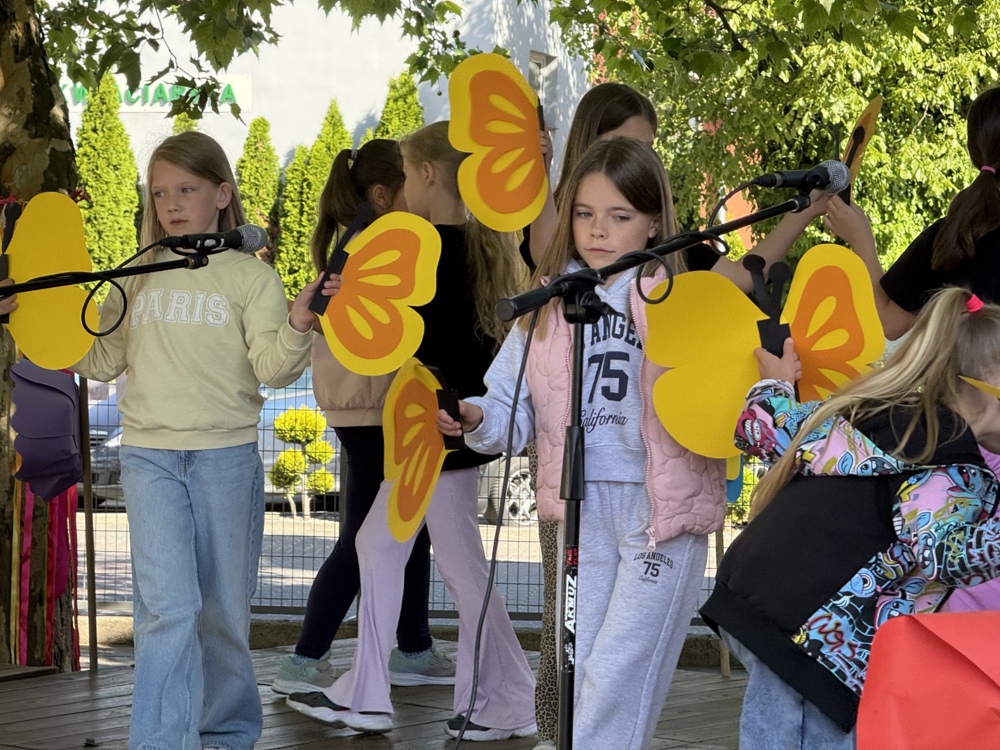 W piątek, 23.05.2025r. na podwórzu szkolnym przy Farnej pod pięknym, rozłożystym platanem stanęła scena, która stała się areną popisów wokalnych i tanecznych wszystkich klas 0-3. Zdjęcia i nagrane filmiki będą materiałem wyjściowym do stworzenia impresji filmowej – teledysku, który wkrótce sprezentujemy Rodzicom naszych Dzieci na stronie szkoły i profilu fb z okazji DNIA MAMY. Oprócz prezentacji scenicznych tego dnia Dzieci miały okazję uczestniczyć w Grze Miejskiej pod hasłem „ Opalenica w słoiku”. Zabawa polegała na znajdowaniu rozmieszczonych w ważnych miejscach naszego miasta słoików z zadaniami. Instrukcje były przeróżne i ściśle związane z odwiedzanymi miejscami. W Ratuszu np. uczniowie musieli załatwić sprawę w biurze podawczym, na Dworcu Kolejowym porozumieć się z Panią w kasie w kwestii pociągu do Warszawy. Okazało się, że policzenie okien w kościele św. Józefa było nie lada wyzwaniem, a niektórzy młodzi mieszkańcy naszego miasta pierwszy raz przechodzili przez kładkę przerzuconą przez Mogilnicę w okolicach Kolorowego Zamku. Śmiechu, zabawy, zaskoczeń było całe mnóstwo. Po powrocie do szkoły wszyscy raczyli się watą cukrową. Dziękujemy wszystkim, dzięki którym ten dzień był tak wyjątkowy.