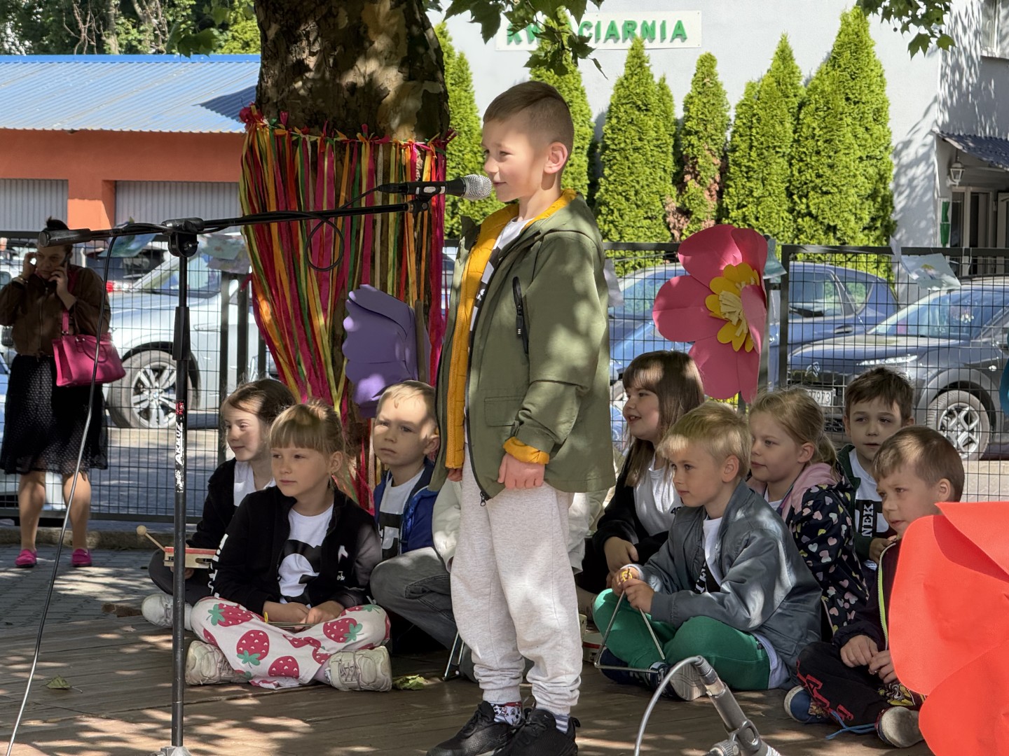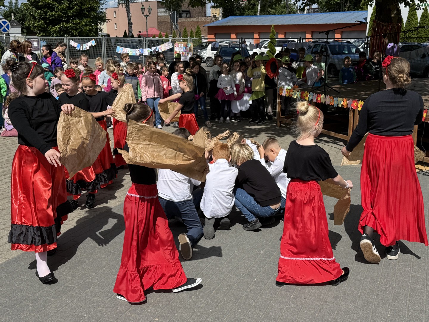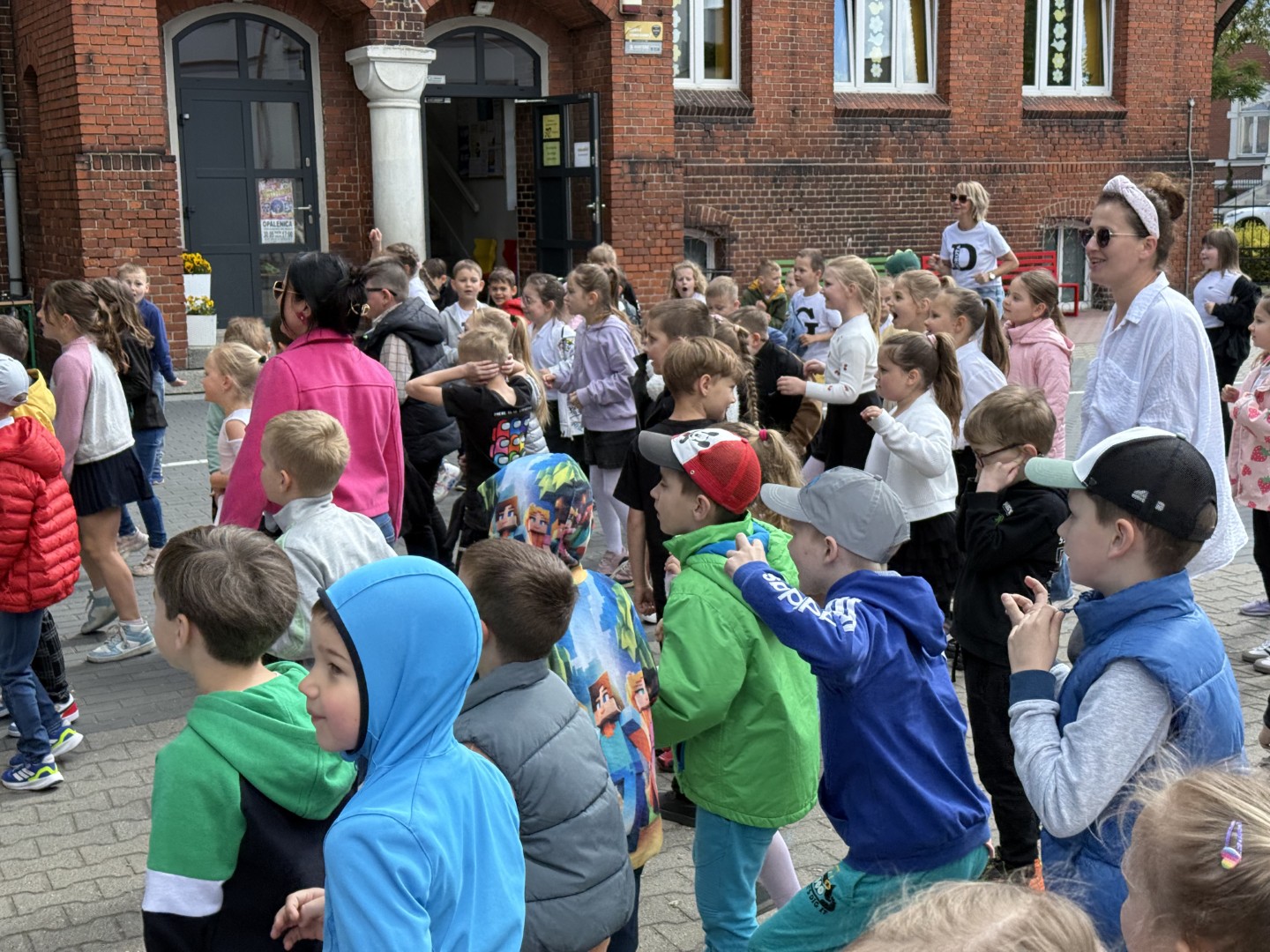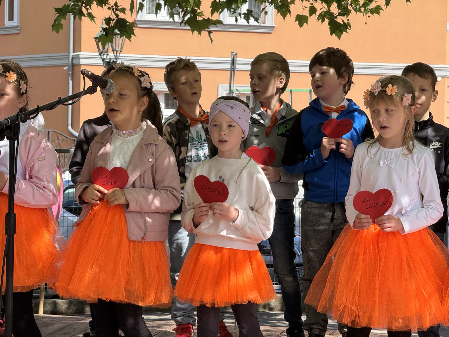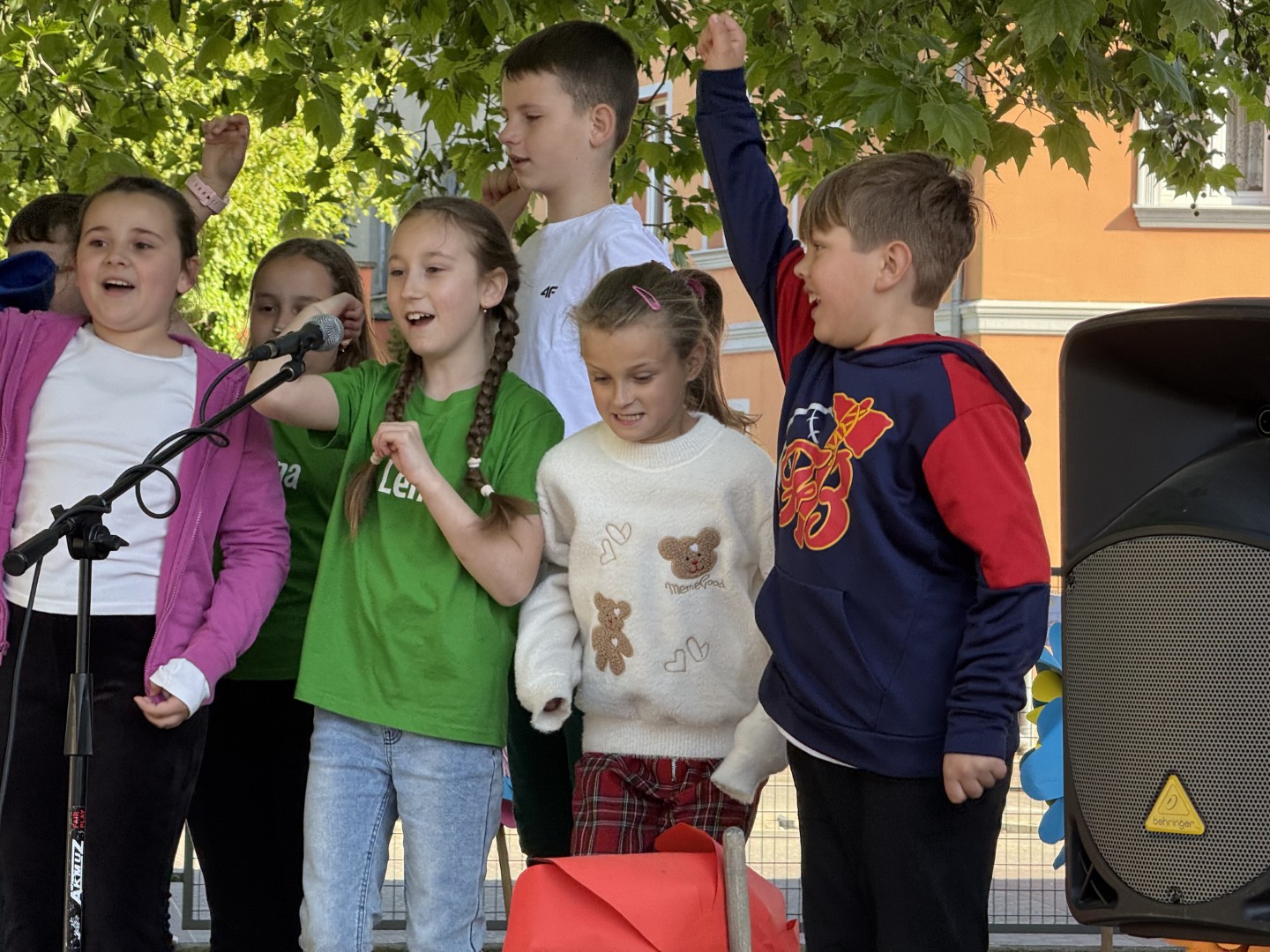 W piątek, 23.05.2025r. na podwórzu szkolnym przy Farnej pod pięknym, rozłożystym platanem stanęła scena, która stała się areną popisów wokalnych i tanecznych wszystkich klas 0-3. Zdjęcia i nagrane filmiki będą materiałem wyjściowym do stworzenia impresji filmowej – teledysku, który wkrótce sprezentujemy Rodzicom naszych Dzieci na stronie szkoły i profilu fb z okazji DNIA MAMY. Oprócz prezentacji scenicznych tego dnia Dzieci miały okazję uczestniczyć w Grze Miejskiej pod hasłem „ Opalenica w słoiku”. Zabawa polegała na znajdowaniu rozmieszczonych w ważnych miejscach naszego miasta słoików z zadaniami. Instrukcje były przeróżne i ściśle związane z odwiedzanymi miejscami. W Ratuszu np. uczniowie musieli załatwić sprawę w biurze podawczym, na Dworcu Kolejowym porozumieć się z Panią w kasie w kwestii pociągu do Warszawy. Okazało się, że policzenie okien w kościele św. Józefa było nie lada wyzwaniem, a niektórzy młodzi mieszkańcy naszego miasta pierwszy raz przechodzili przez kładkę przerzuconą przez Mogilnicę w okolicach Kolorowego Zamku. Śmiechu, zabawy, zaskoczeń było całe mnóstwo. Po powrocie do szkoły wszyscy raczyli się watą cukrową. Dziękujemy wszystkim, dzięki którym ten dzień był tak wyjątkowy.