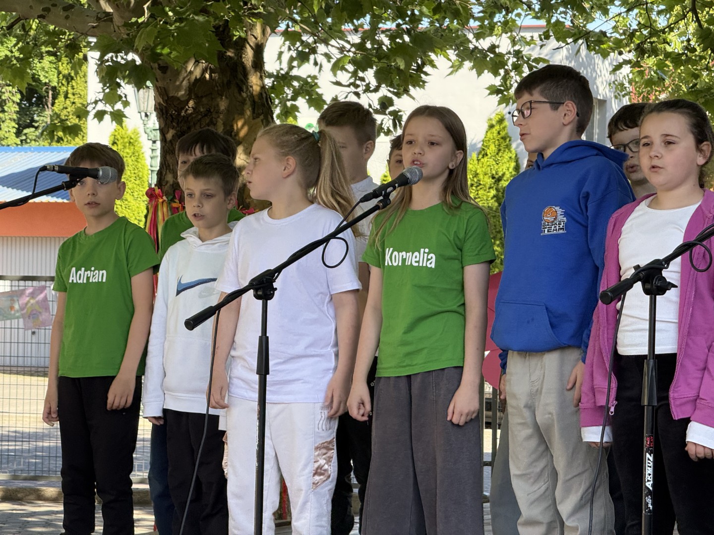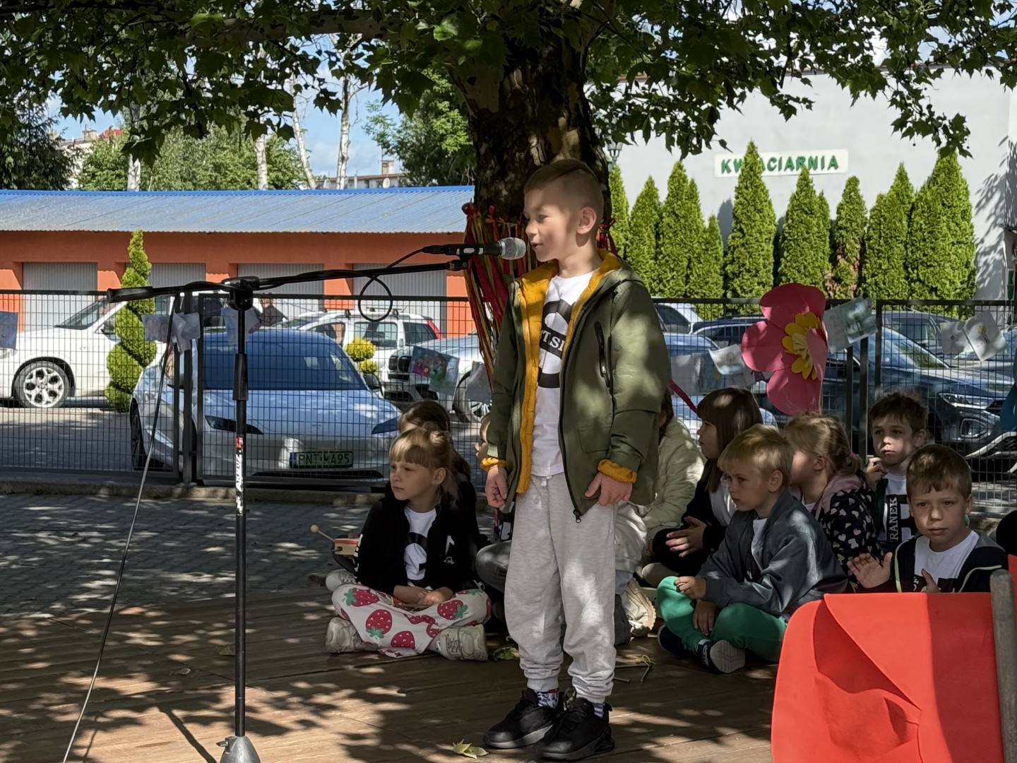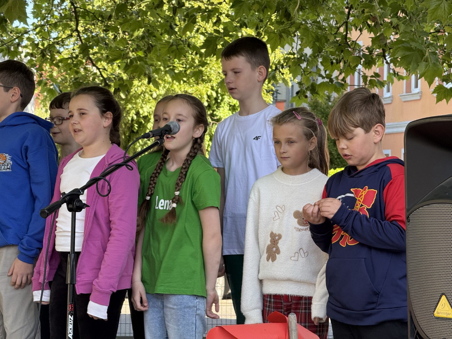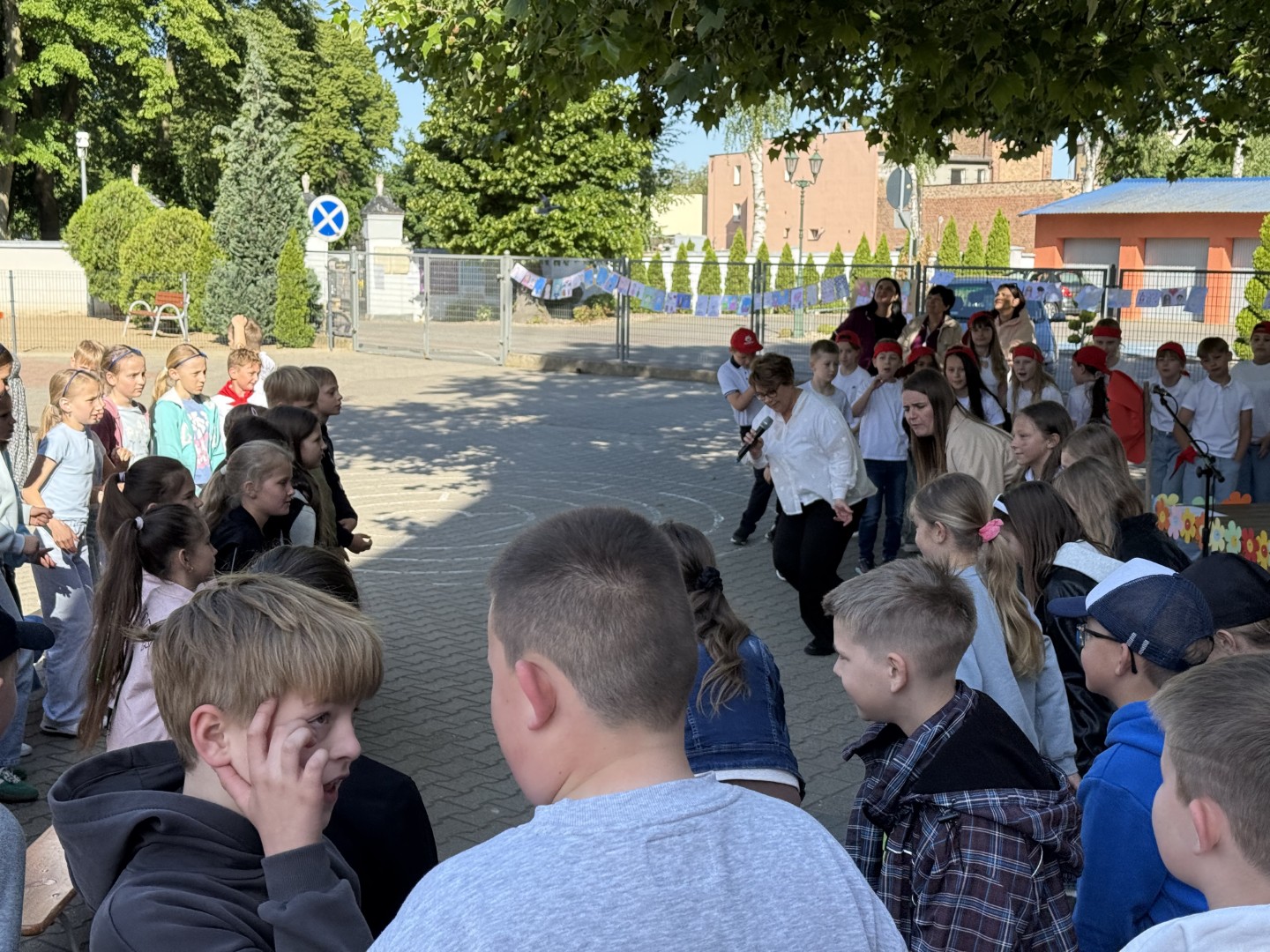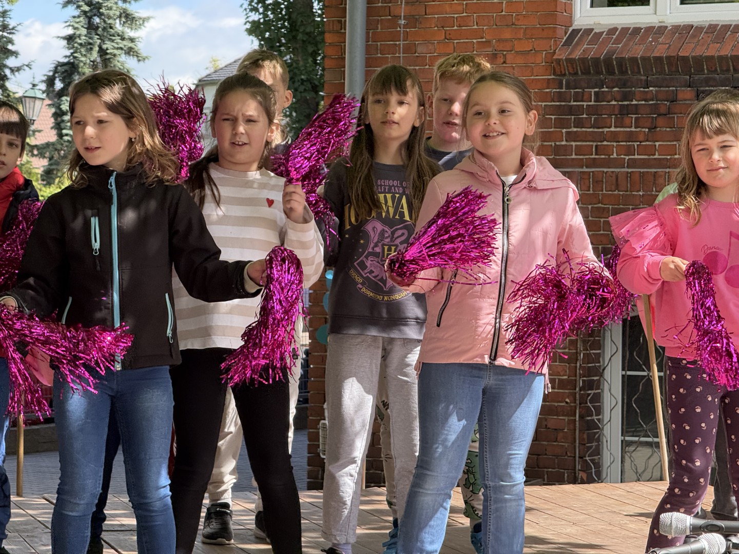 W piątek, 23.05.2025r. na podwórzu szkolnym przy Farnej pod pięknym, rozłożystym platanem stanęła scena, która stała się areną popisów wokalnych i tanecznych wszystkich klas 0-3. Zdjęcia i nagrane filmiki będą materiałem wyjściowym do stworzenia impresji filmowej – teledysku, który wkrótce sprezentujemy Rodzicom naszych Dzieci na stronie szkoły i profilu fb z okazji DNIA MAMY. Oprócz prezentacji scenicznych tego dnia Dzieci miały okazję uczestniczyć w Grze Miejskiej pod hasłem „ Opalenica w słoiku”. Zabawa polegała na znajdowaniu rozmieszczonych w ważnych miejscach naszego miasta słoików z zadaniami. Instrukcje były przeróżne i ściśle związane z odwiedzanymi miejscami. W Ratuszu np. uczniowie musieli załatwić sprawę w biurze podawczym, na Dworcu Kolejowym porozumieć się z Panią w kasie w kwestii pociągu do Warszawy. Okazało się, że policzenie okien w kościele św. Józefa było nie lada wyzwaniem, a niektórzy młodzi mieszkańcy naszego miasta pierwszy raz przechodzili przez kładkę przerzuconą przez Mogilnicę w okolicach Kolorowego Zamku. Śmiechu, zabawy, zaskoczeń było całe mnóstwo. Po powrocie do szkoły wszyscy raczyli się watą cukrową. Dziękujemy wszystkim, dzięki którym ten dzień był tak wyjątkowy.