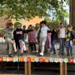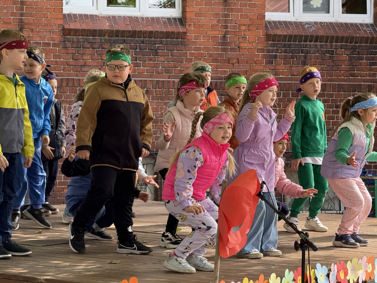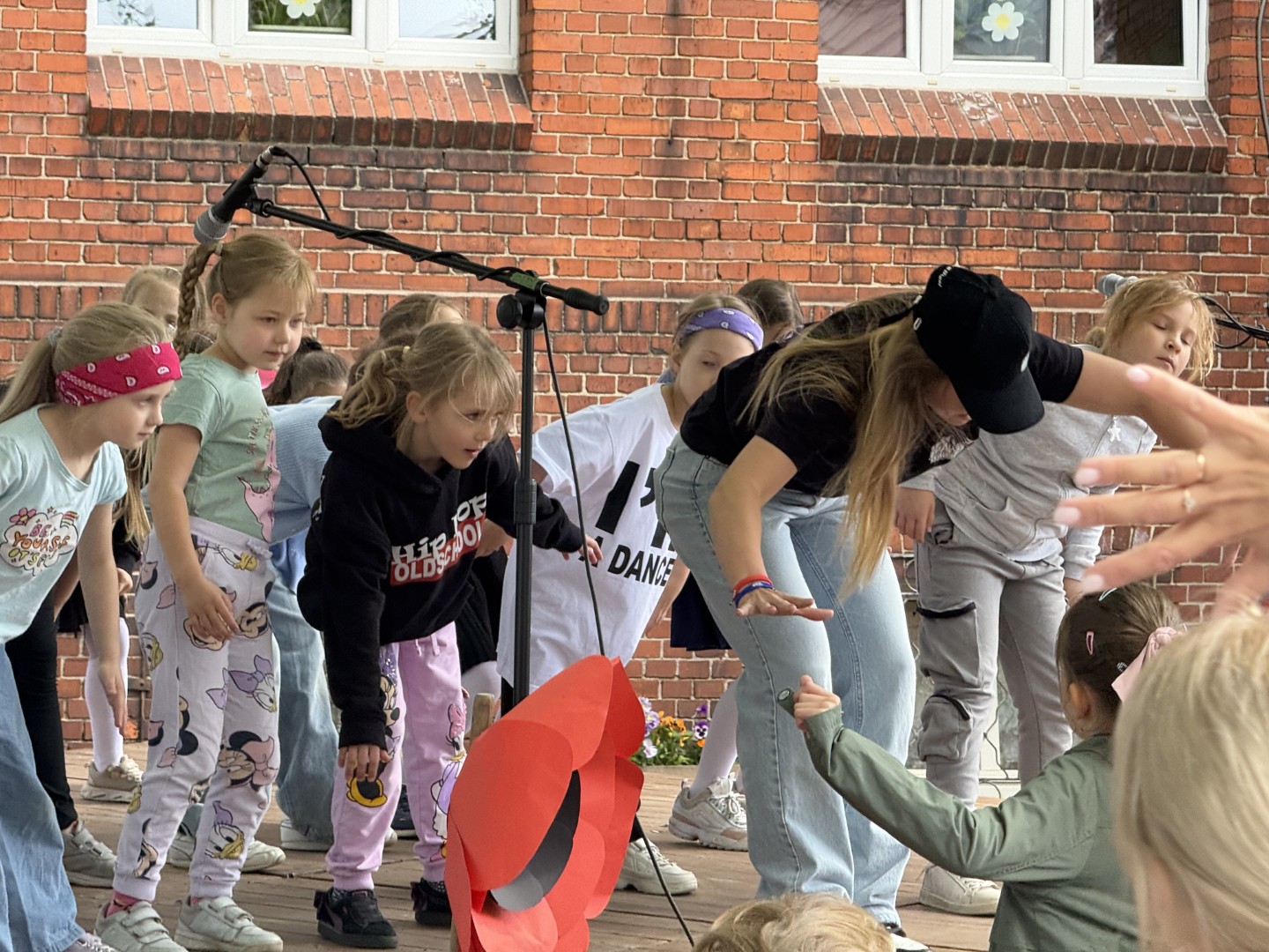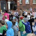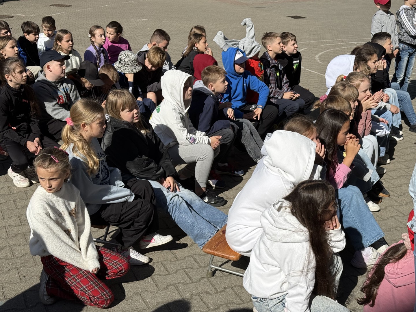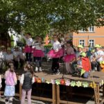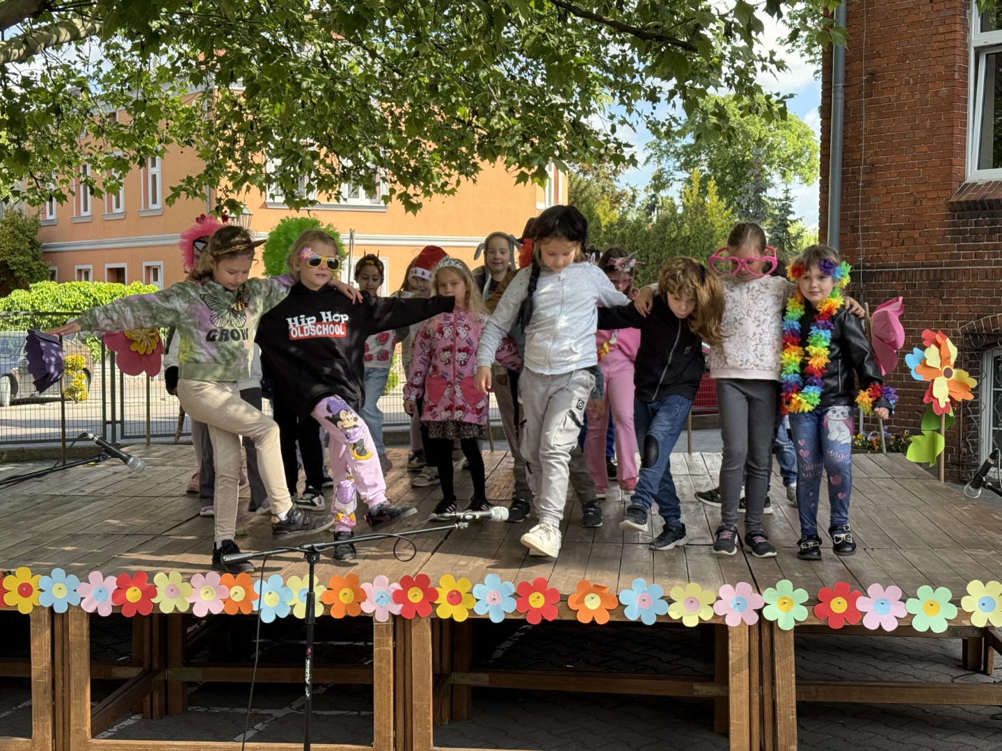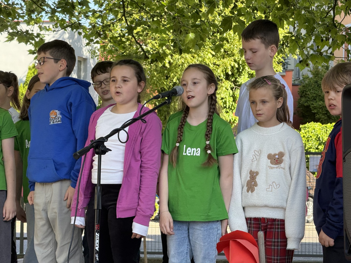 W piątek, 23.05.2025r. na podwórzu szkolnym przy Farnej pod pięknym, rozłożystym platanem stanęła scena, która stała się areną popisów wokalnych i tanecznych wszystkich klas 0-3. Zdjęcia i nagrane filmiki będą materiałem wyjściowym do stworzenia impresji filmowej – teledysku, który wkrótce sprezentujemy Rodzicom naszych Dzieci na stronie szkoły i profilu fb z okazji DNIA MAMY. Oprócz prezentacji scenicznych tego dnia Dzieci miały okazję uczestniczyć w Grze Miejskiej pod hasłem „ Opalenica w słoiku”. Zabawa polegała na znajdowaniu rozmieszczonych w ważnych miejscach naszego miasta słoików z zadaniami. Instrukcje były przeróżne i ściśle związane z odwiedzanymi miejscami. W Ratuszu np. uczniowie musieli załatwić sprawę w biurze podawczym, na Dworcu Kolejowym porozumieć się z Panią w kasie w kwestii pociągu do Warszawy. Okazało się, że policzenie okien w kościele św. Józefa było nie lada wyzwaniem, a niektórzy młodzi mieszkańcy naszego miasta pierwszy raz przechodzili przez kładkę przerzuconą przez Mogilnicę w okolicach Kolorowego Zamku. Śmiechu, zabawy, zaskoczeń było całe mnóstwo. Po powrocie do szkoły wszyscy raczyli się watą cukrową. Dziękujemy wszystkim, dzięki którym ten dzień był tak wyjątkowy.