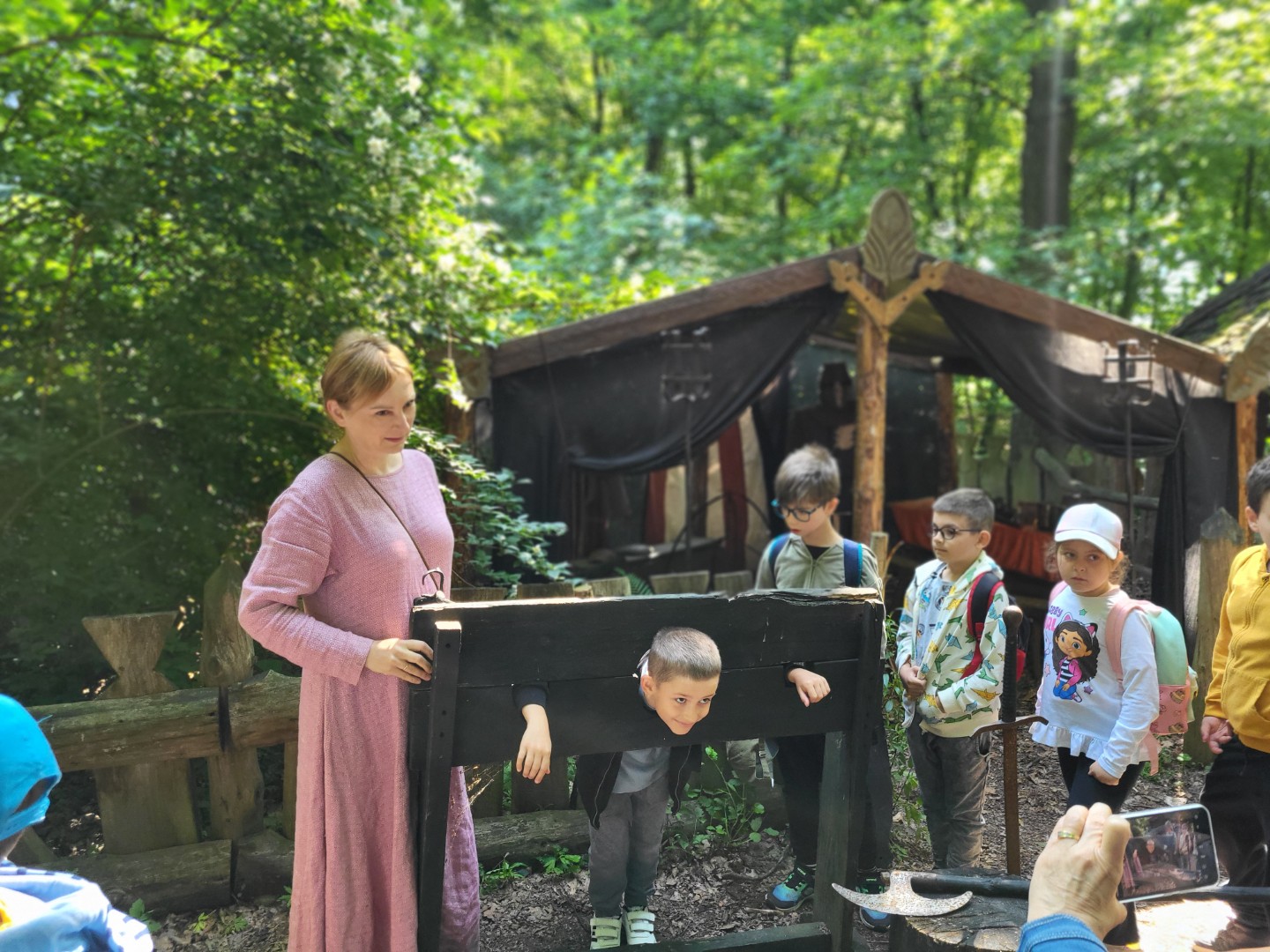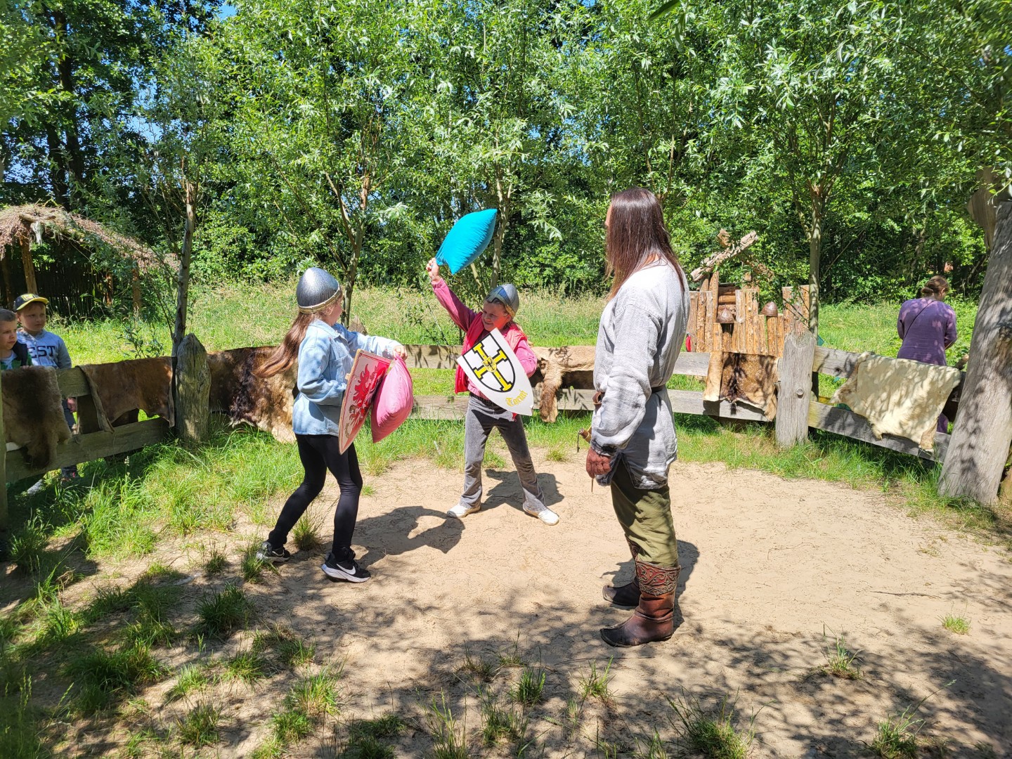 Dnia 13 czerwca uczniowie kl. 1b i 1d wraz z wychowawczyniami udali się na wycieczkę do Parku Historycznego Uroczysko Wolkołatka w Woli Jabłońskiej. Ideą Parku jest podróż do krainy Piastów. Historia przeplata się z obserwacją życia dawnych rzemieślników, wojów, książąt. Podczas wyprawy nie zabrakło zabaw i konkurencji sprawnościowych takich jak: strzelanie z kuszy, walki rycerzy na poduszki. Usłyszeliśmy jak strzela średniowieczna bombarda. Gościliśmy w Sali rycerskiej na koncercie dawnych instrumentów. Nieposłuszni zostali zakuci w dyby. A na koniec było ognisko z kiełbaską.