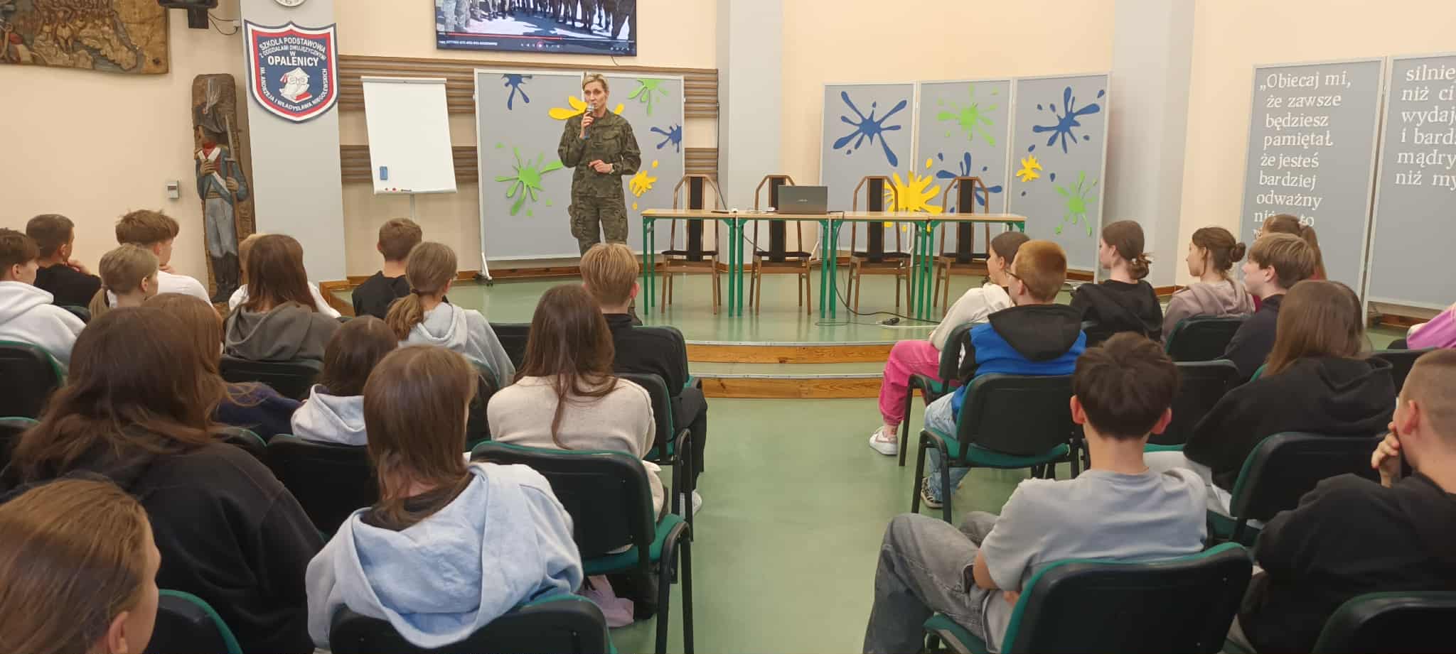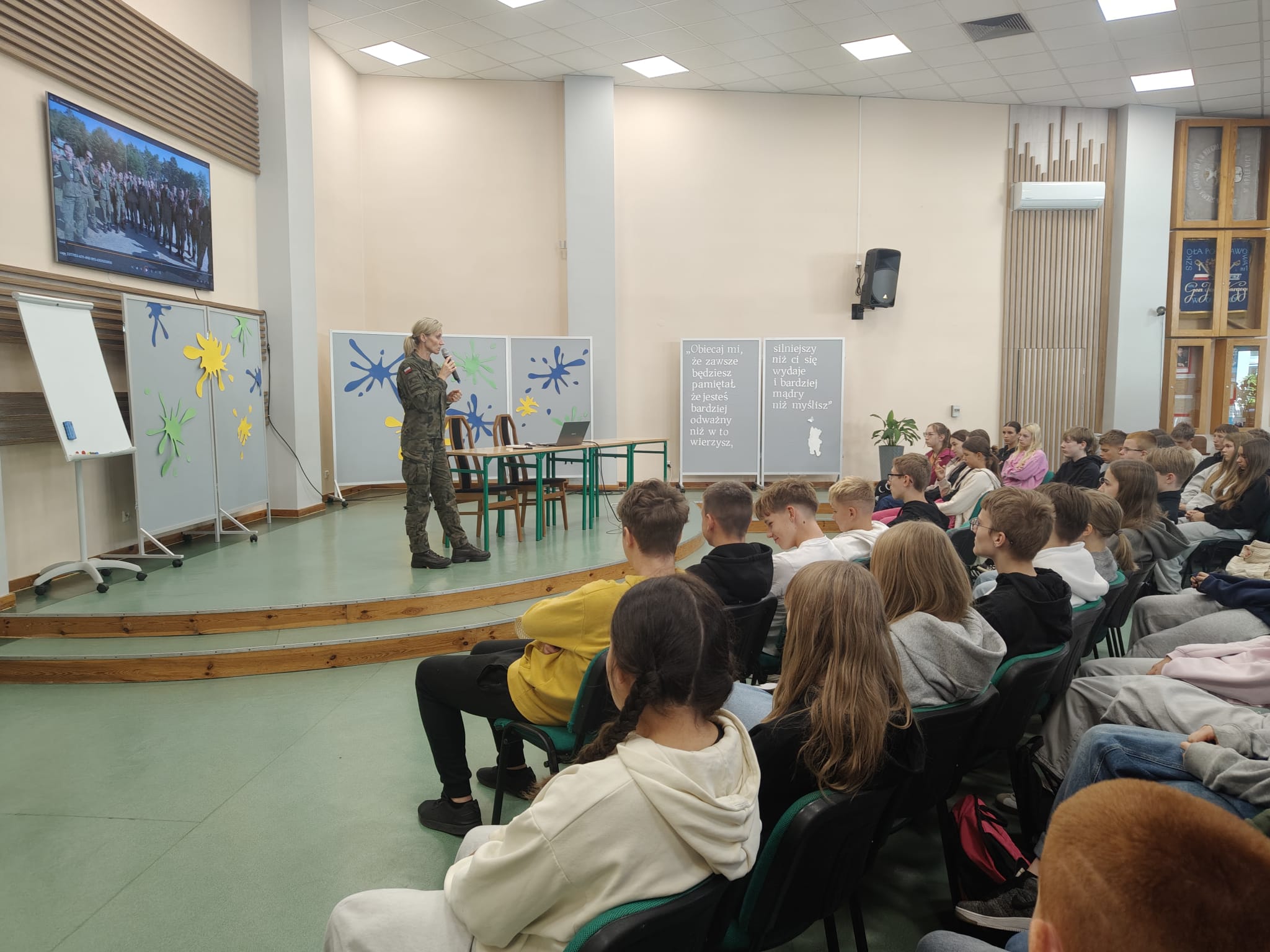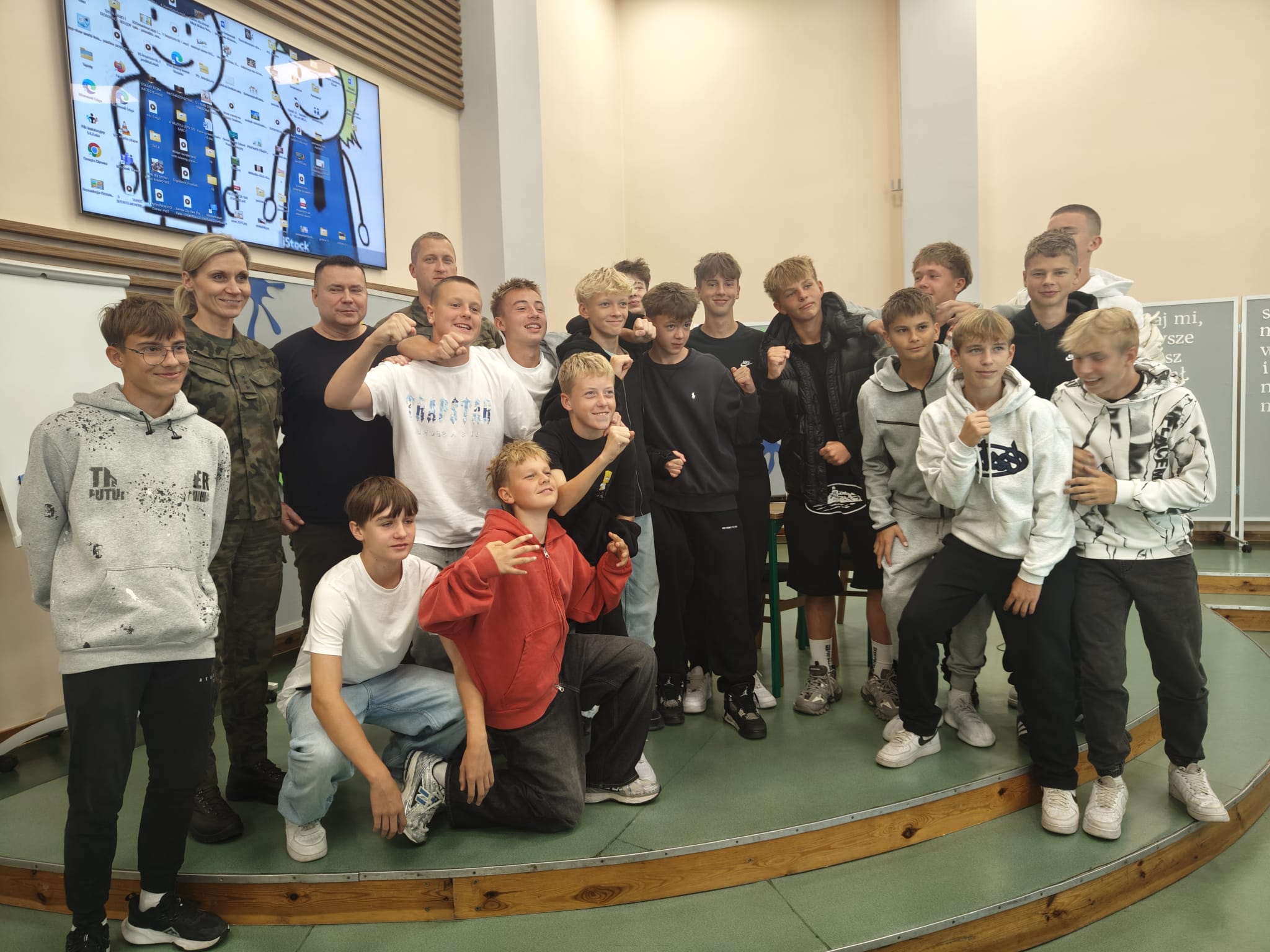 W dniu 25.09.2025r. uczniowie klas ósmych naszej szkoły uczestniczyli w spotkaniu z przedstawicielami Wojskowego Centrum Rekrutacji w Nowym Tomyślu porucznik Dorotą Kostańską, kapralem Błażejem Kuczem i panią Klaudia Kańdułą. Celem wizyty było przybliżenie młodzieży zasad funkcjonowania Wojska Polskiego, możliwości kariery w służbach mundurowych oraz zaprezentowanie ścieżek edukacyjnych i zawodowych, jakie oferuje armia.