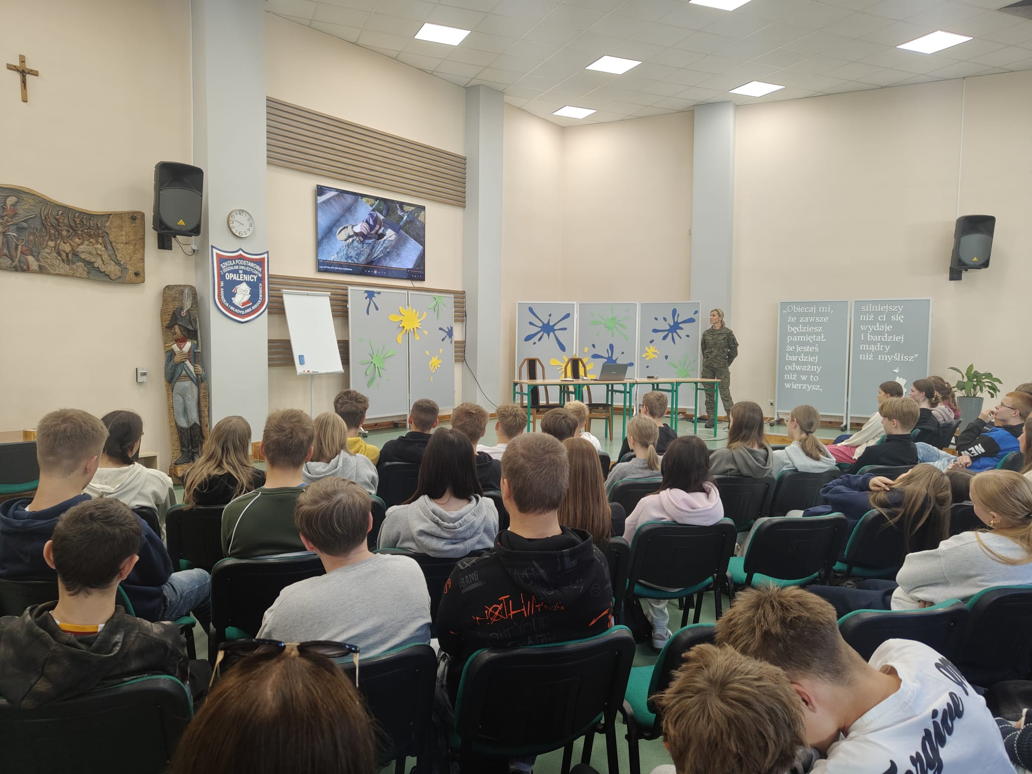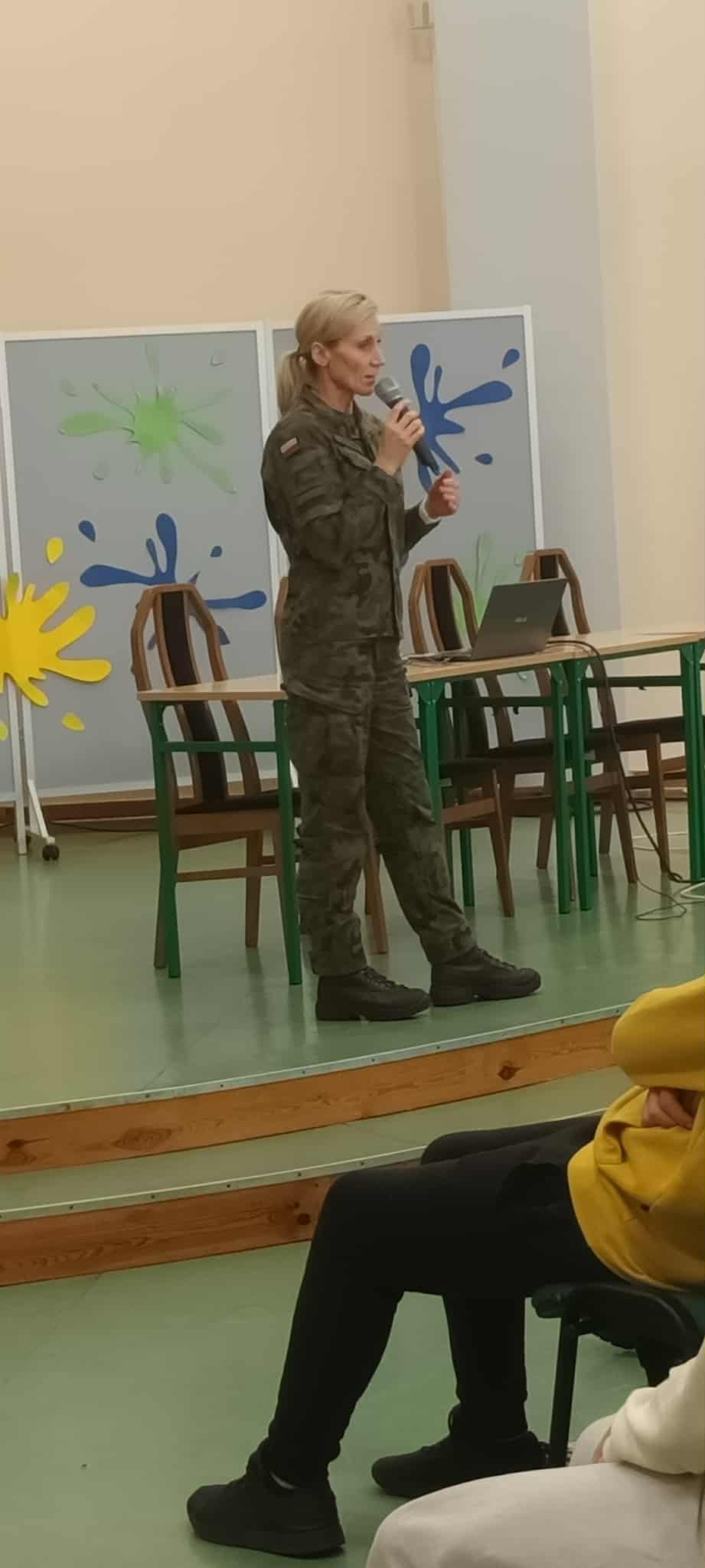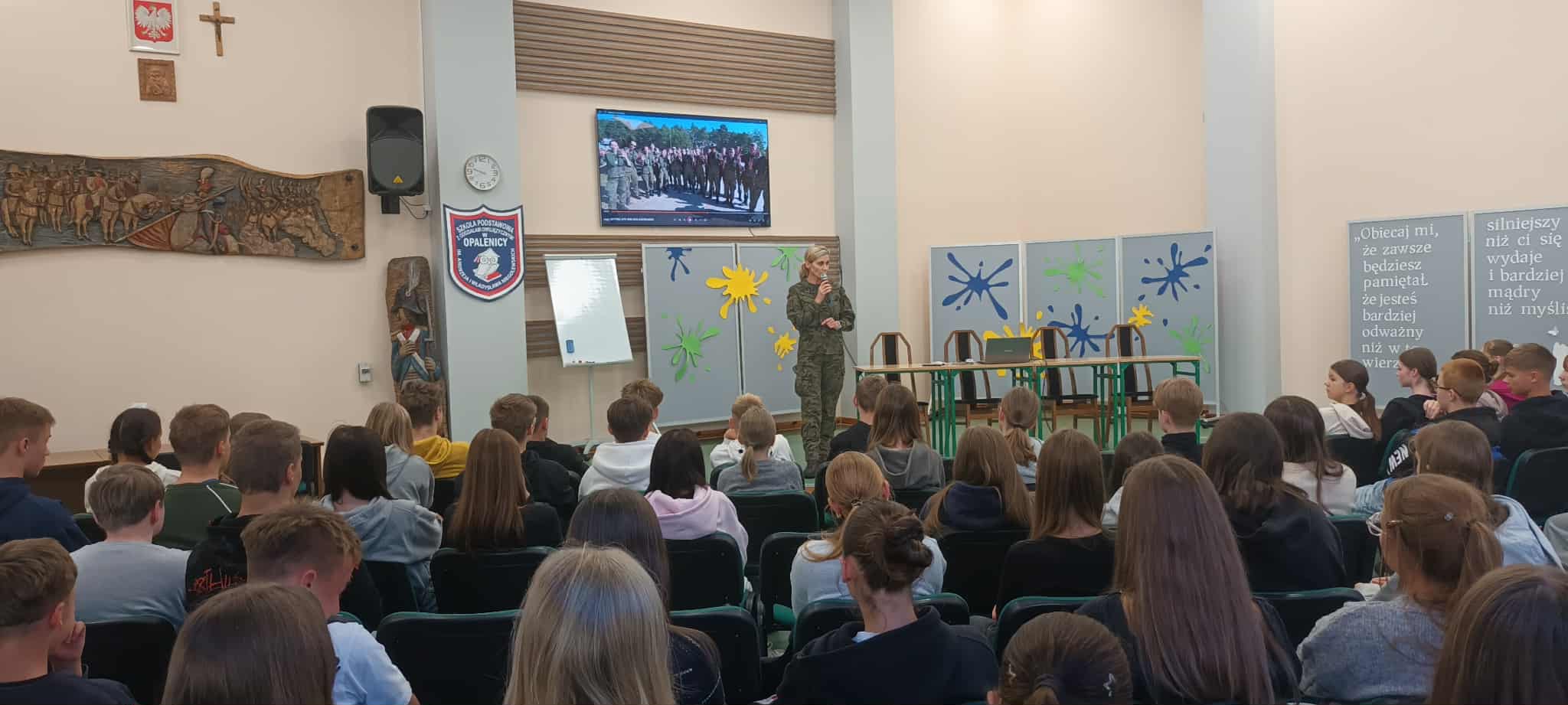 W dniu 25.09.2025r. uczniowie klas ósmych naszej szkoły uczestniczyli w spotkaniu z przedstawicielami Wojskowego Centrum Rekrutacji w Nowym Tomyślu porucznik Dorotą Kostańską, kapralem Błażejem Kuczem i panią Klaudia Kańdułą. Celem wizyty było przybliżenie młodzieży zasad funkcjonowania Wojska Polskiego, możliwości kariery w służbach mundurowych oraz zaprezentowanie ścieżek edukacyjnych i zawodowych, jakie oferuje armia.