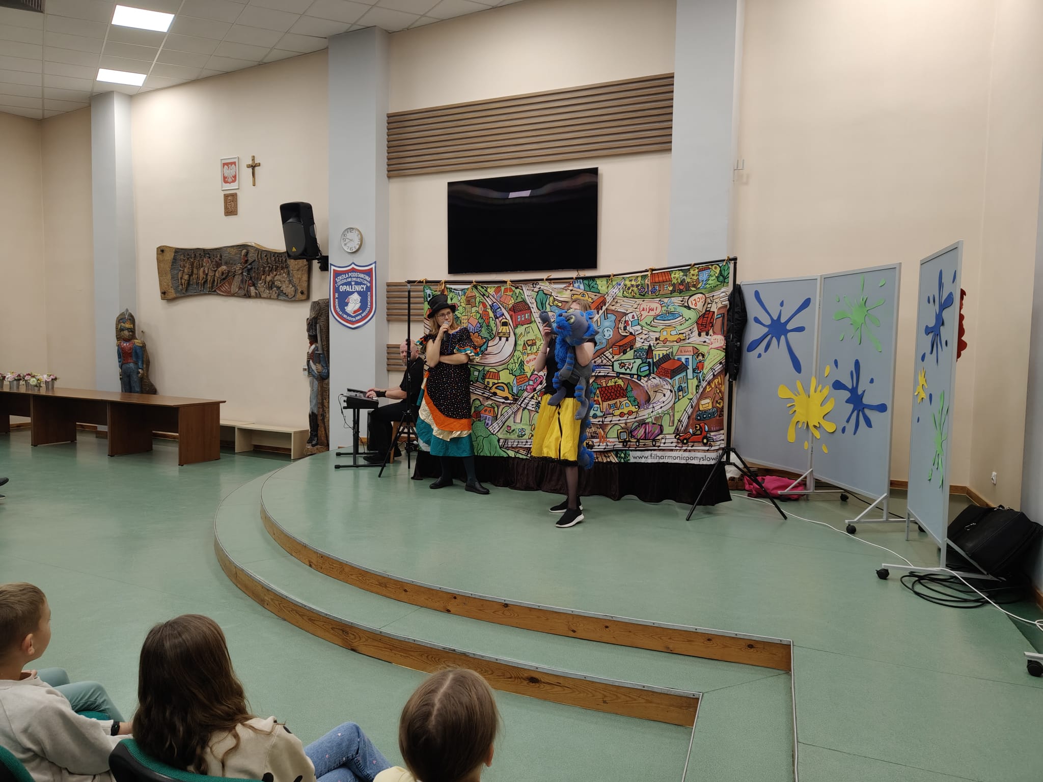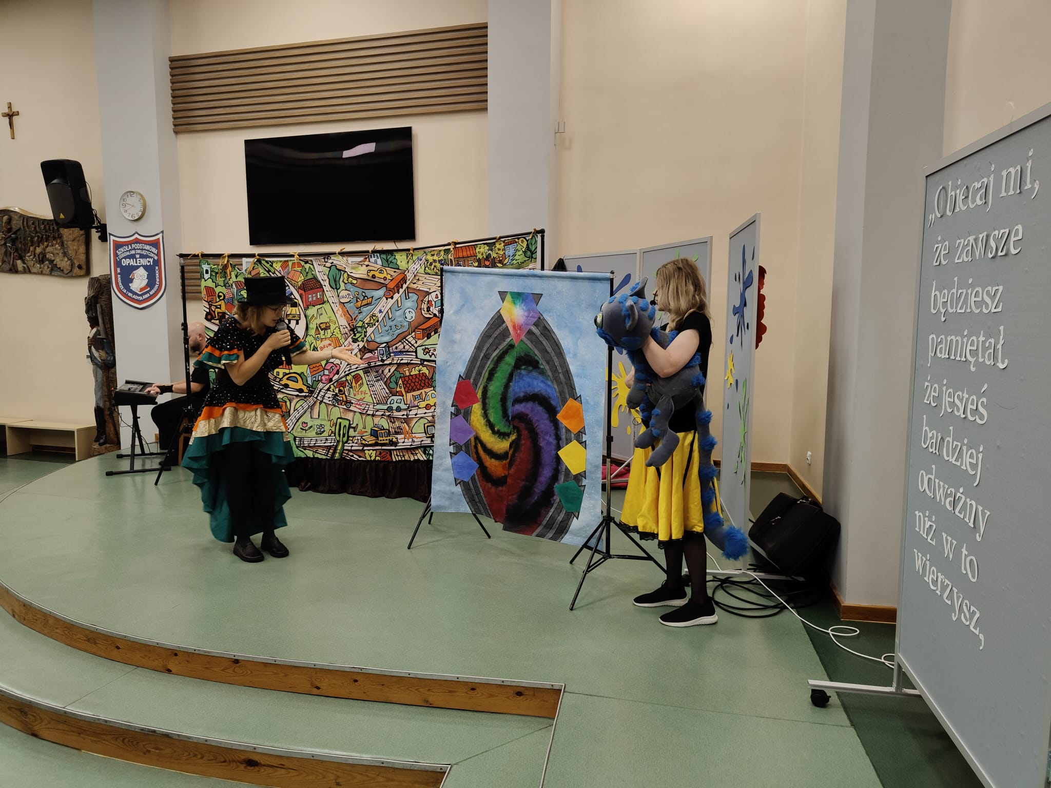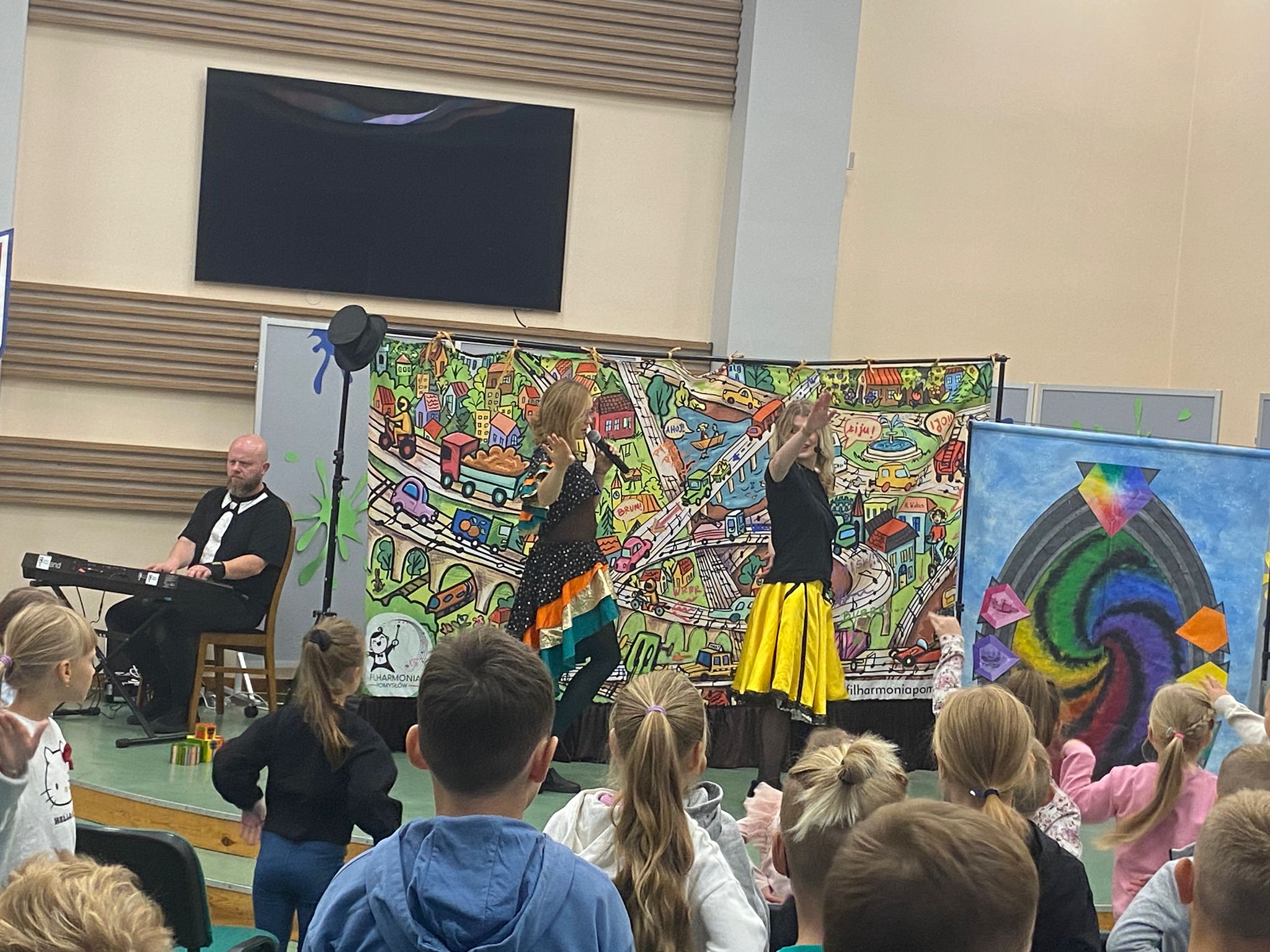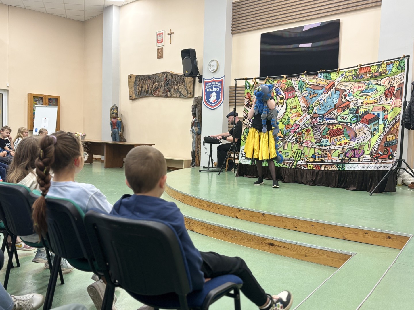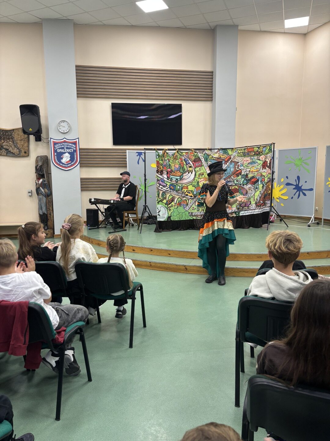 Na scenie pojawiły się barwne postacie – od dostojnej Strażniczki z operowym głosem, przez pełnego humoru Pana Kota, aż po dzieci, które stały się prawdziwymi bohaterami widowiska.  Dzieci wspólnie rozwiązywały muzyczne zagadki, odnajdywały zaginione Kamienie Mocy i krok po kroku otwierały portal do niezwykłej krainy – Dźwiękostrady.