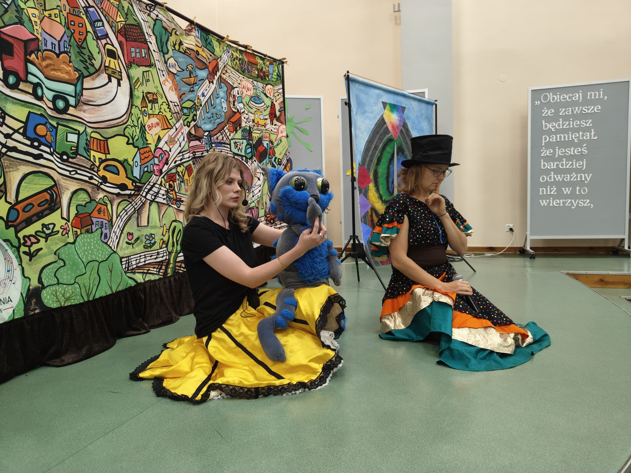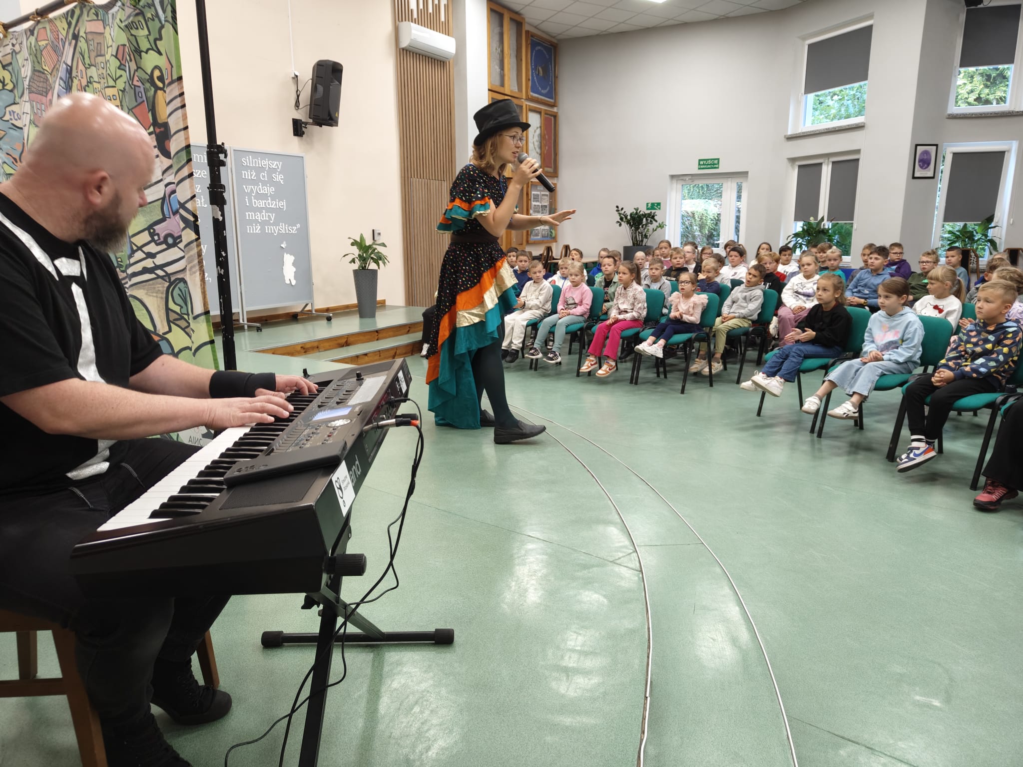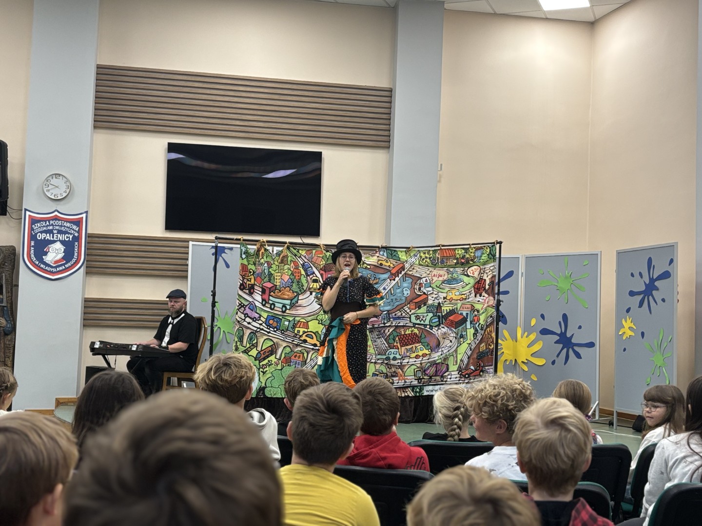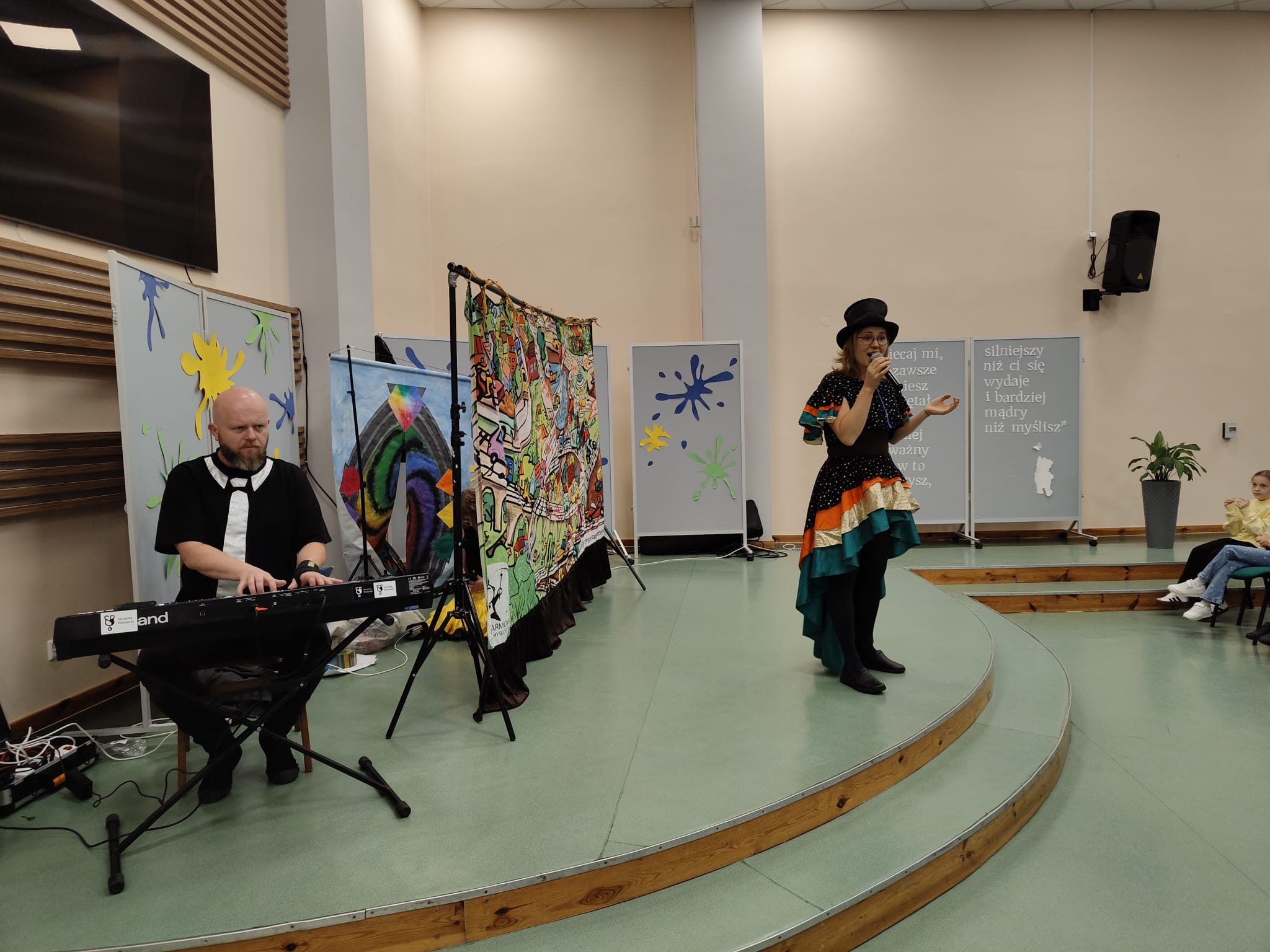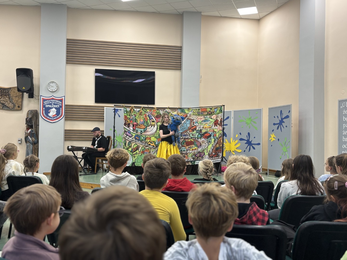 Na scenie pojawiły się barwne postacie – od dostojnej Strażniczki z operowym głosem, przez pełnego humoru Pana Kota, aż po dzieci, które stały się prawdziwymi bohaterami widowiska.  Dzieci wspólnie rozwiązywały muzyczne zagadki, odnajdywały zaginione Kamienie Mocy i krok po kroku otwierały portal do niezwykłej krainy – Dźwiękostrady.