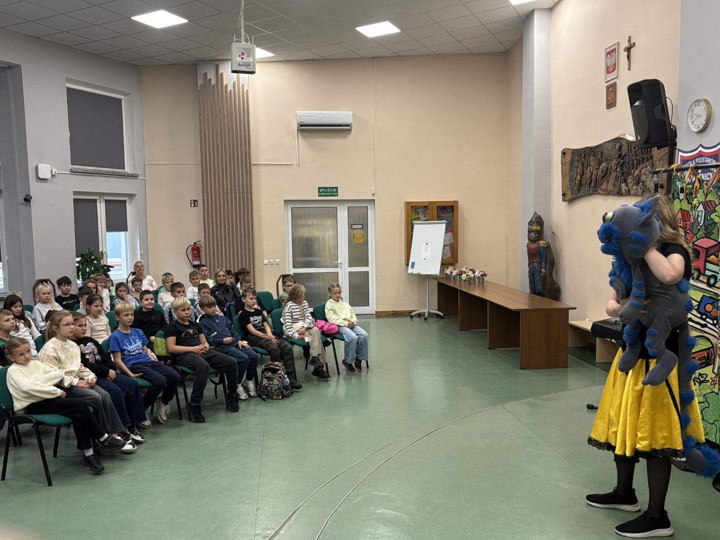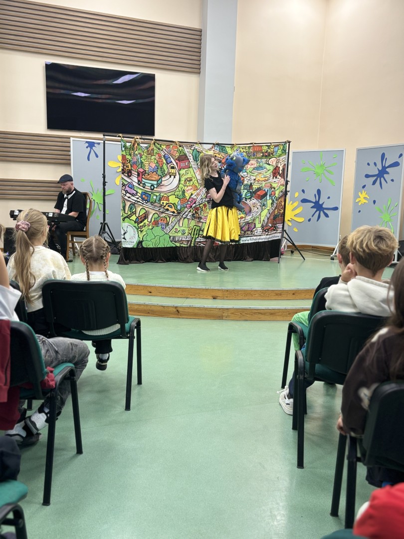 W naszej szkole odbyło się  przedstawienie pod tytułem „Tajemnice Dźwiękostrady”.  To  pierwsze z cyklu muzycznych spotkań, które proponuje nam poznańska Filharmonia Pomysłów. Artyści zabrali uczniów w niezwykłą podróż przez świat muzyki i sekretów.