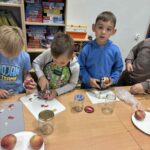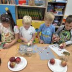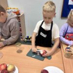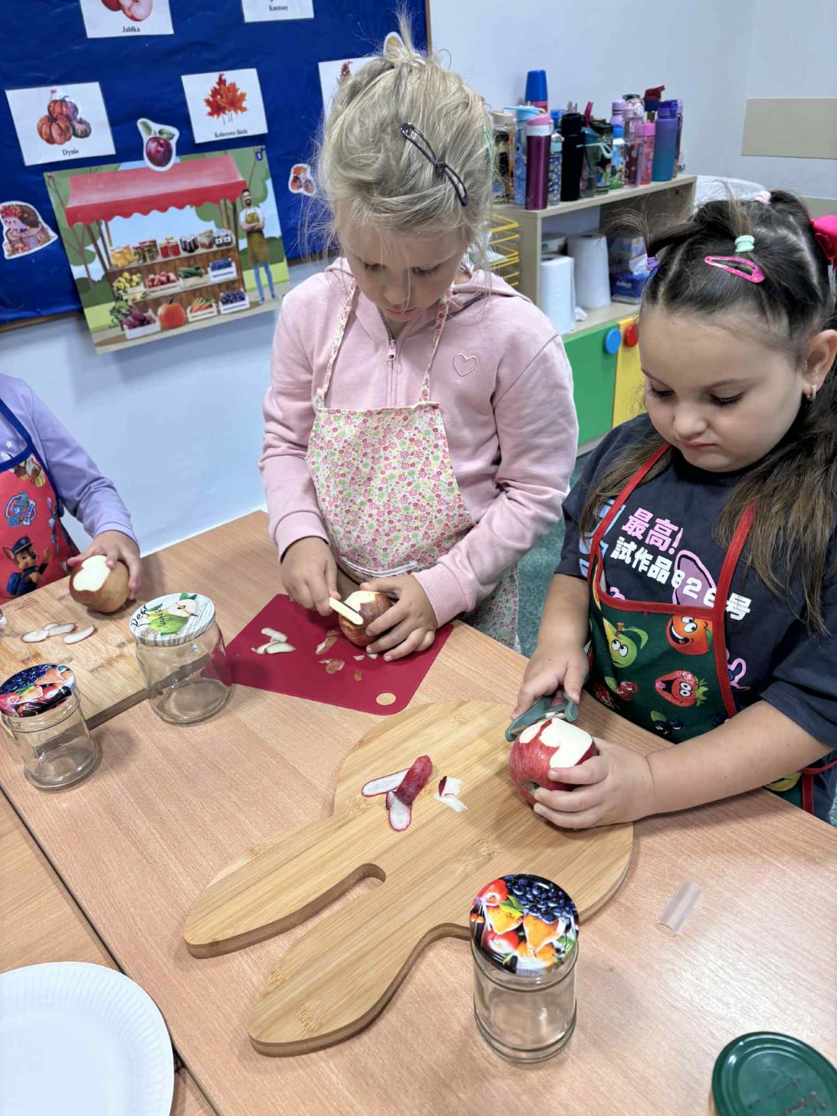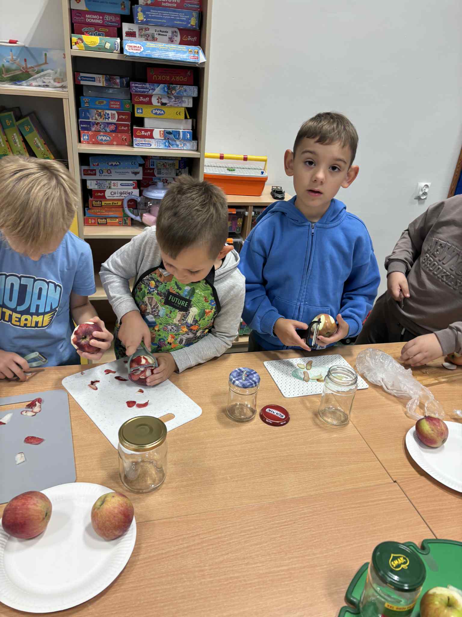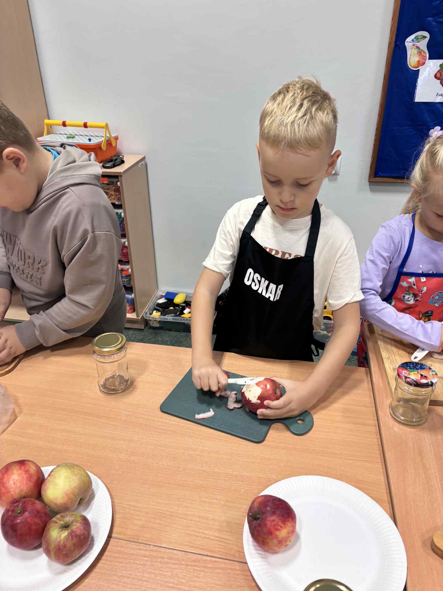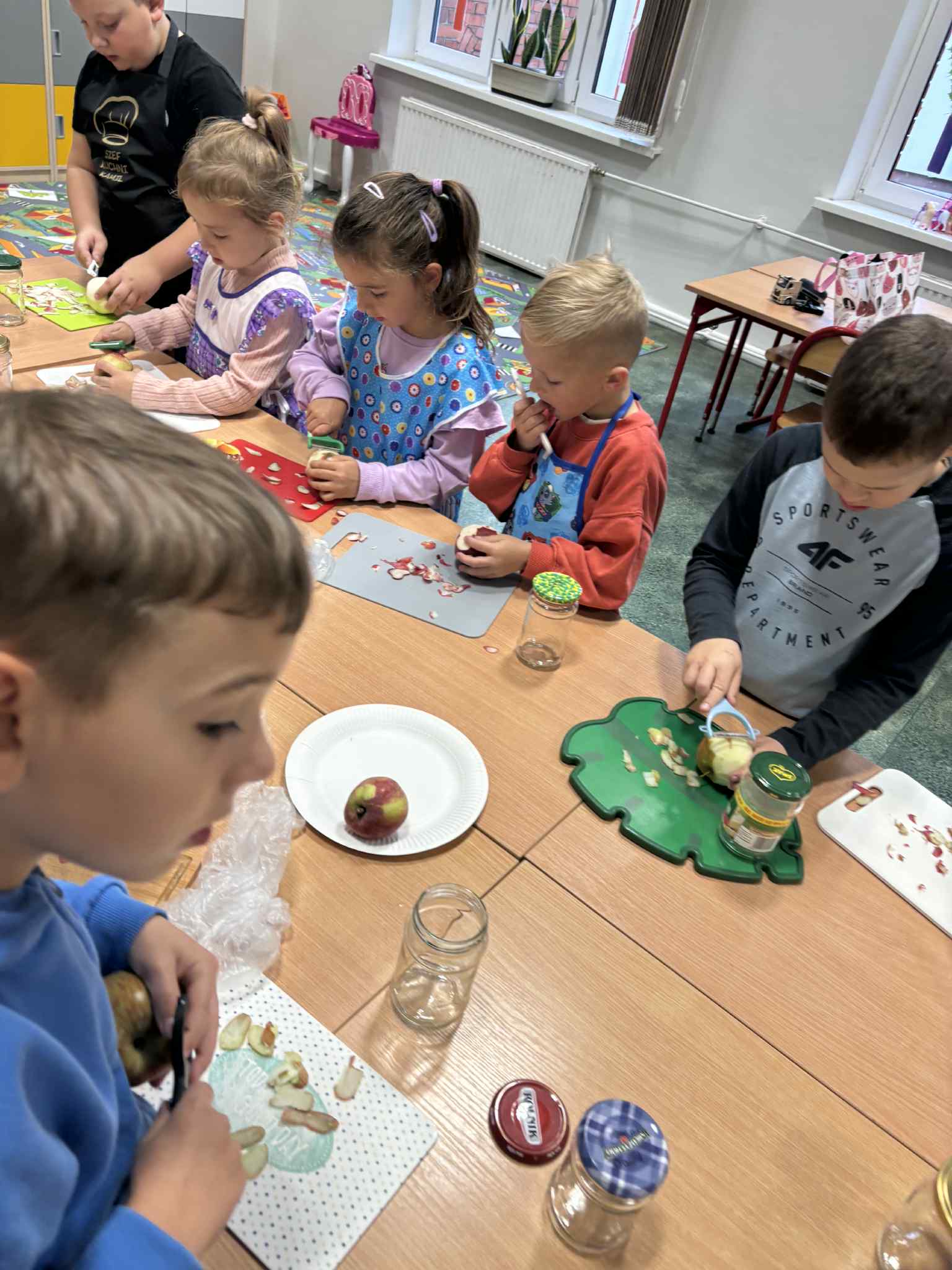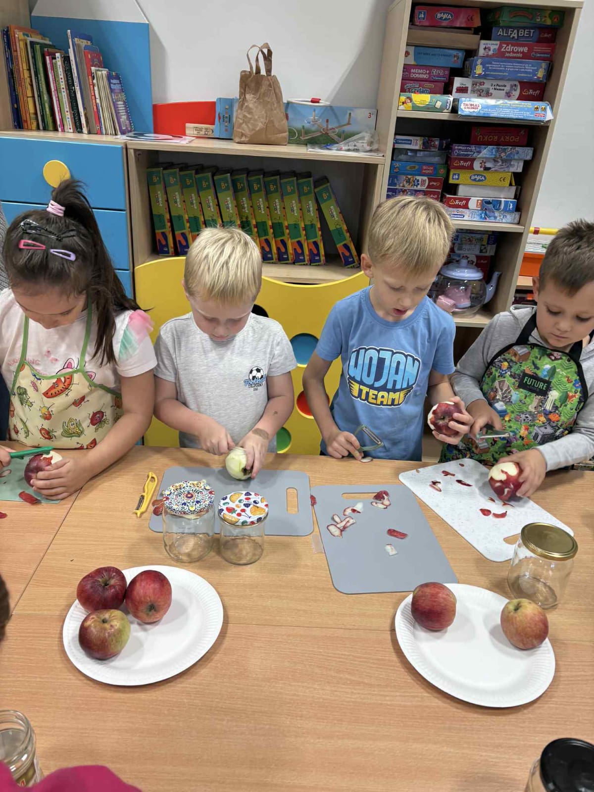 Dziś w przedszkolnej sali unosił się wyjątkowy zapach – nasze przedszkolaki przygotowywały kompot z jabłek! Dzieci miały okazję poznać etapy przygotowania kompotu, zobaczyć jak z owoców powstaje pyszny napój oraz samodzielnie uczestniczyć w krojeniu i mieszaniu składników. To była świetna lekcja współpracy, samodzielności oraz poznawania tradycji od kuchni. Brawo dla naszych małych kucharzy!