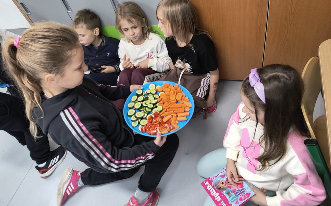 Na zakończenie uczniowie rozmawiali o tym, dlaczego warto jeść warzywa i jak wpływają one na nasze zdrowie. 🥕 Każde dziecko mogło też podzielić się swoim ulubionym warzywem. 🍎