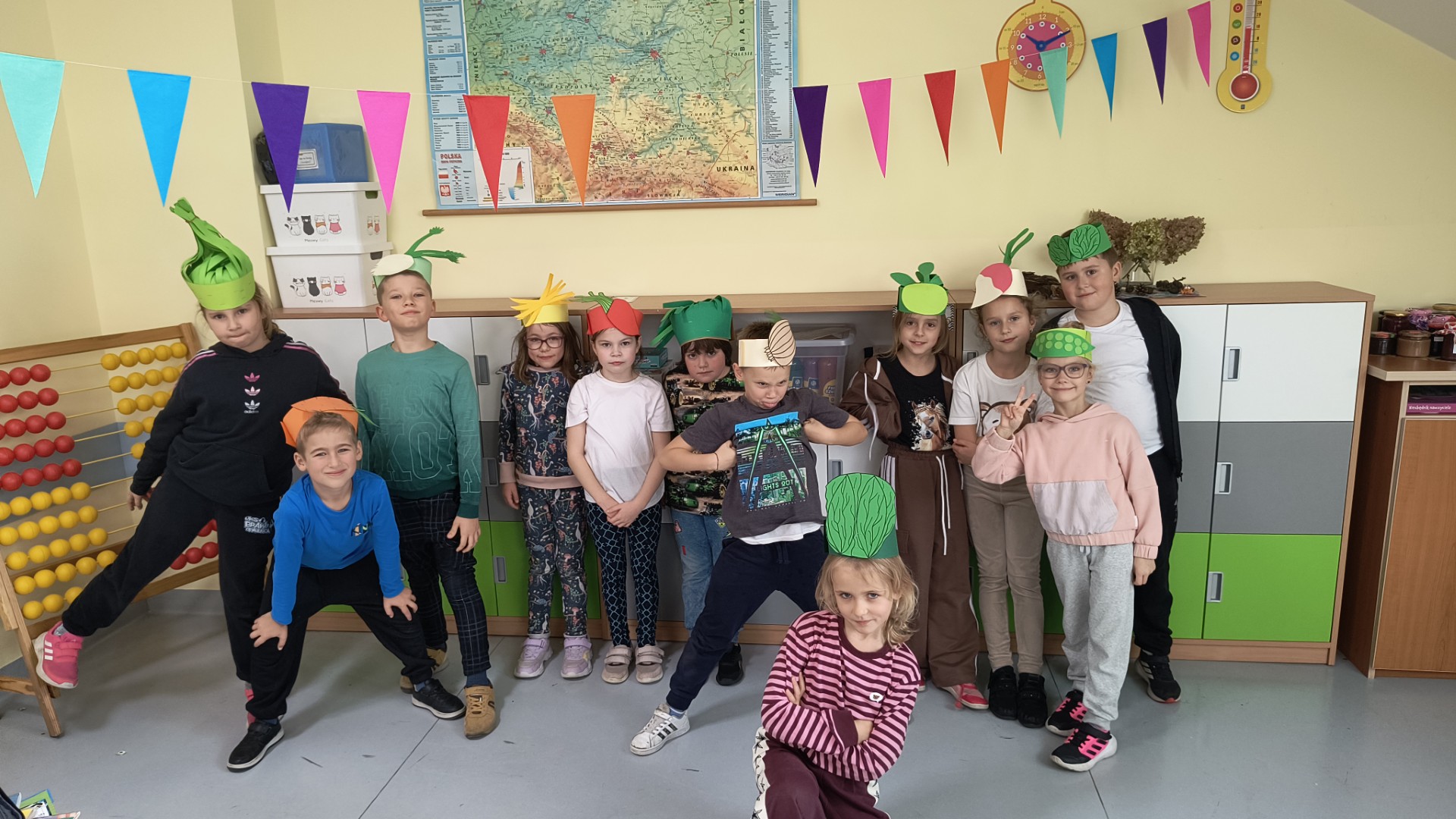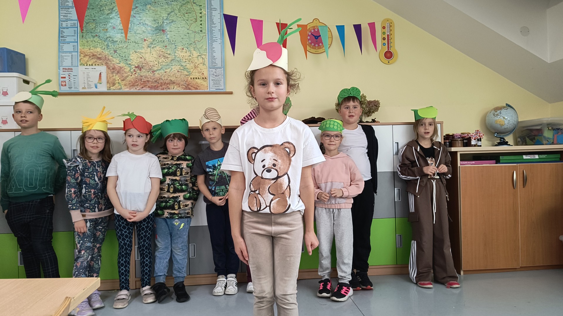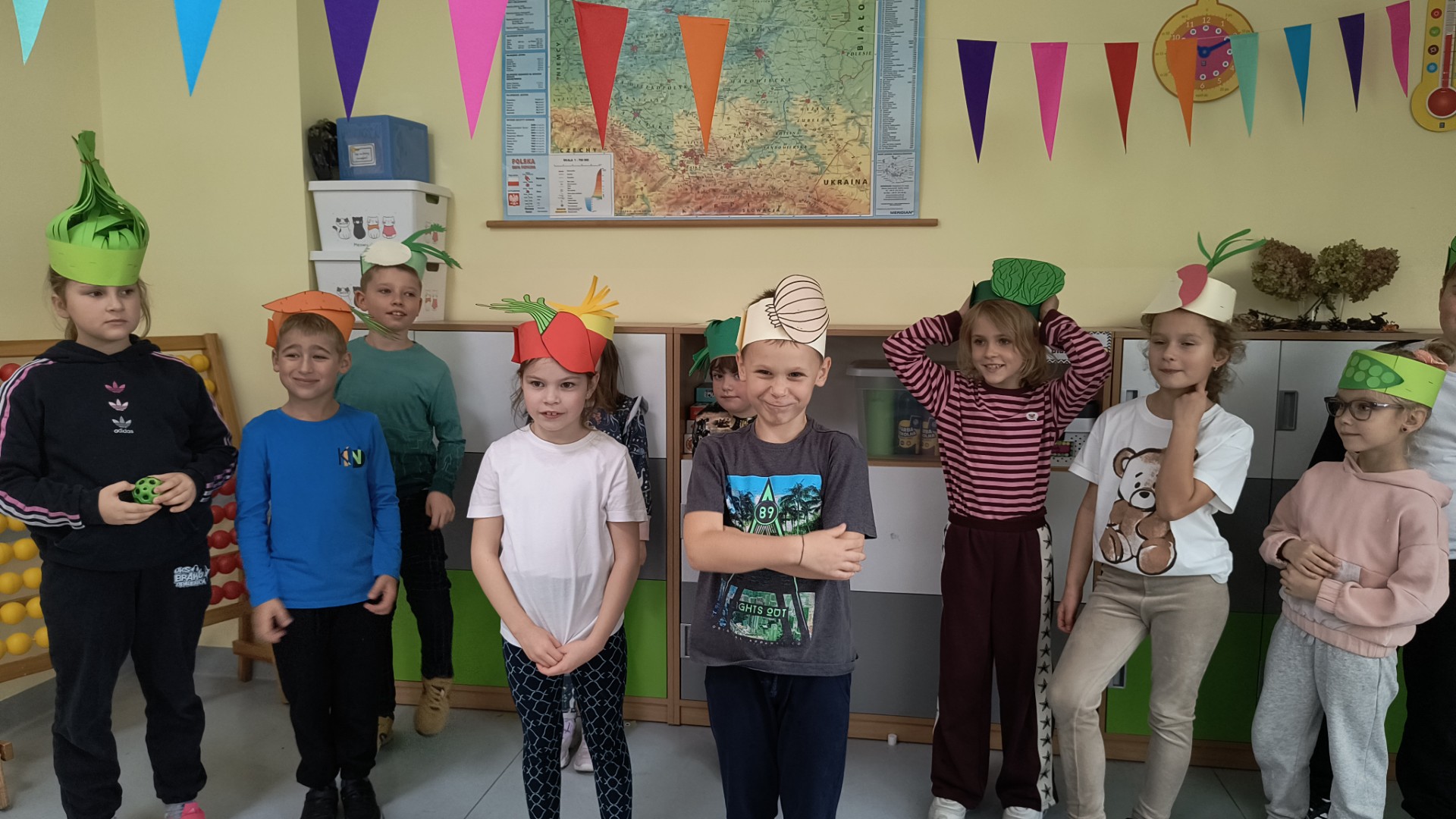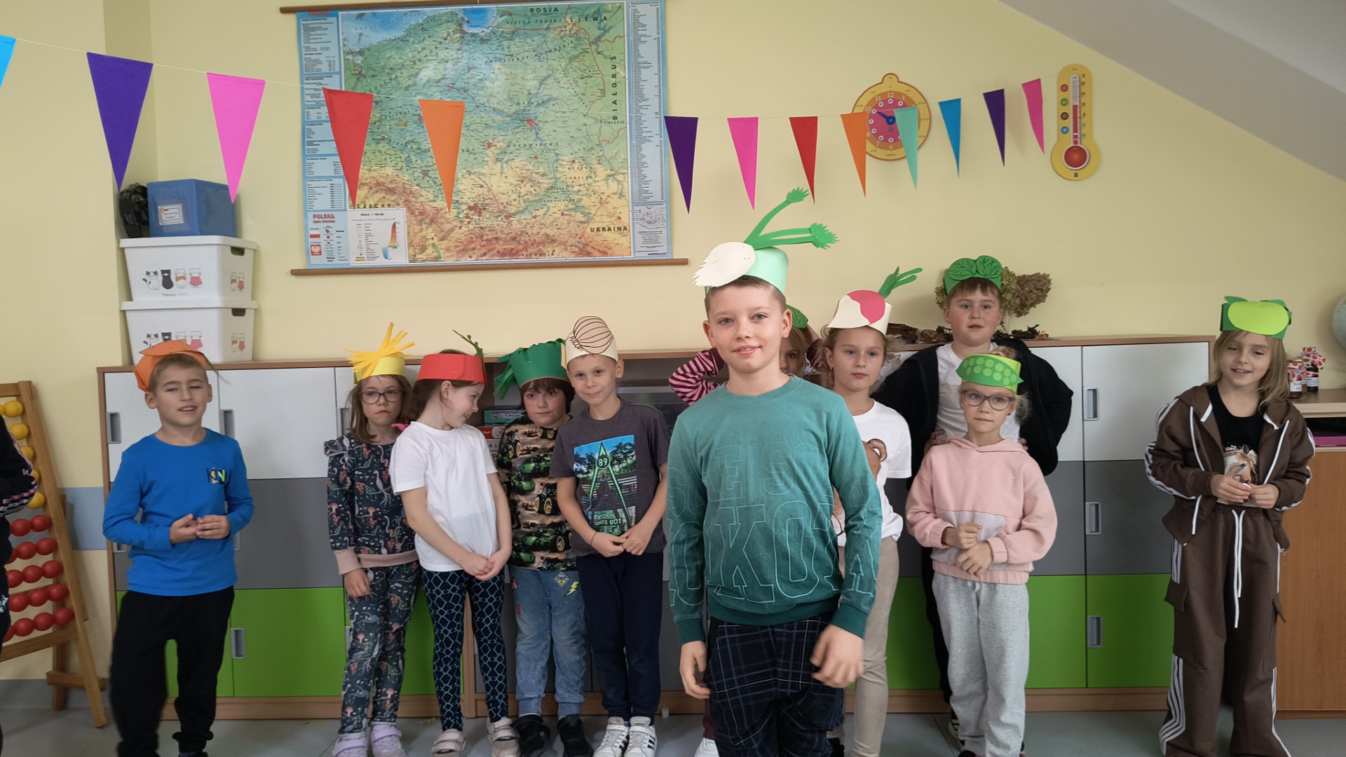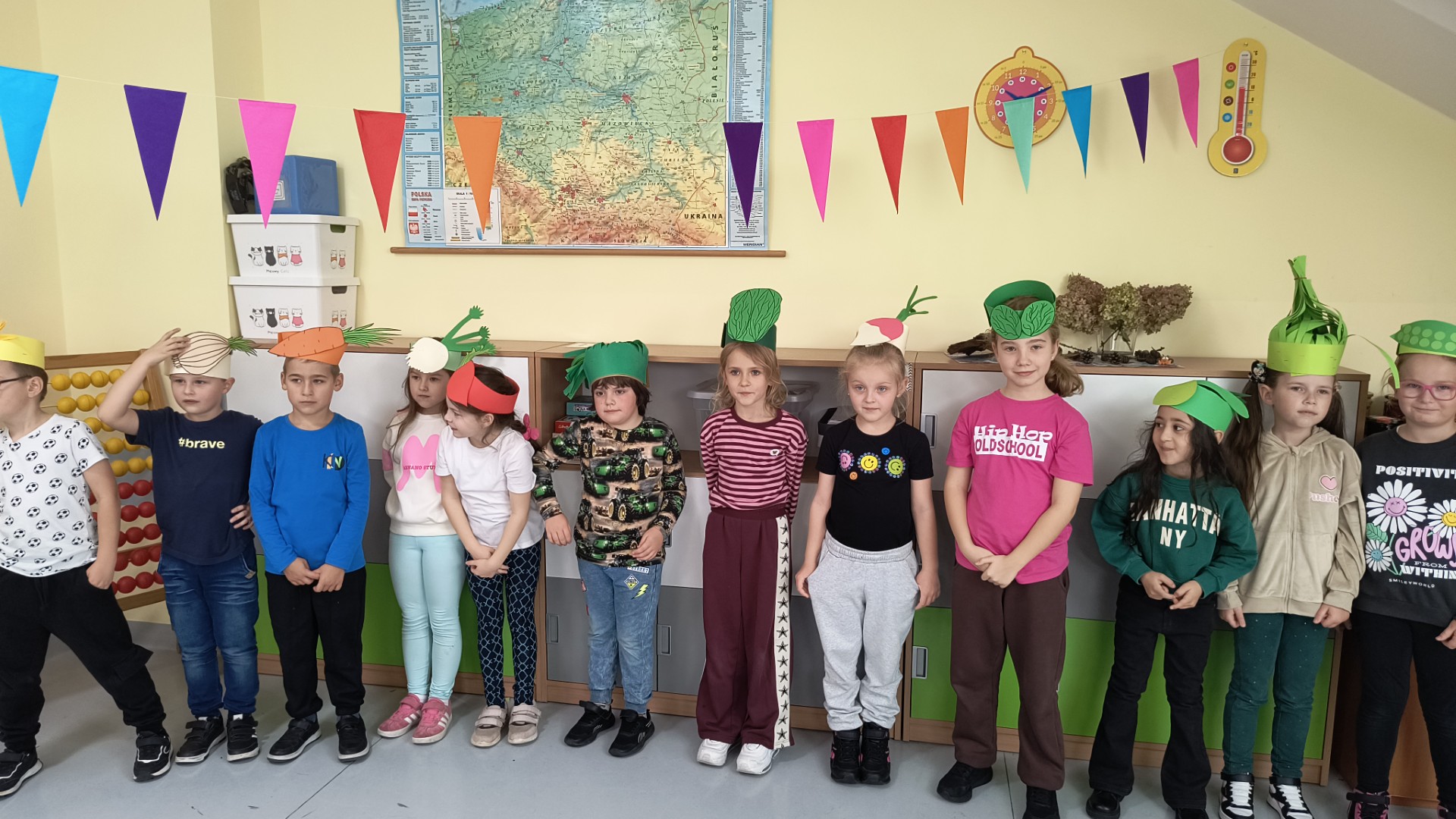 Uczniowie klasy 1b, pod okiem wychowawczyni Joanny Batury, przenieśli się w niezwykły świat warzyw z wiersza Jana Brzechwy pt. „Na straganie”. 🧅 Zajęcia były pełne śmiechu, nauki i kolorów! 🎨