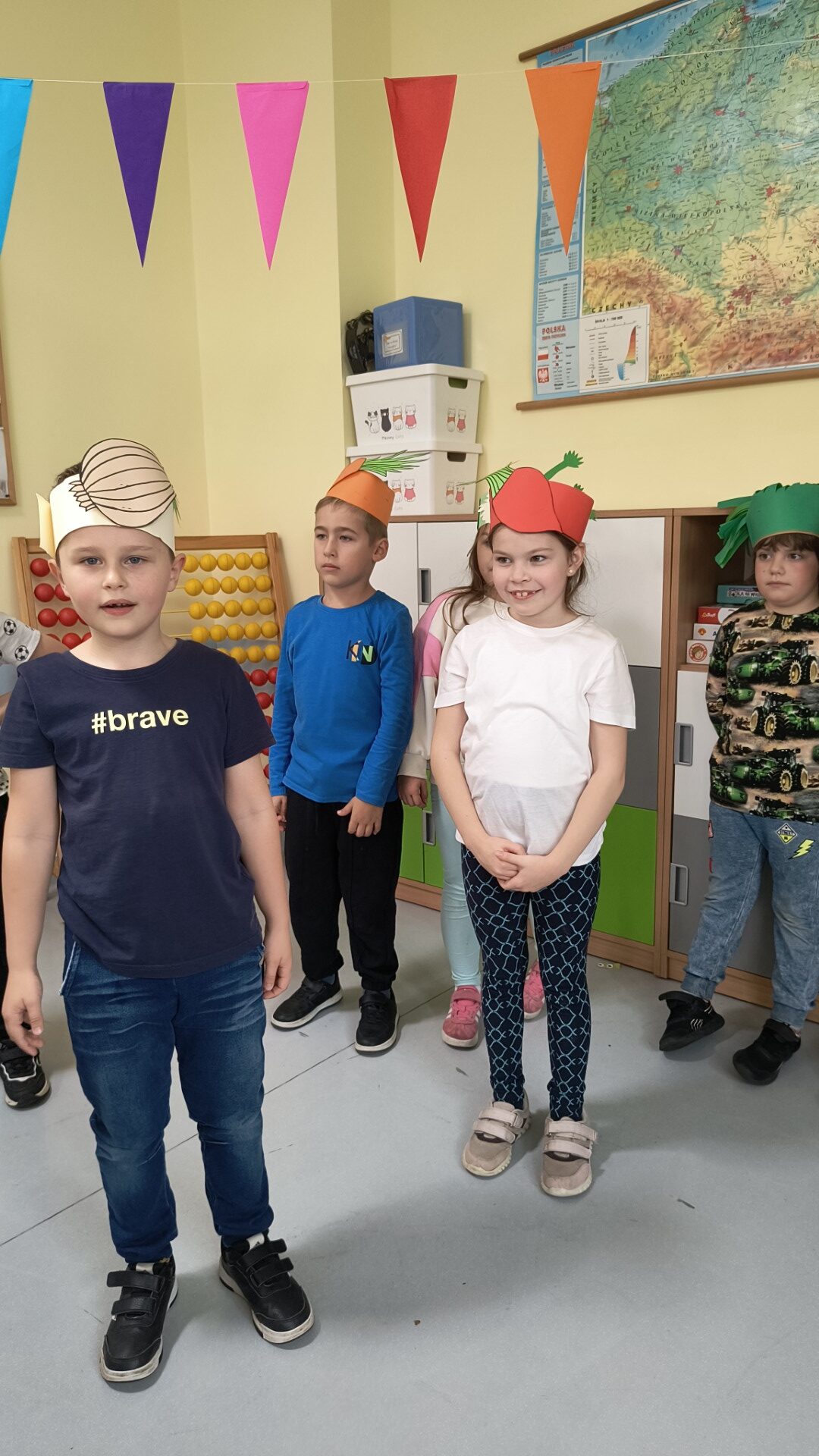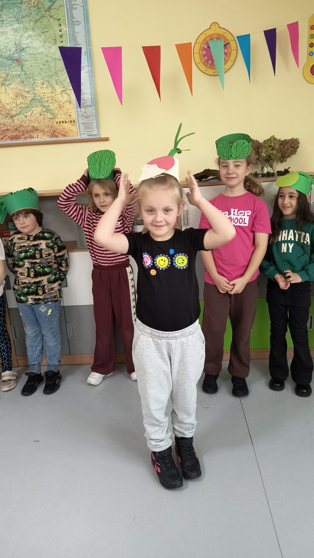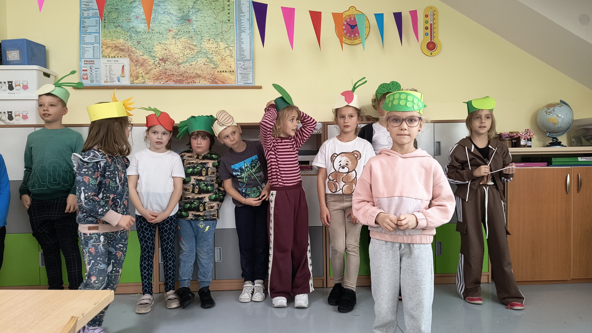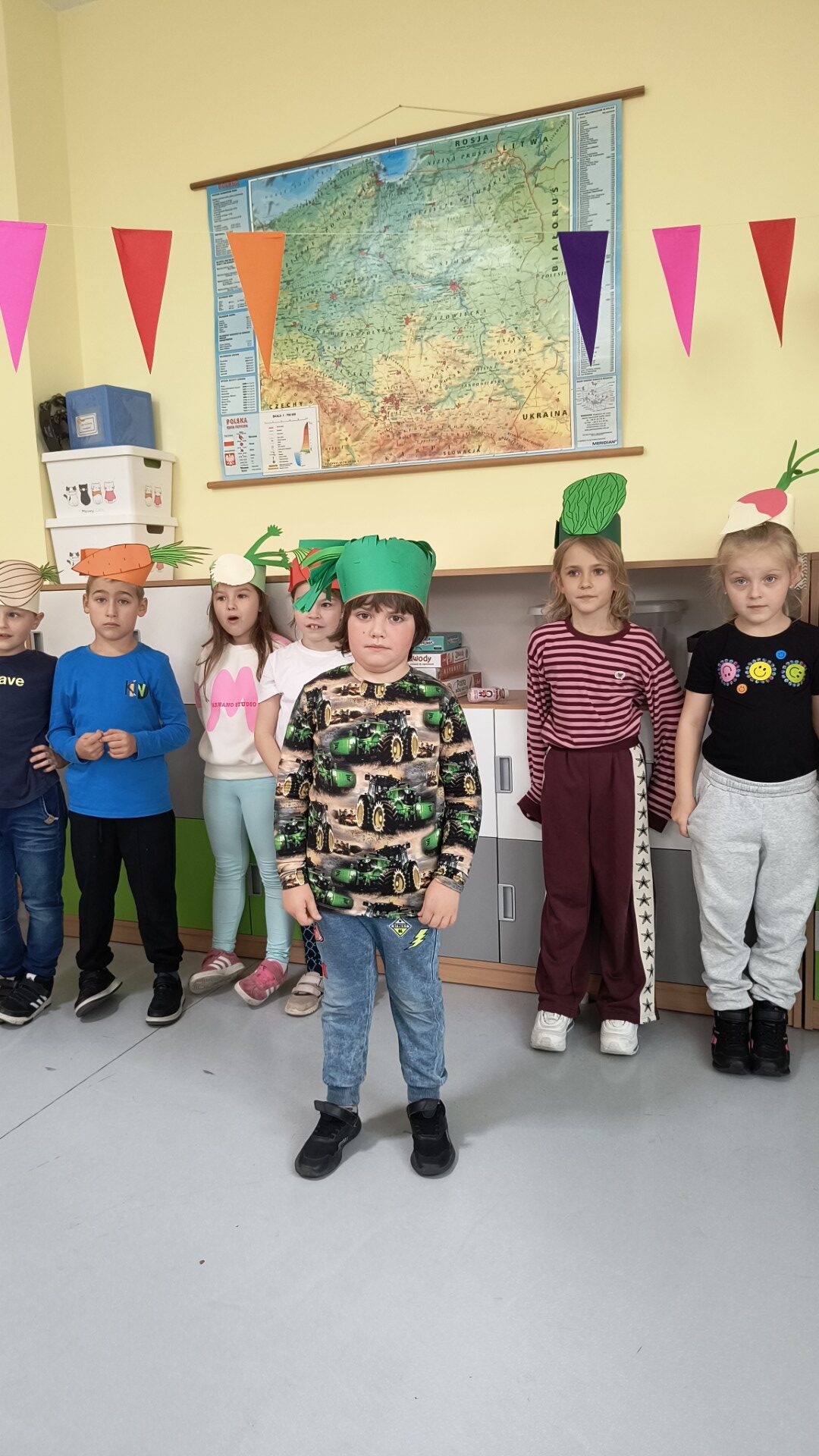 Uczniowie klasy 1b, pod okiem wychowawczyni Joanny Batury, przenieśli się w niezwykły świat warzyw z wiersza Jana Brzechwy pt. „Na straganie”. 🧅 Zajęcia były pełne śmiechu, nauki i kolorów! 🎨