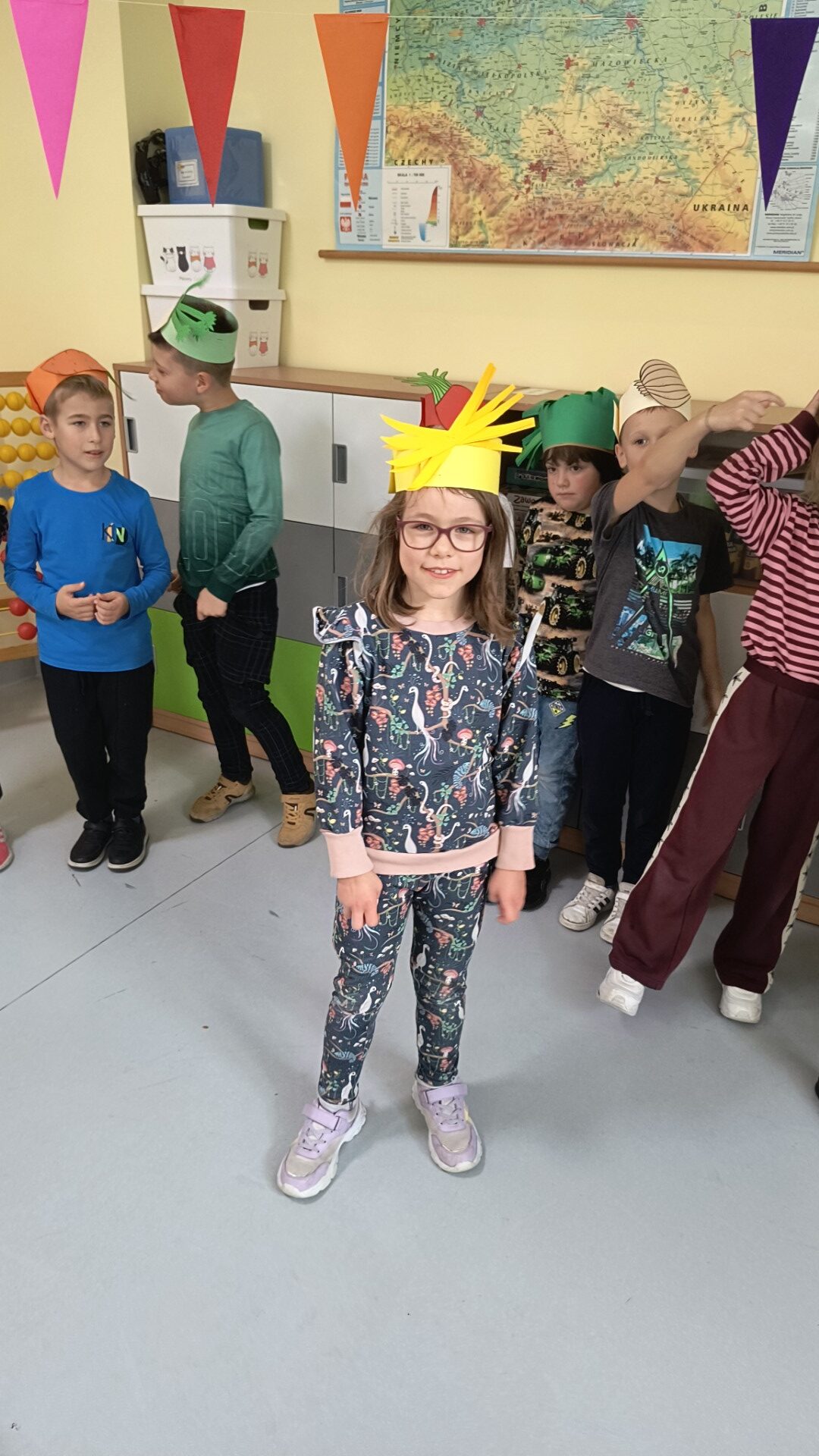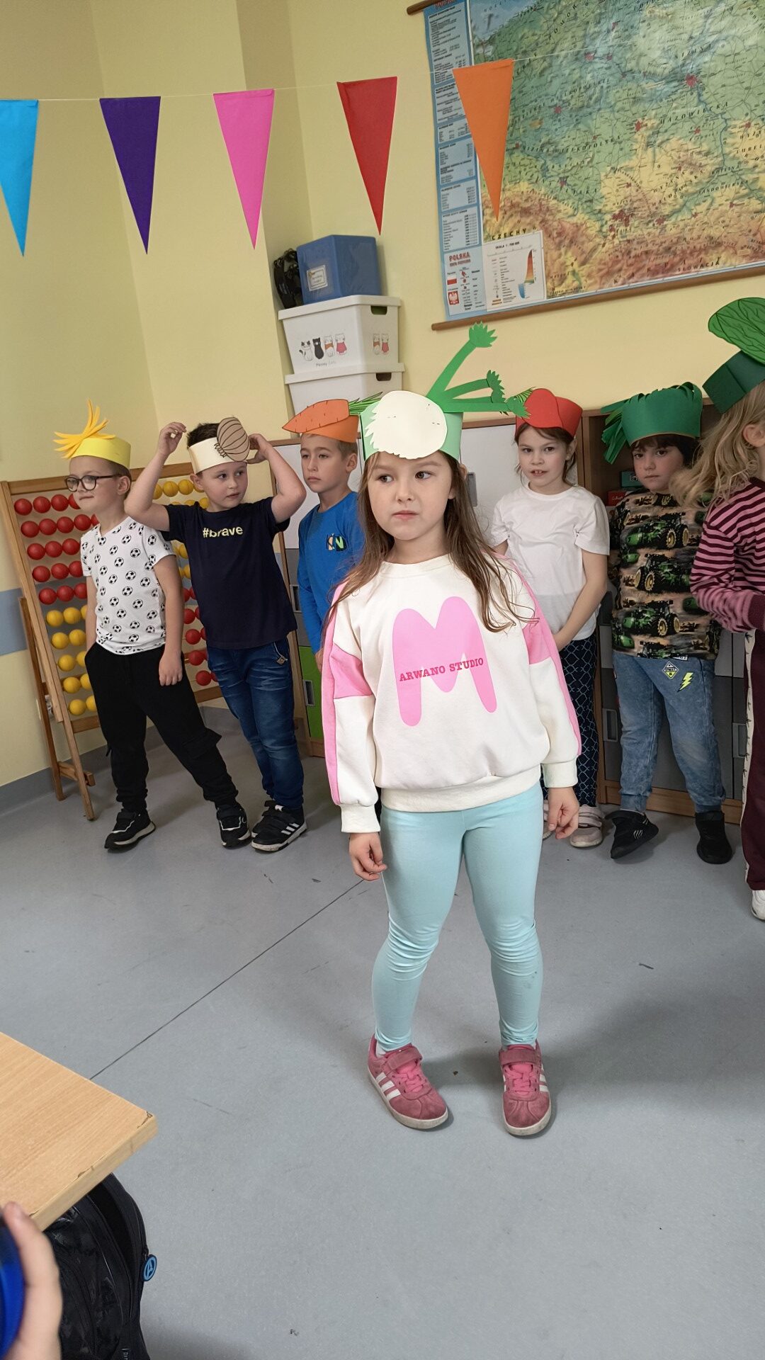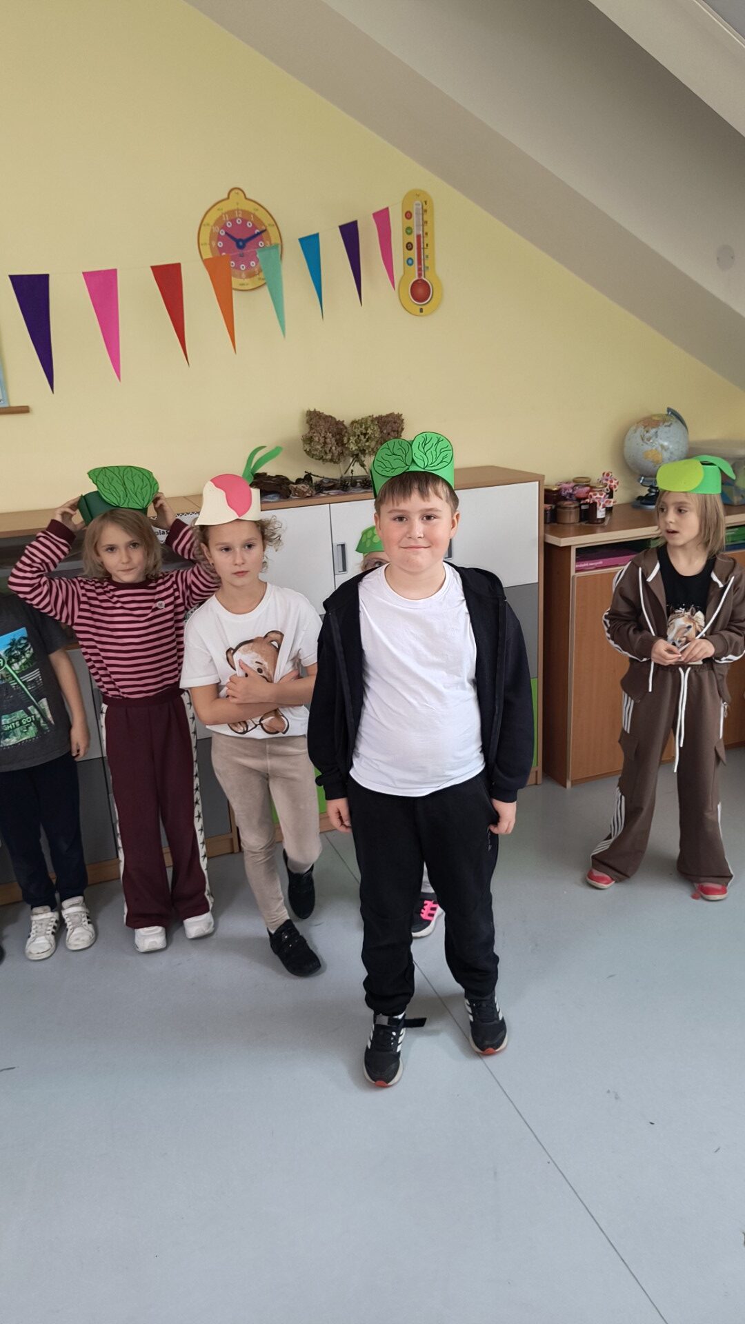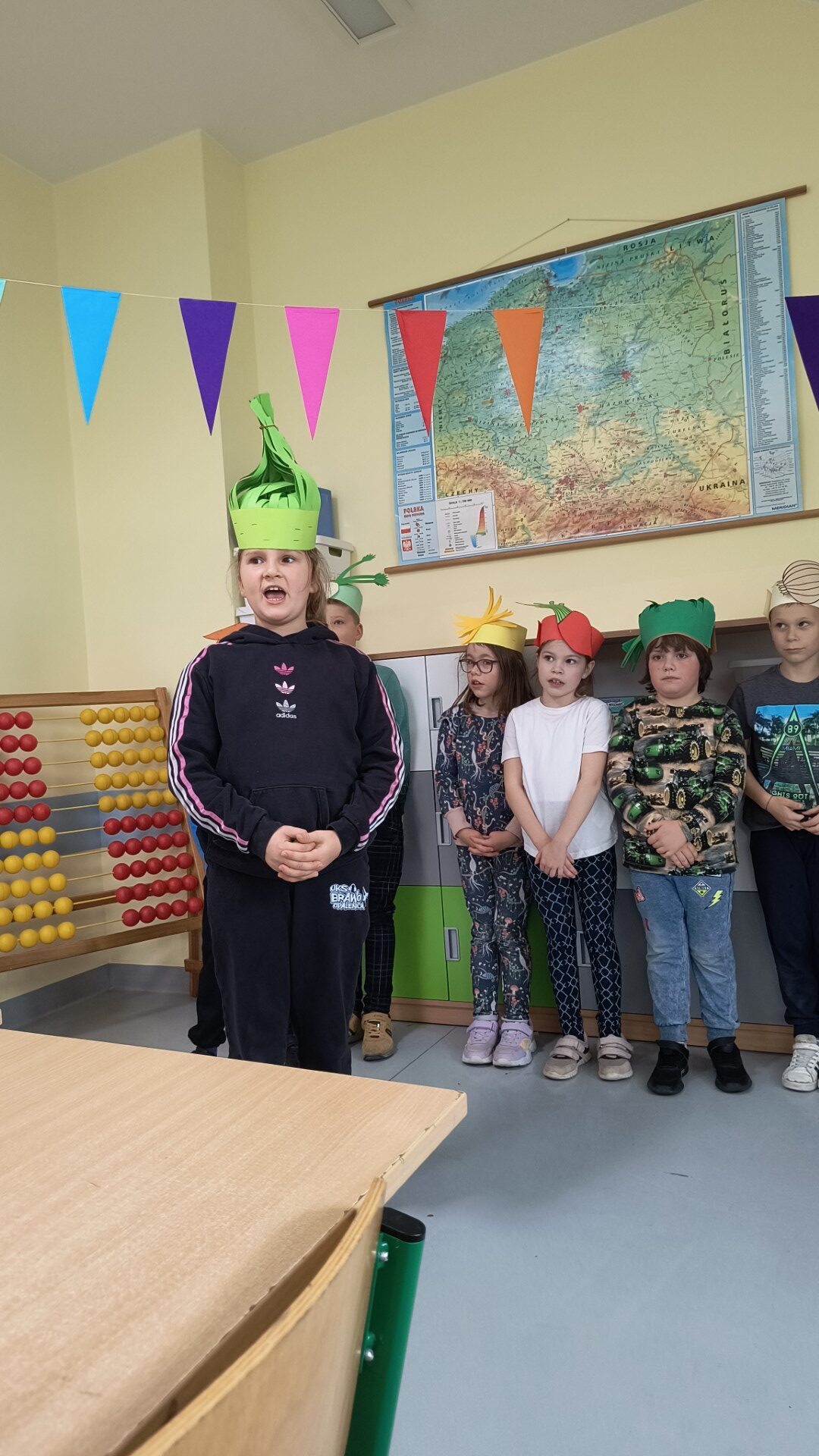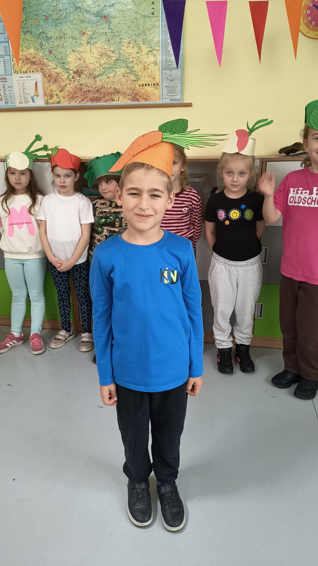 Uczniowie klasy 1b, pod okiem wychowawczyni Joanny Batury, przenieśli się w niezwykły świat warzyw z wiersza Jana Brzechwy pt. „Na straganie”. 🧅 Zajęcia były pełne śmiechu, nauki i kolorów! 🎨