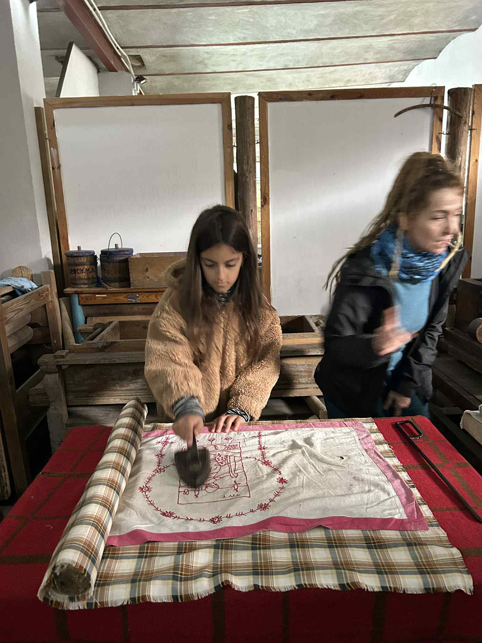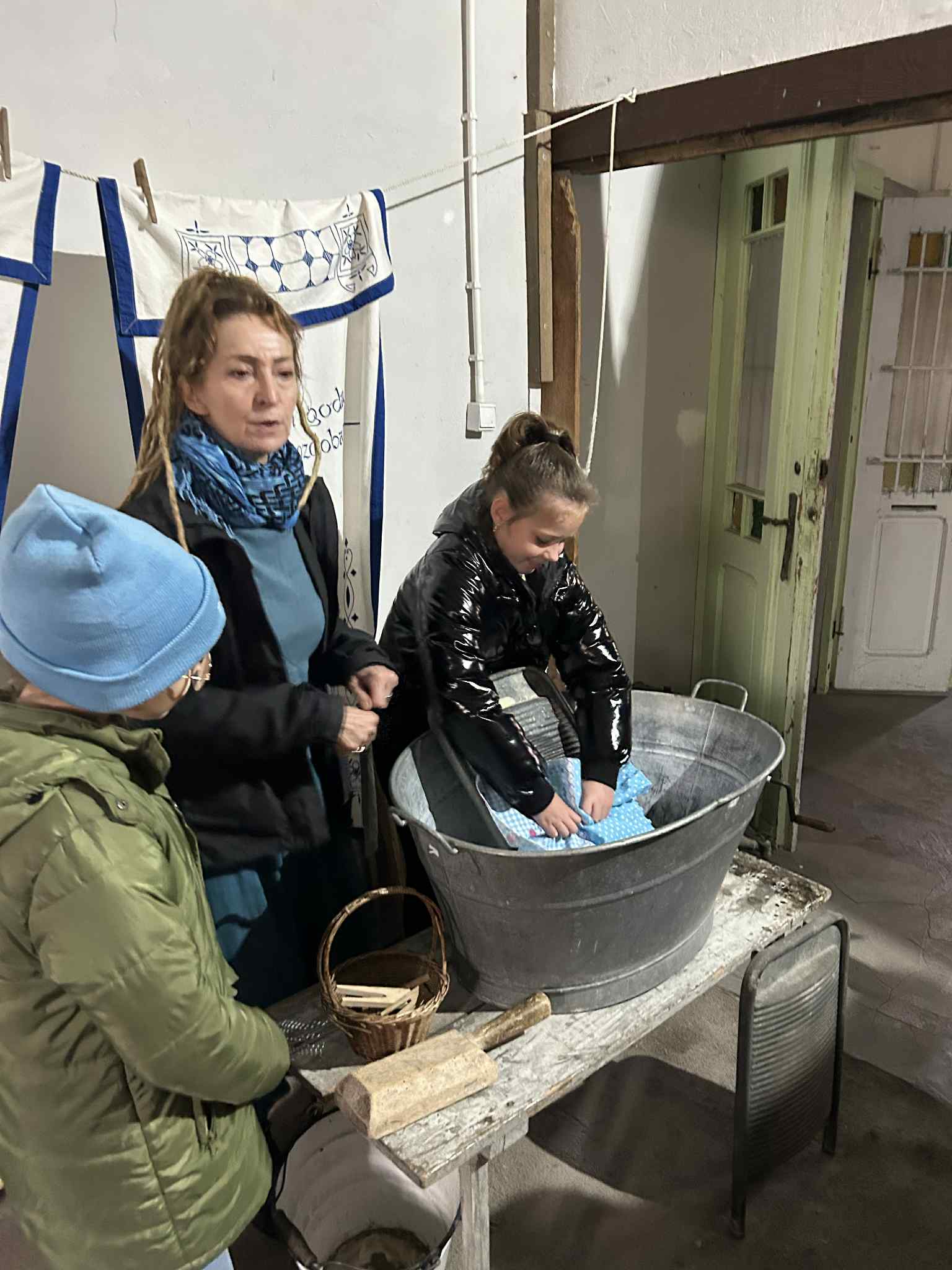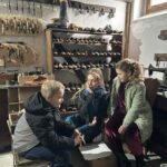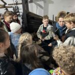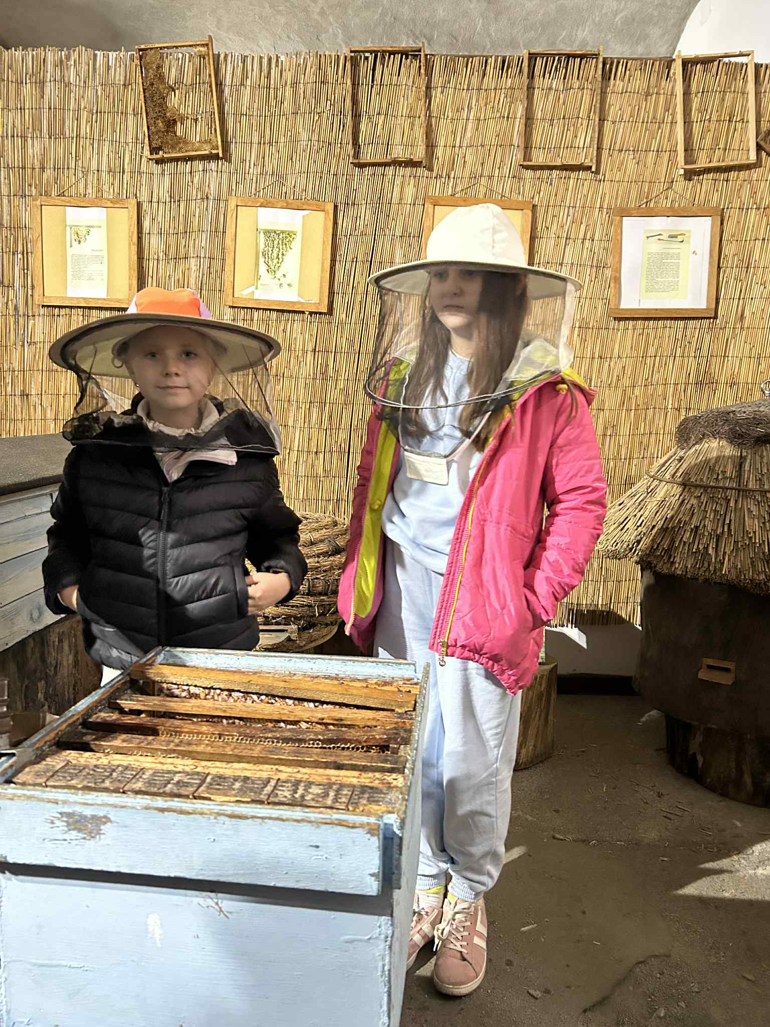 Na miejscu dzieci powitała pani przewodnik, która oprowadziła grupy po Centrum Edukacji Regionalnej i Przyrodniczej w Mniszkach. 🏡 Uczniowie dowiedzieli się, jak wyglądało życie i praca rzemieślników wiele lat temu – zobaczyli dawne warsztaty kowala, szewca, garncarza i stolarza. ⚒️