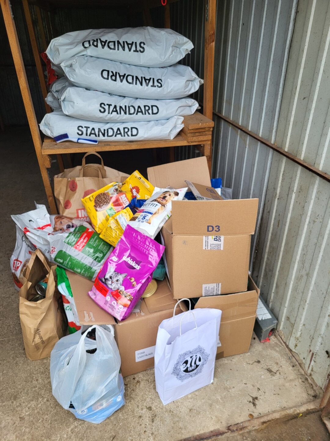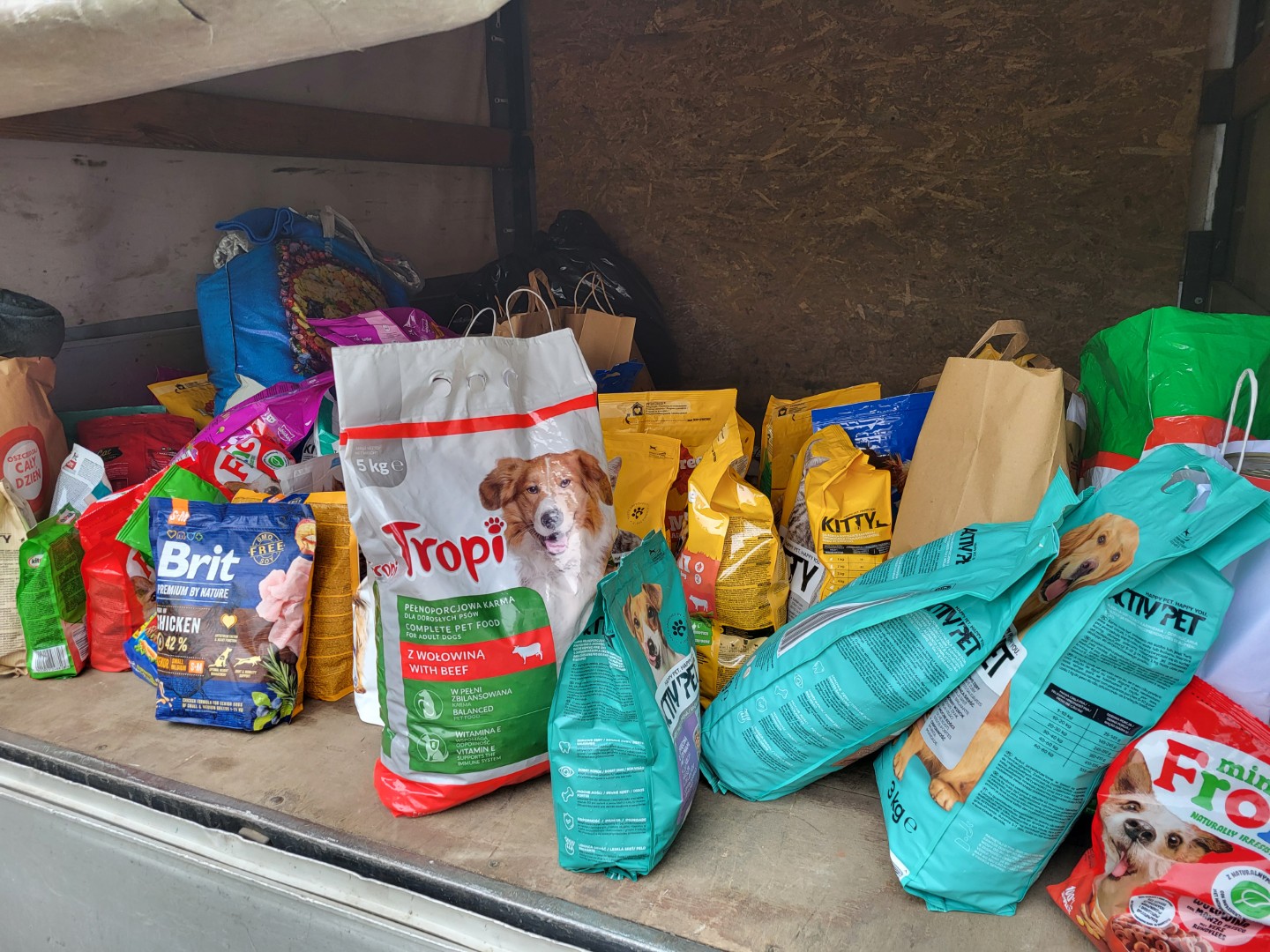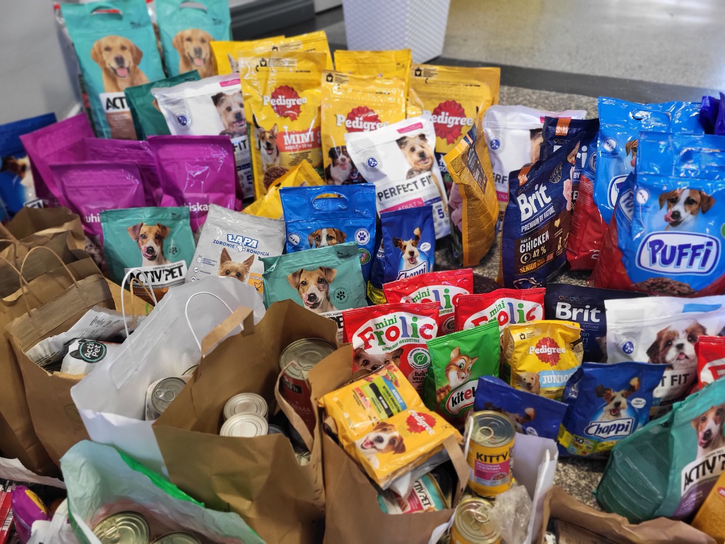 Łącznie zebrano 323 kg karmy dla psów i kotów (karma sucha – 195 kg, w puszkach – 105 kg oraz przysmaki – 23 kg), a także koce, ręczniki i posłania. 🥫🧺🐾