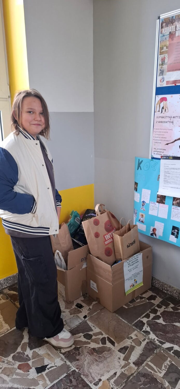 Z okazji obchodów Światowego Tygodnia Zwierząt w naszej szkole zorganizowano akcję zbierania darów dla bezdomnych zwierząt. 🐾 Celem zbiórki było uwrażliwienie na krzywdę, poprawa standardu pobytu zwierząt w schronisku oraz kształtowanie postawy przyjaciela zwierząt. 🐕🐈 Akcja miała także pokazać, jak ważna jest pomoc, odpowiedzialność i wrażliwość na los innych. 💛