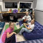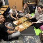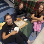 Kiedy brzuchy były już pełne, każda klasa rozgościła się w swoich „noclegowniach” i przy ciepłym świetle lampek obejrzała wspólnie film. 🎬✨ Oczywiście nie zabrakło popcornu i chrupek – bo przecież to obowiązkowy element każdej nocowanki! 🍿😋