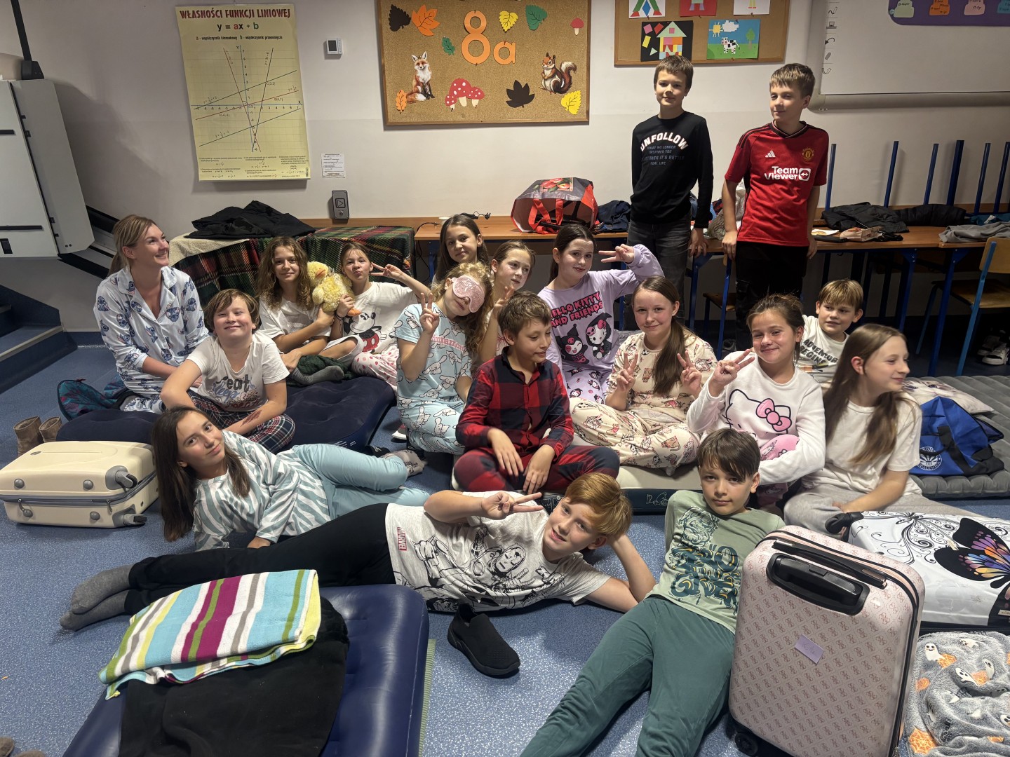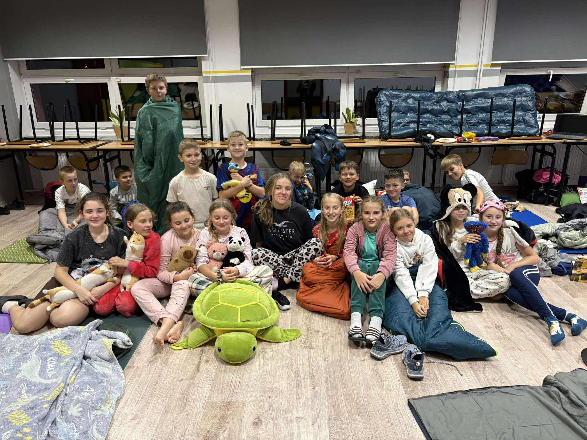 W piątek uczniowie klas 5e, 4c i 4d spędzili wyjątkowy wieczór – i noc! – w murach swojej szkoły. 🌙 Nocowanka, zorganizowana przez wychowawczynie: panią Kasię, panią Emilkę i panią Michalinę, okazała się strzałem w dziesiątkę! 🎯