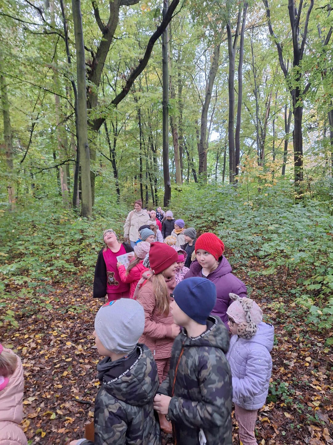 Klasy 1c i 2c, wraz z wychowawczyniami, wybrały się do Miejskiego Parku oraz pobliskiego lasu na poszukiwanie skarbów jesieni. 🌰🍃 Zaopatrzeni w kalosze, termosy z herbatą oraz torby i koszyki na kasztany, wyruszyli w teren. ☕🧺