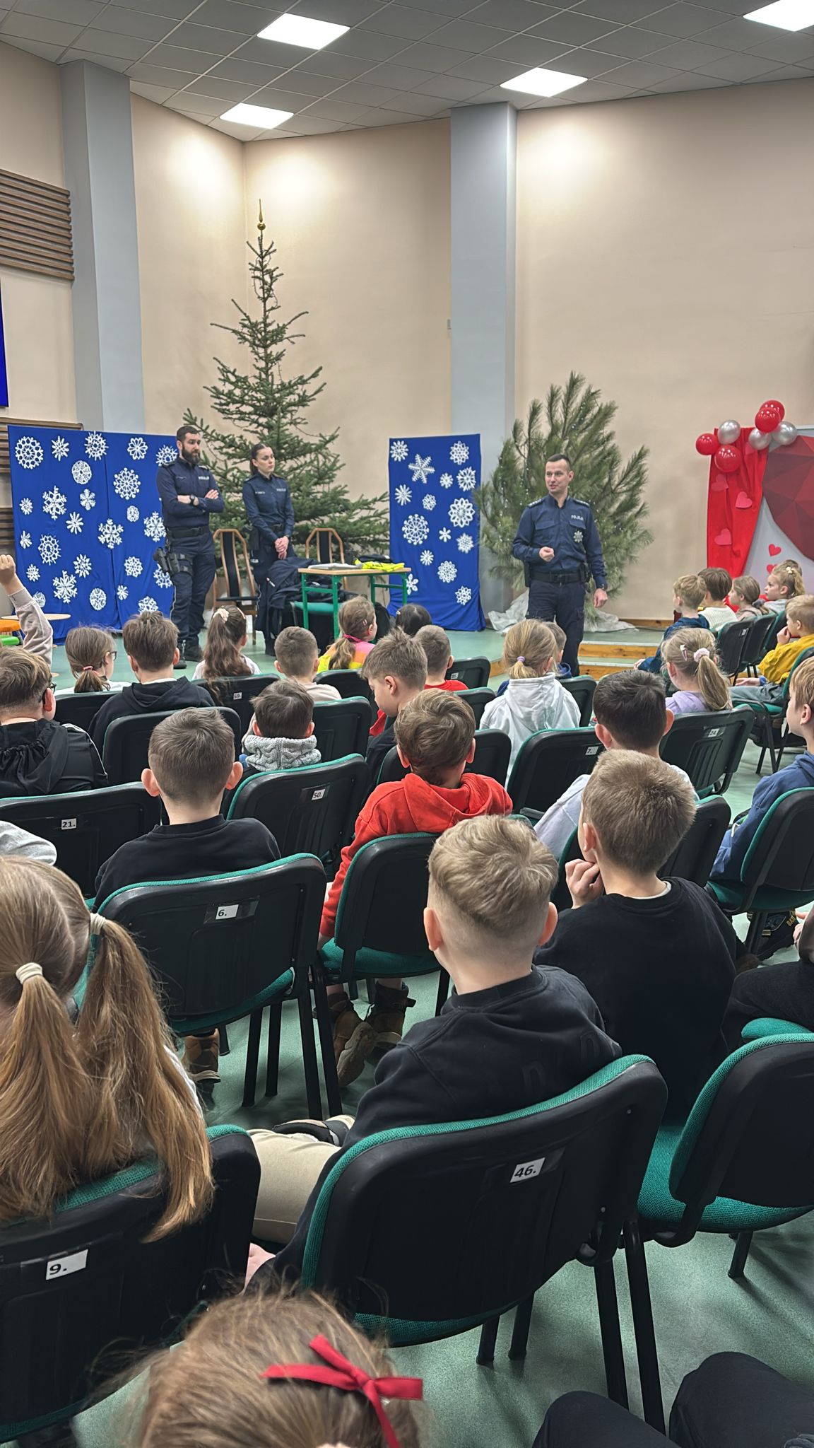W auli naszej szkoły odbyło się spotkanie młodszych uczniów z przedstawicielami Policji, poświęcone szeroko rozumianemu bezpieczeństwu ??
