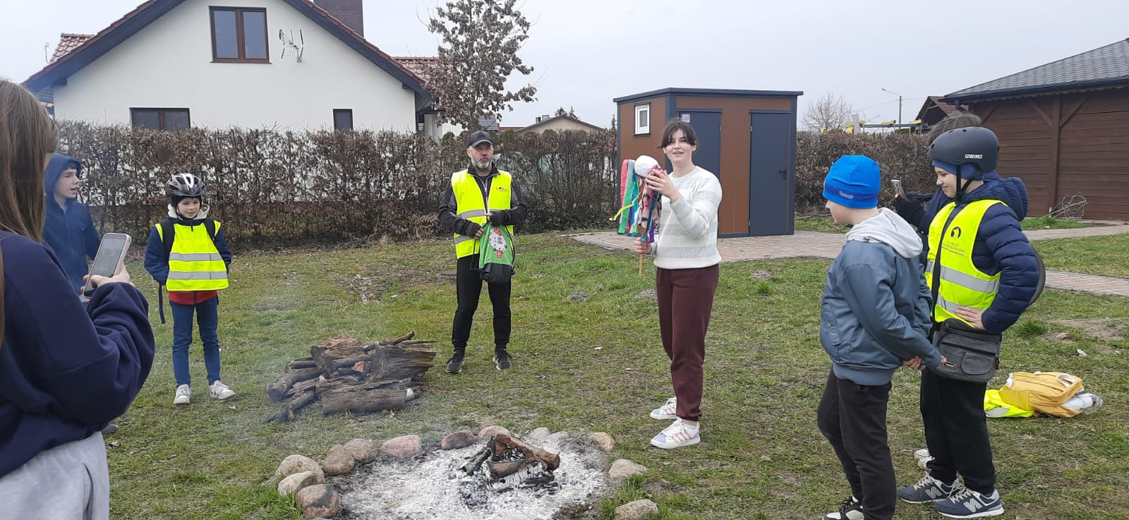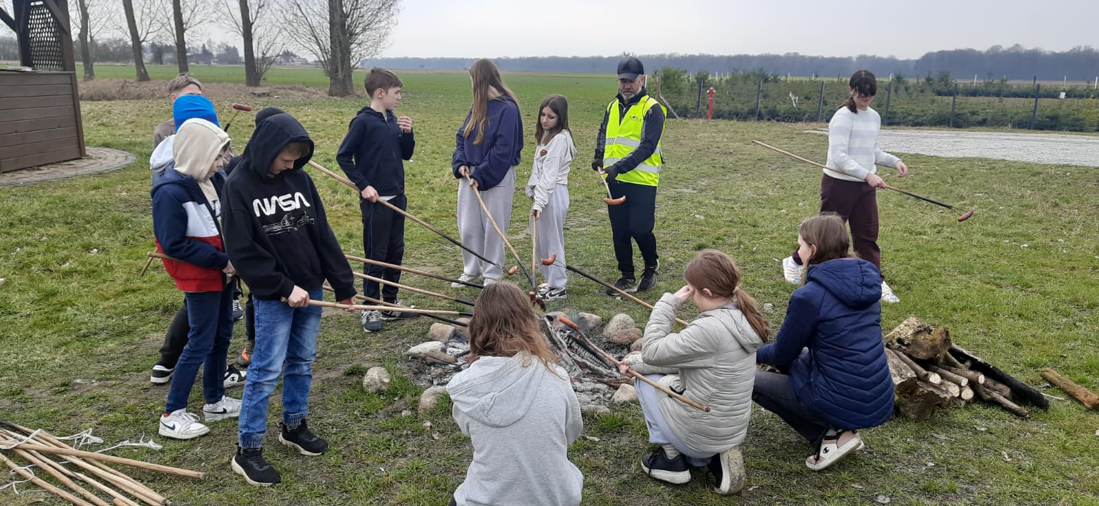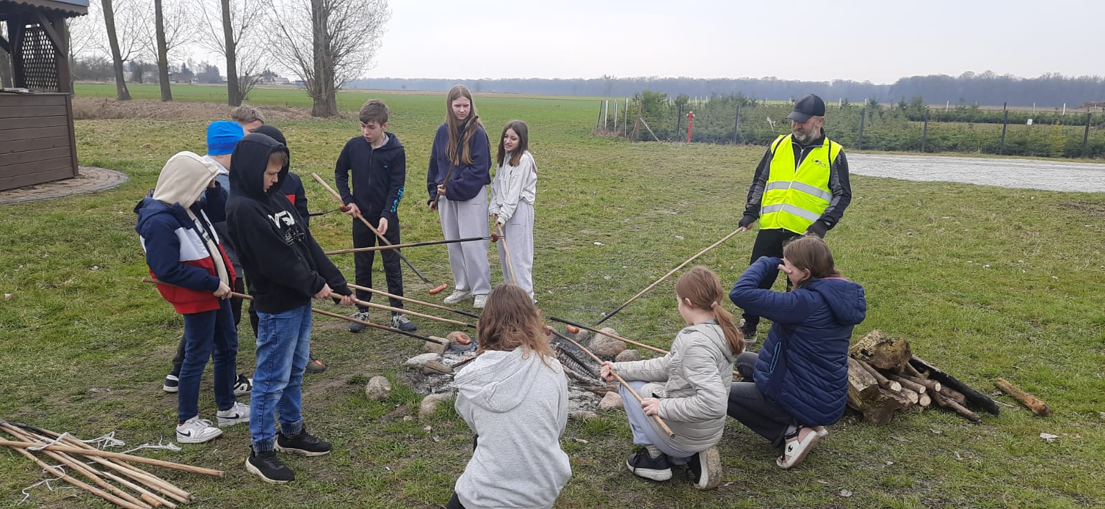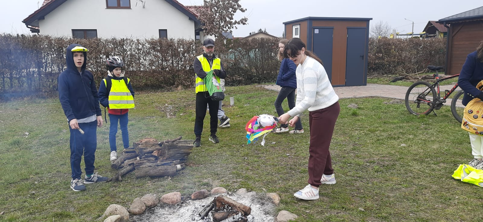 Po zabawach przy rozpalonym dla nas ognisku upiekliśmy kiełbaski, a w przyjaznym wnętrzu altany grzaliśmy się kubkiem ciepłej herbaty ?, przed wyruszeniem w dalszą podróż. Nie zabrakło w tym dniu również spalenia Marzanny (Polcynkę spalamy i zimę żegnamy). ??