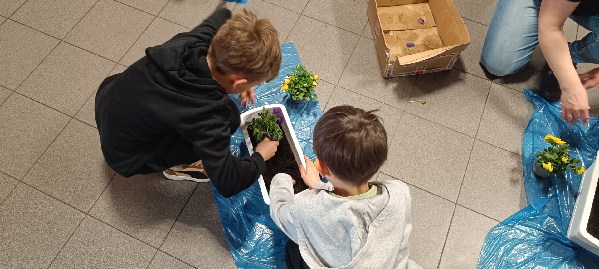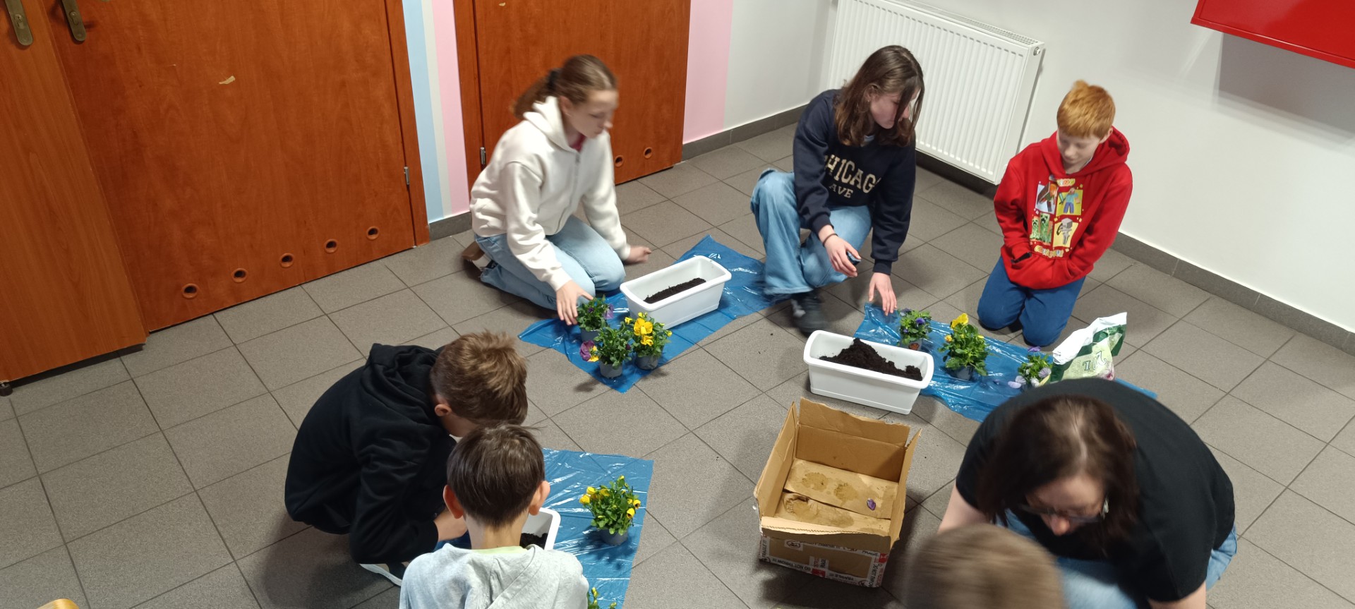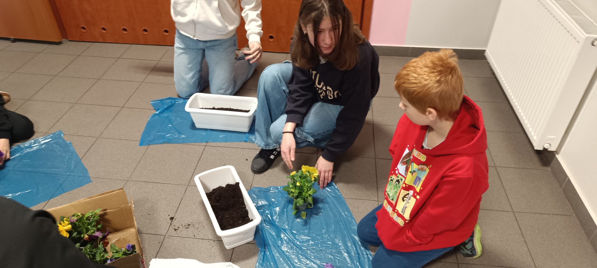 W minionym tygodniu klasa 6d wraz z wychowawczynią, Danutą Stefańską, spotkała się z młodszymi kolegami z klasy 3e w budynku przy ulicy Farnej, by wspólnie posadzić kwiaty ?? oraz lepiej się poznać podczas wspólnej zabawy i integracji ?. Spędzanie czasu w radosnej atmosferze sprzyjało budowaniu pozytywnych relacji i wzajemnego zaufania ?.