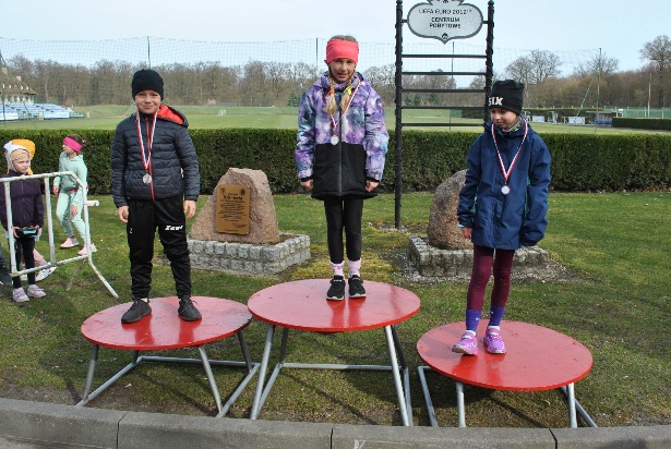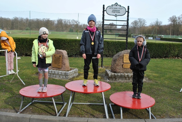 Pierwsze na trasie pojawiły się dziewczęta z klas 4 i młodsze. Pierwsza na linii mety zameldowała się Julka Ławniczak. Skład zwycięskiej drużyny uzupełniły: Julka Dudek, Matylda Olejniczak, Julka Duda i Zosia Jakubowska.