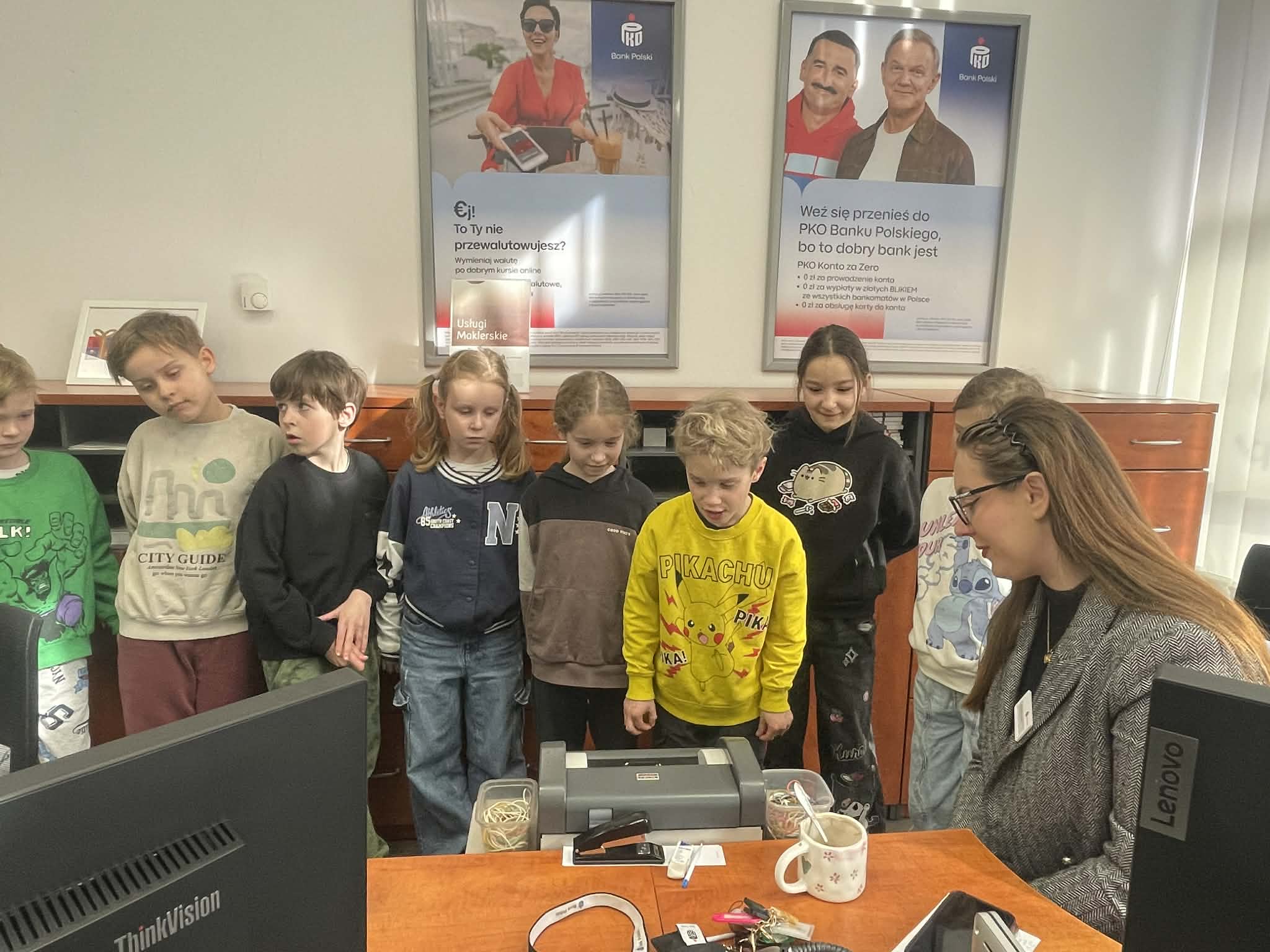 Wizyta była bardzo ciekawą i wartościową lekcją praktycznej wiedzy o finansach 📊. Serdecznie dziękujemy pracownikom banku PKO Bank Polski za ciepłe przyjęcie, poświęcony czas oraz przekazanie wielu cennych informacji 💛.